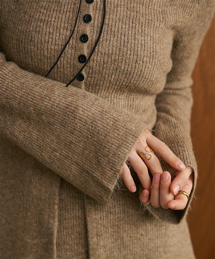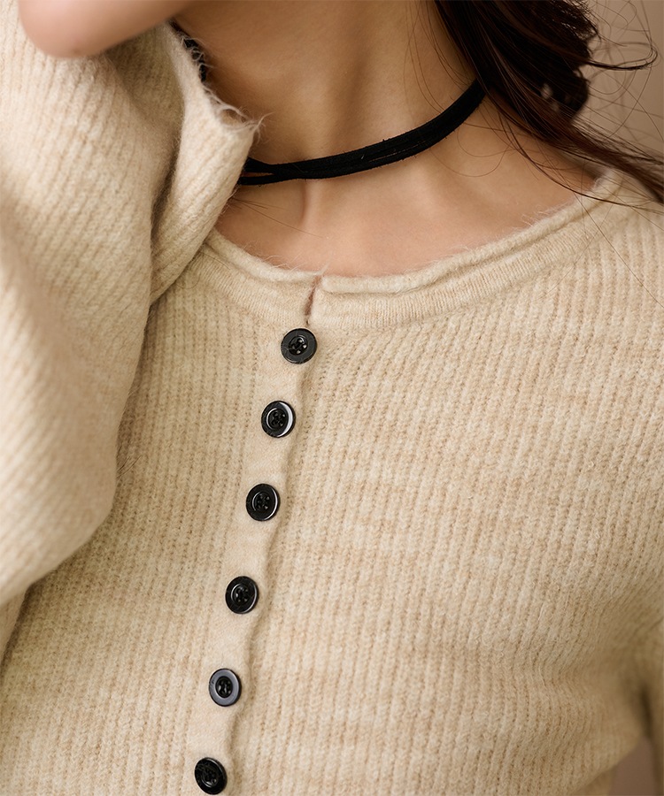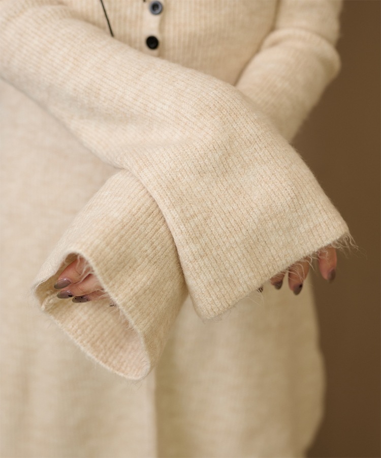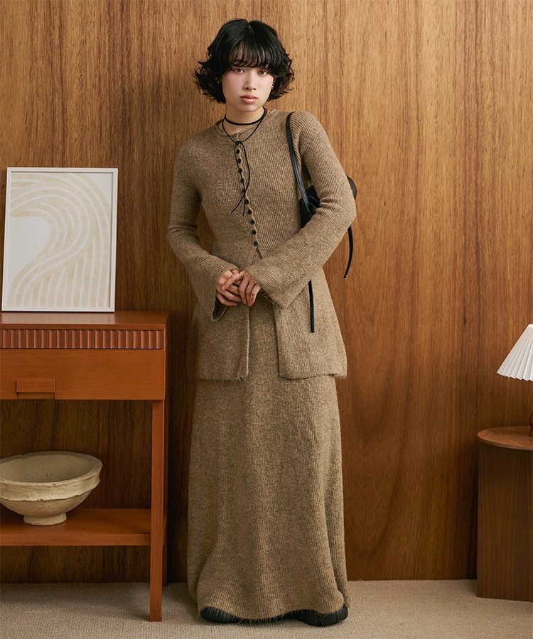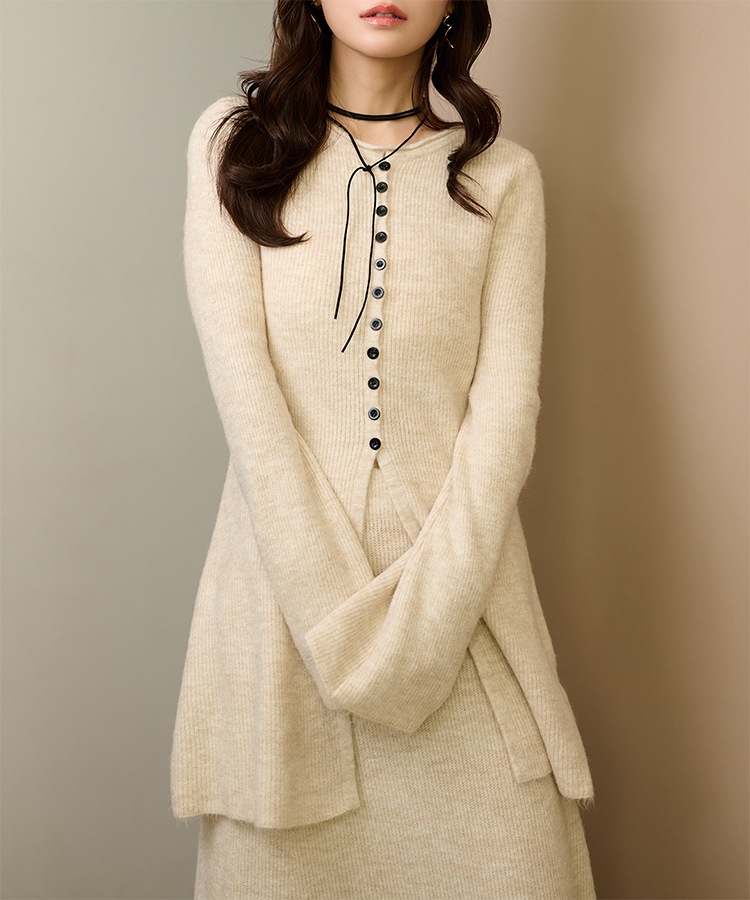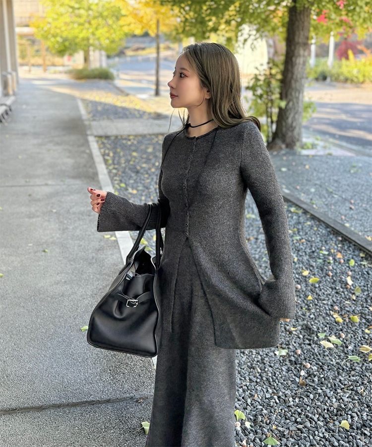front slit collared button knit set up