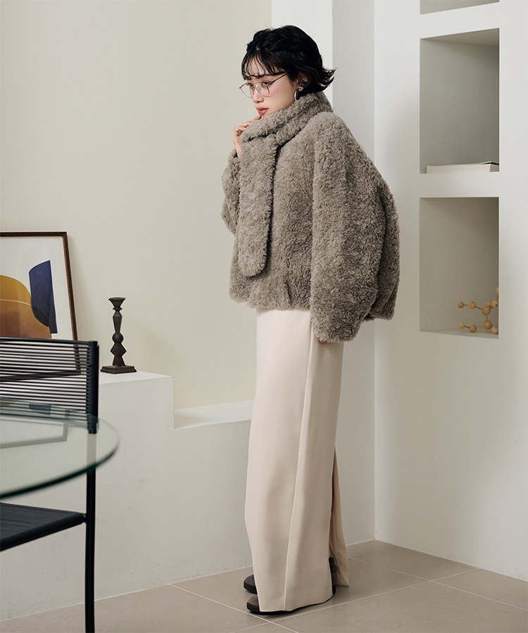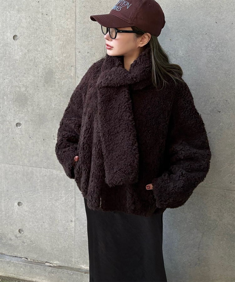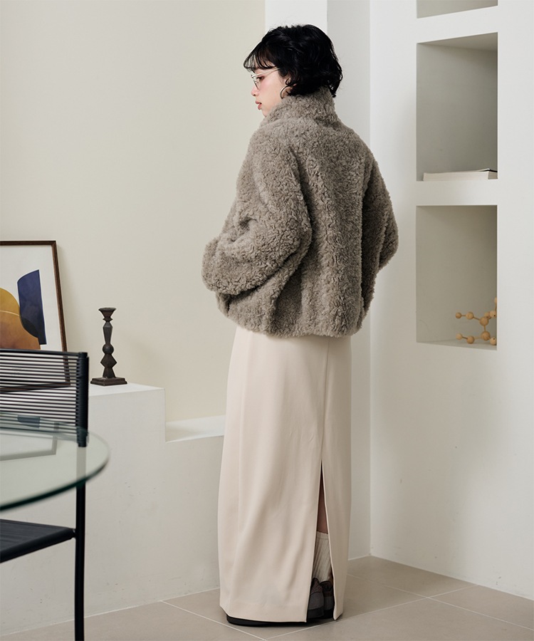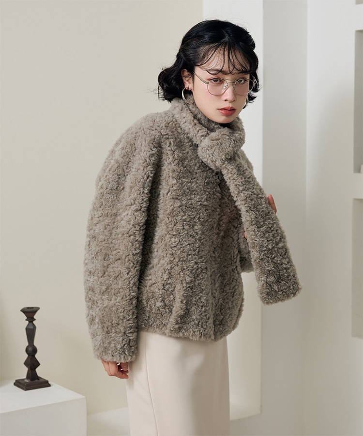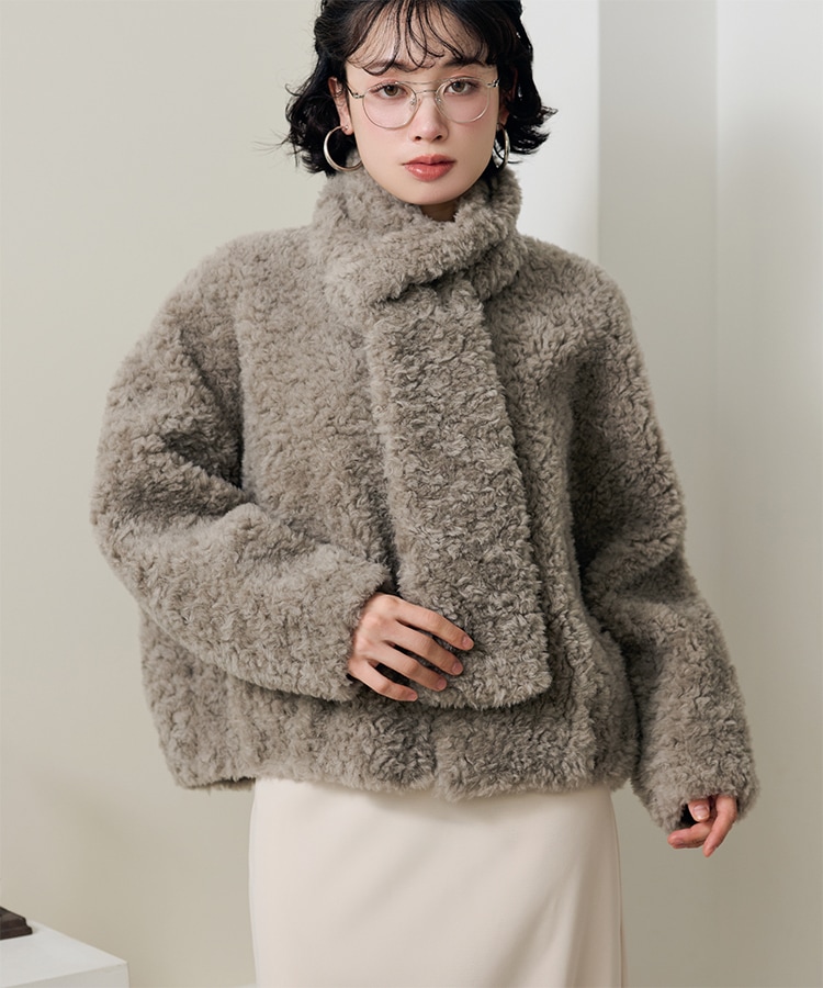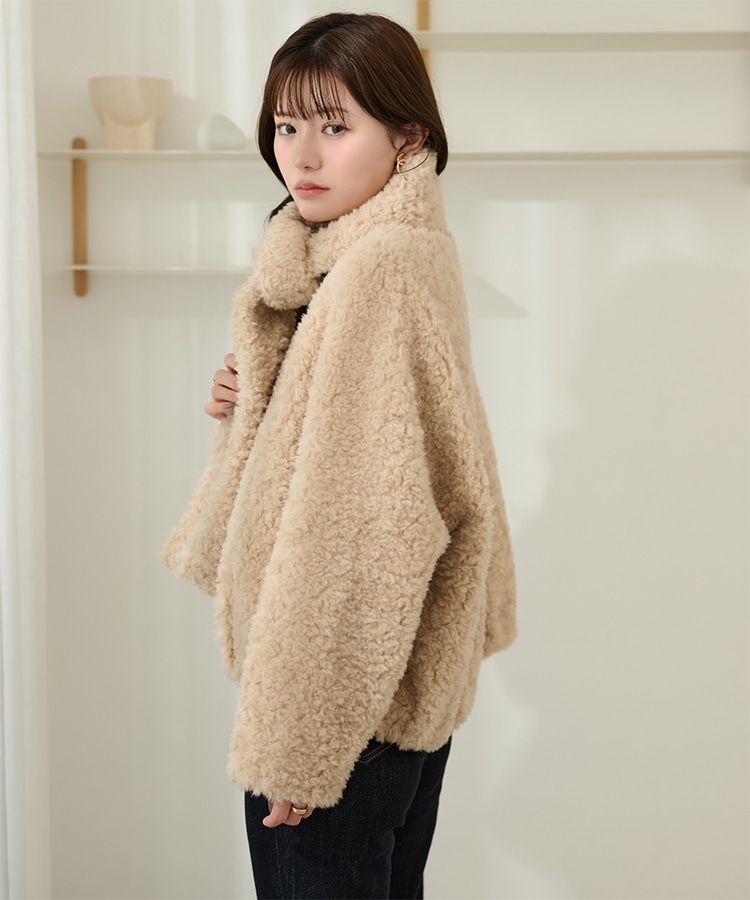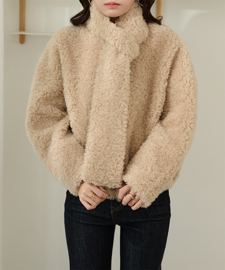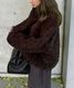 wool boa stand collar middle coat