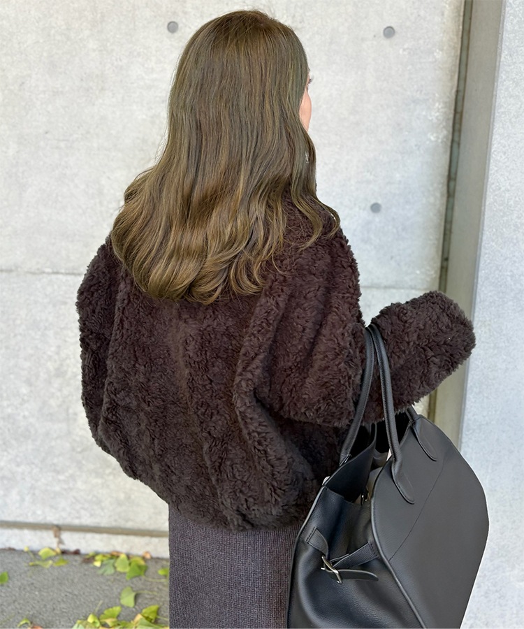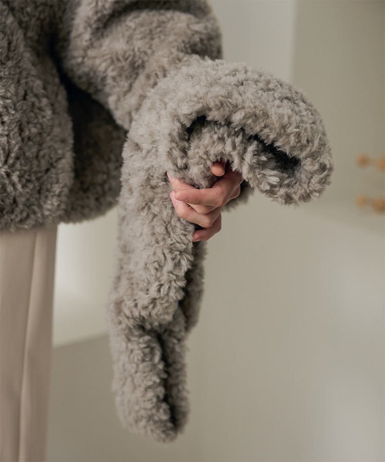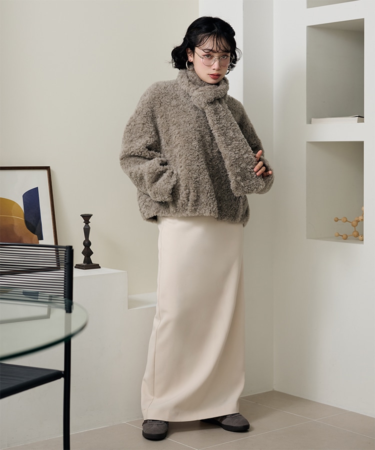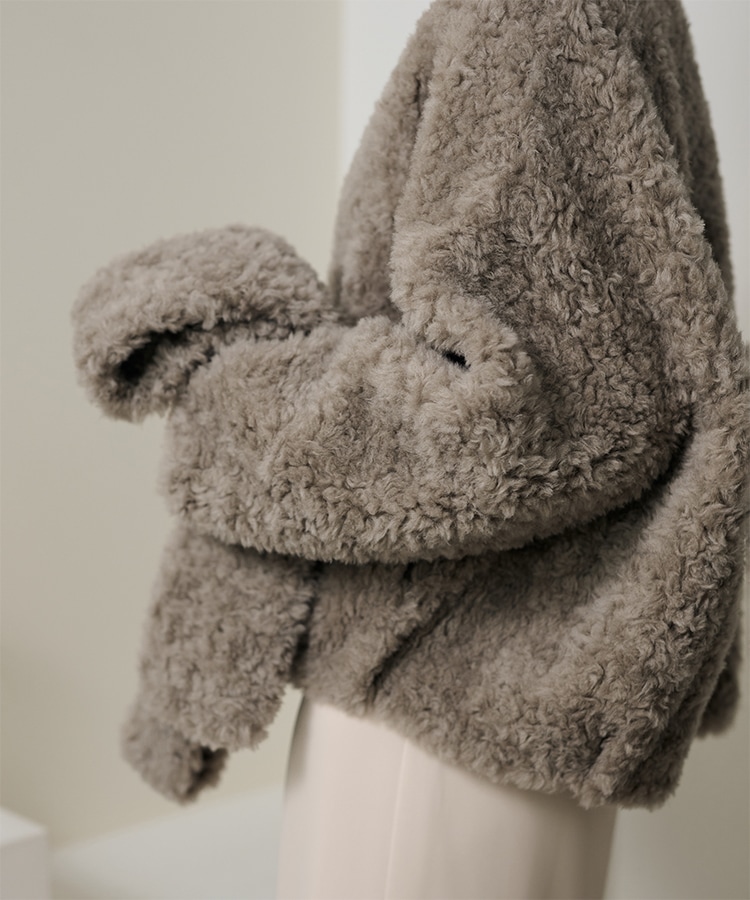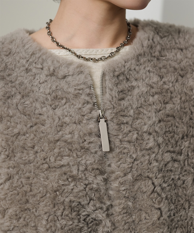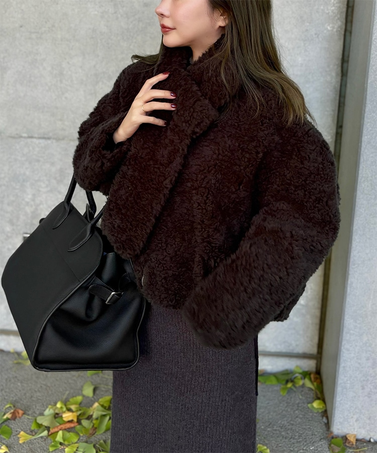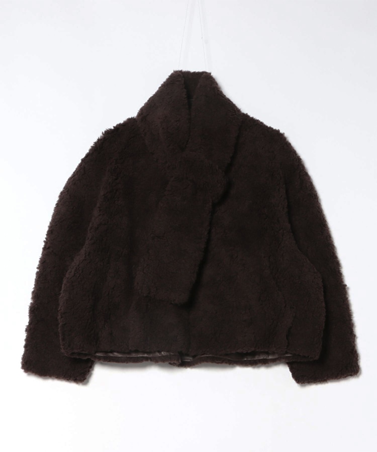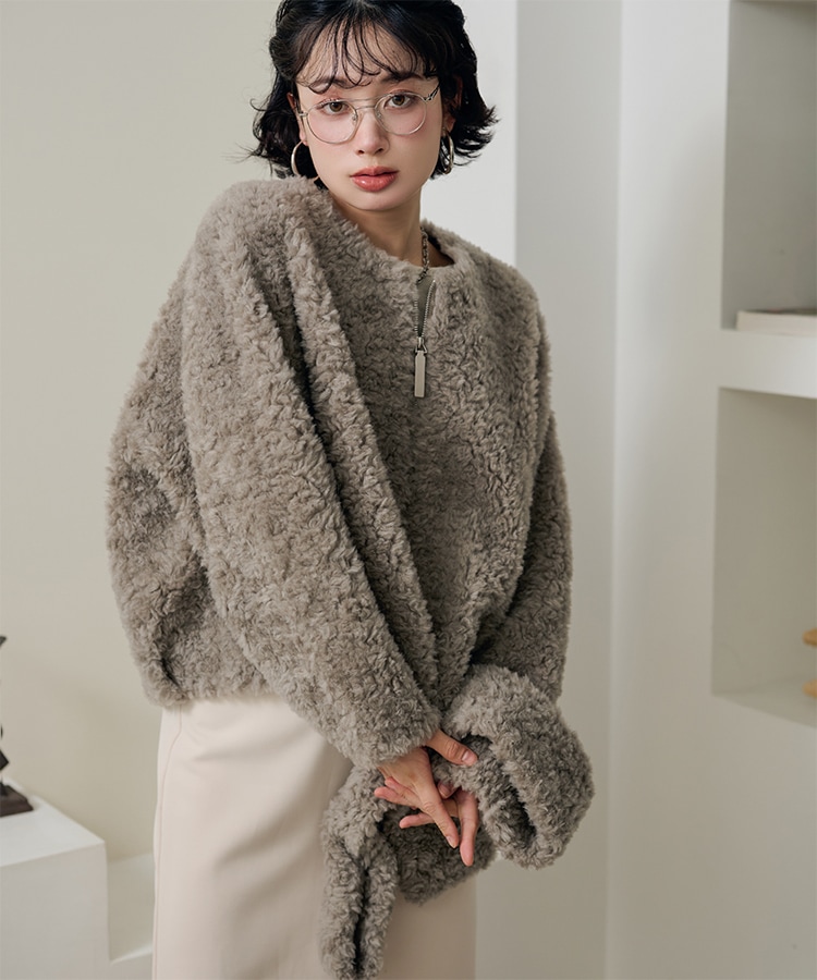 wool boa stand collar middle coat