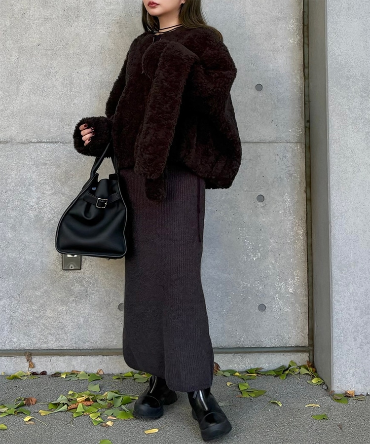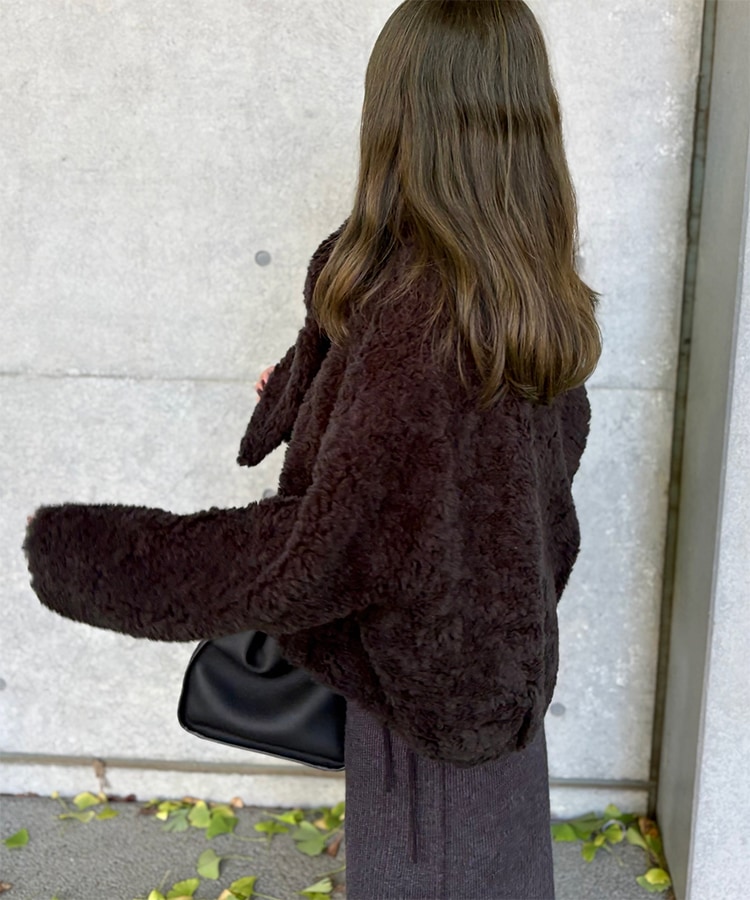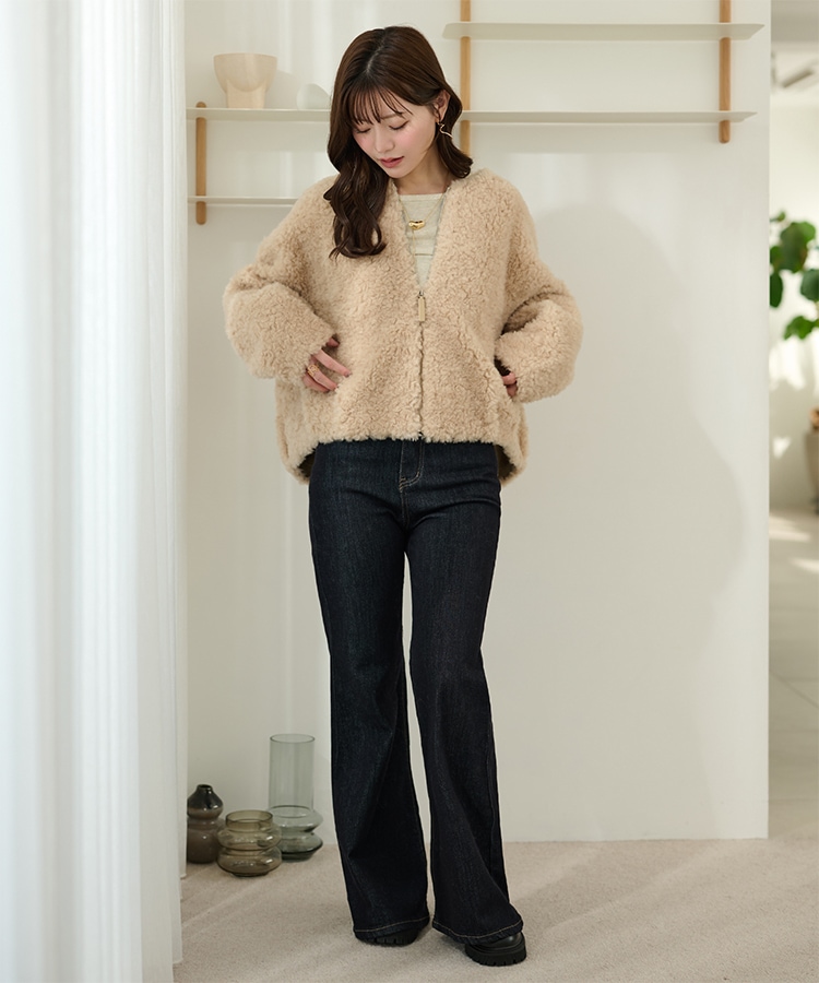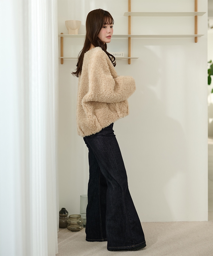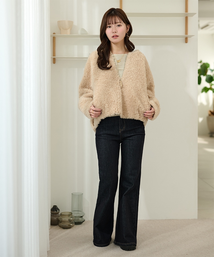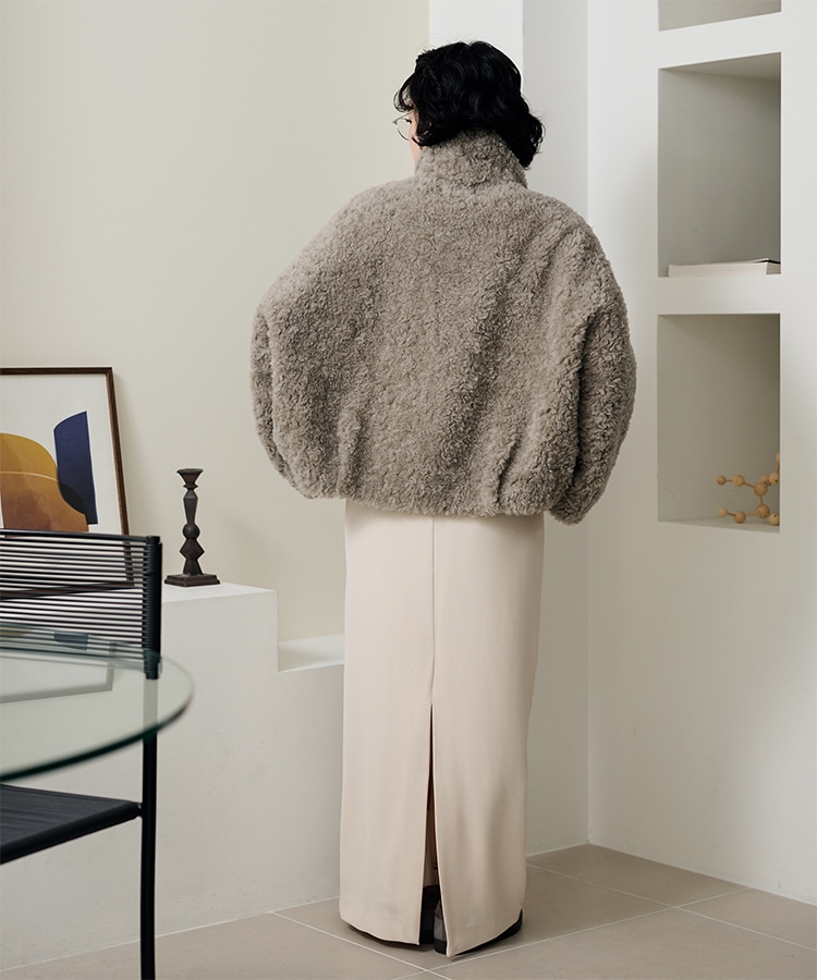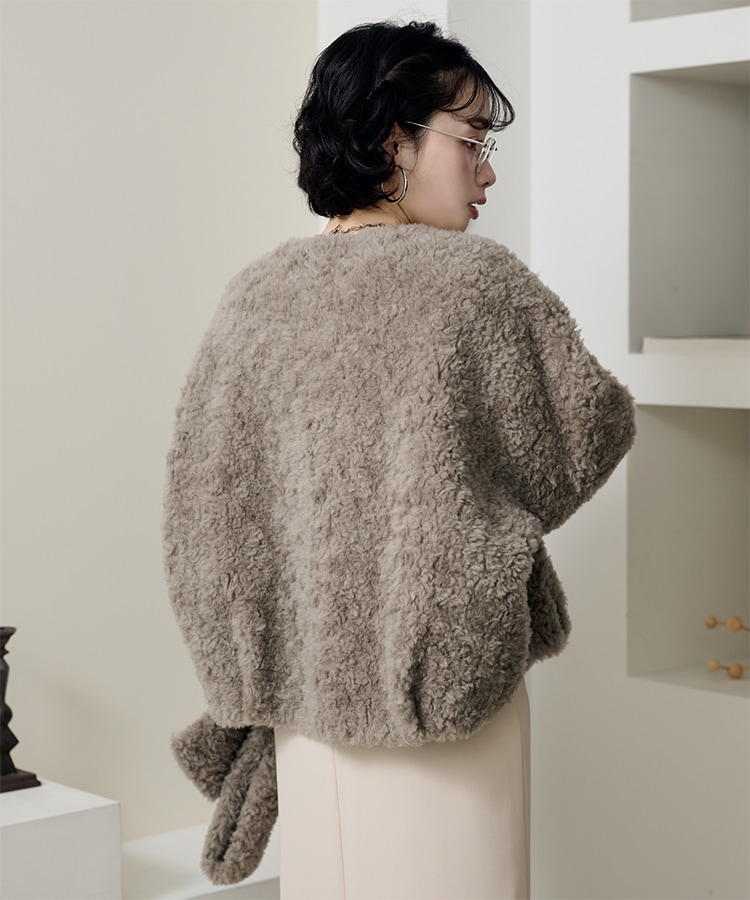wool boa stand collar middle coat