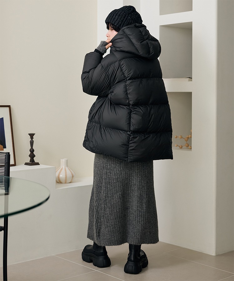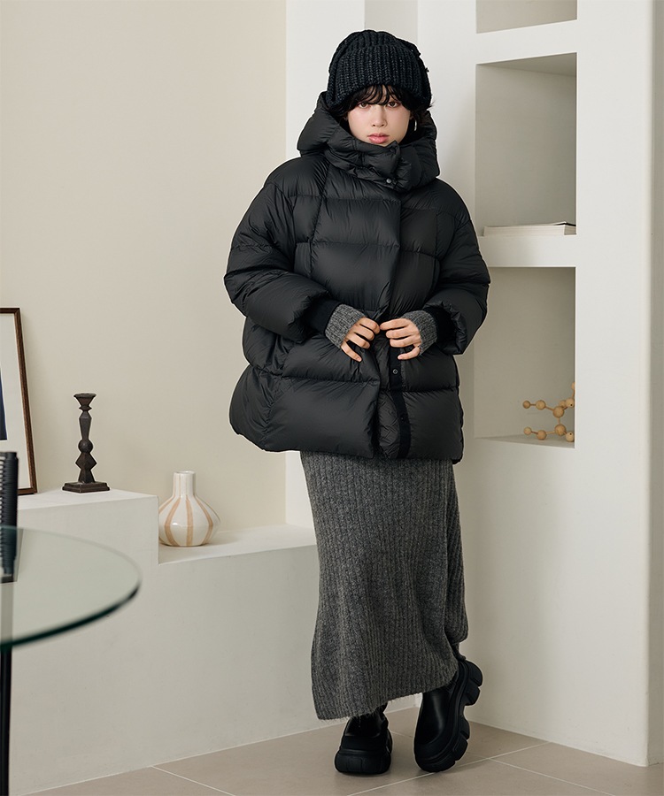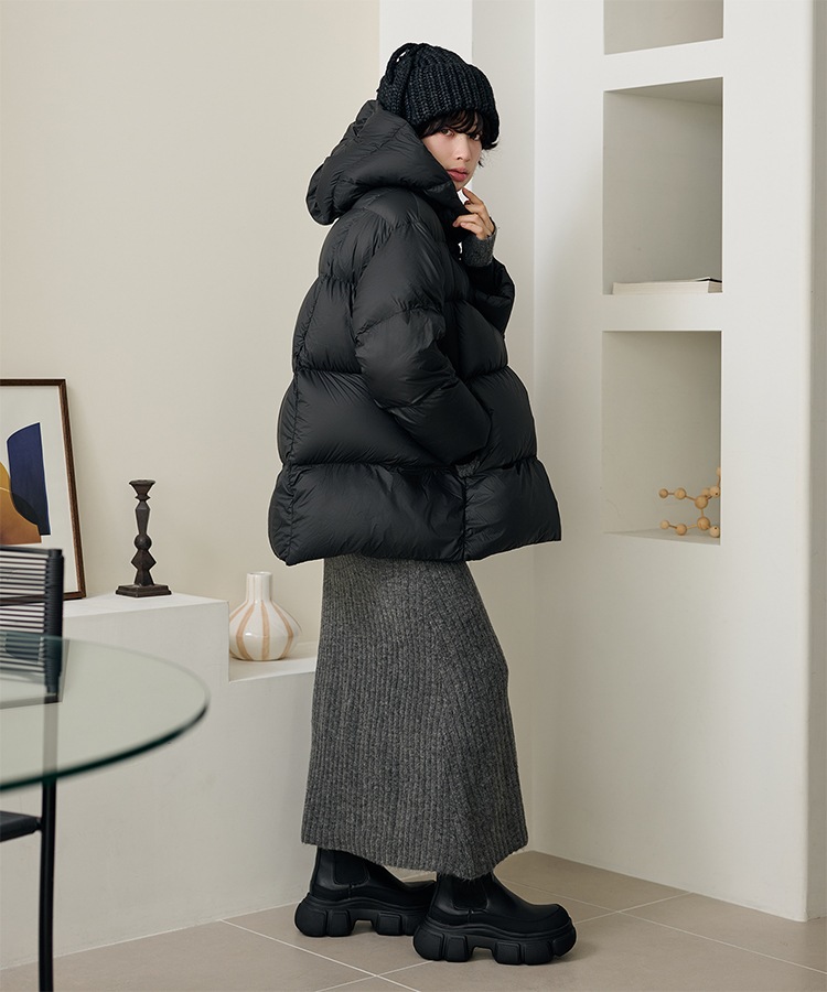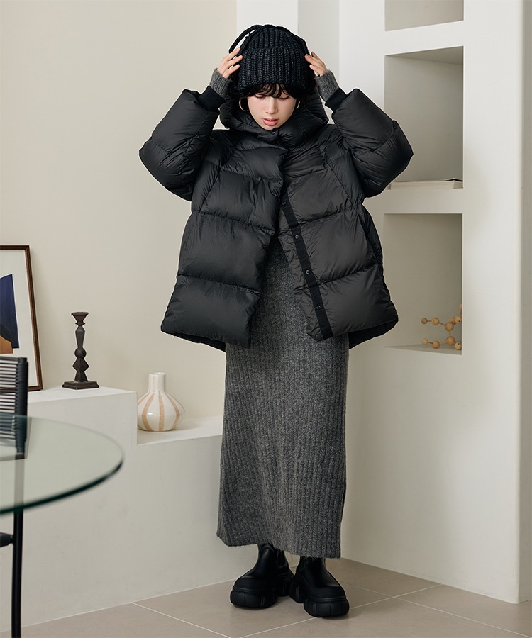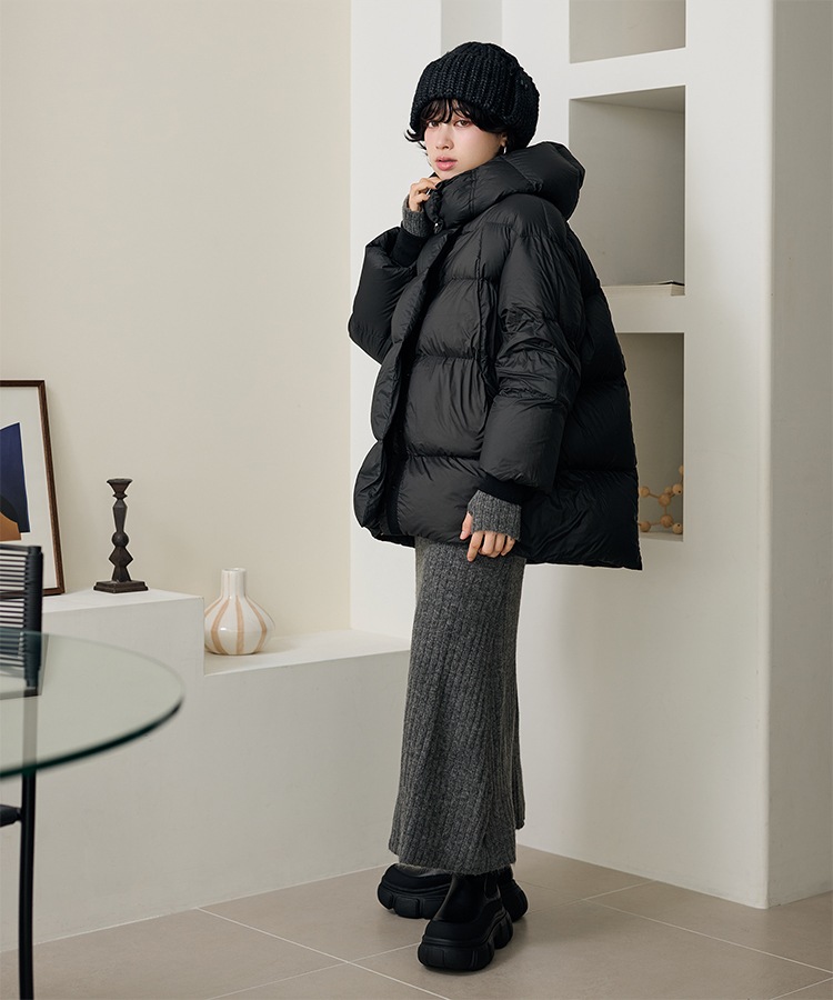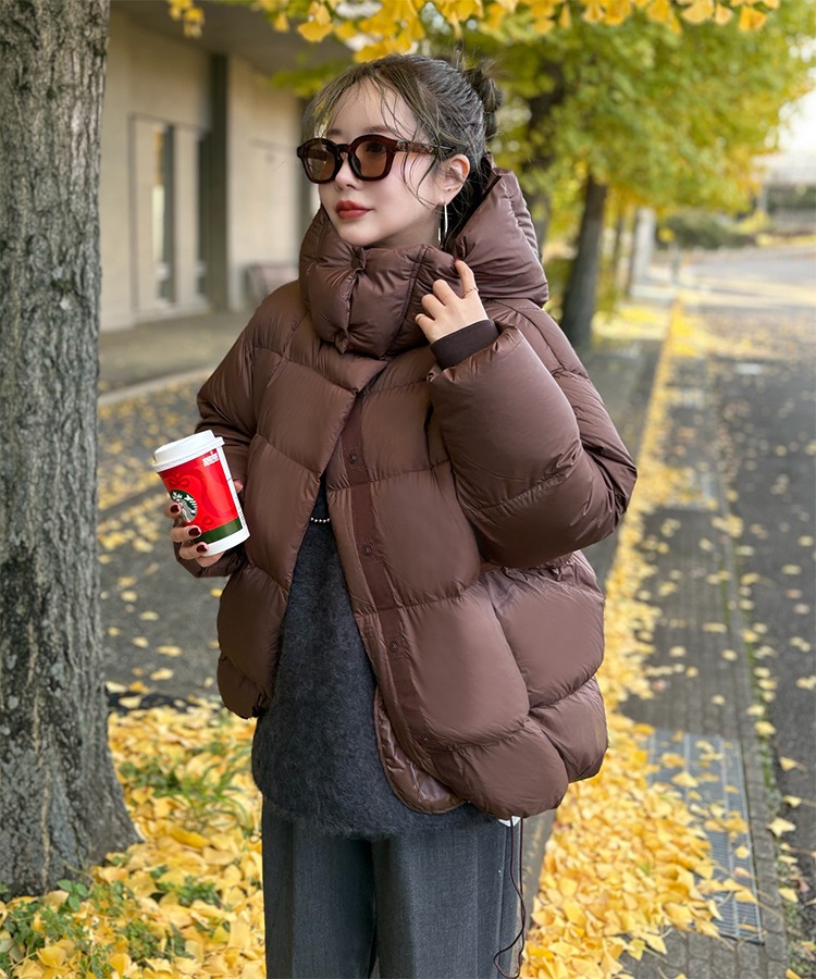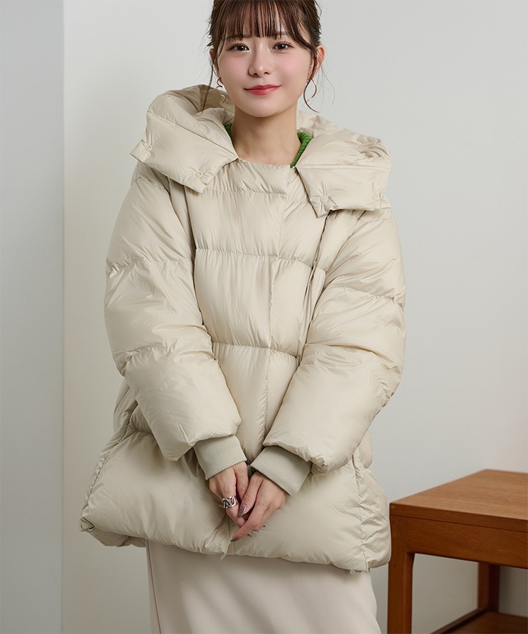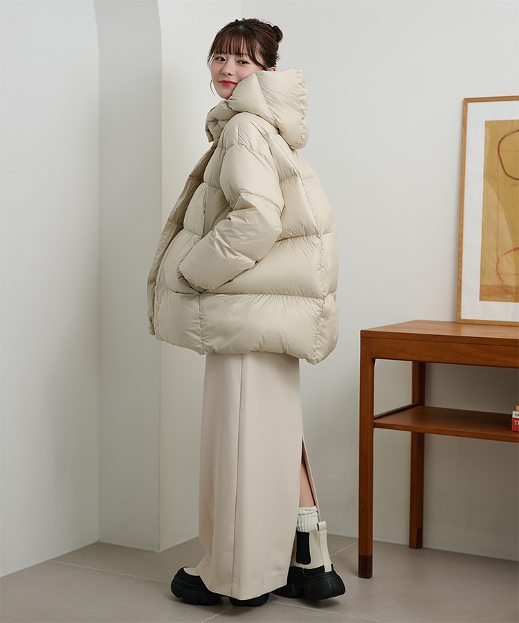 wool boa stand collar middle coat