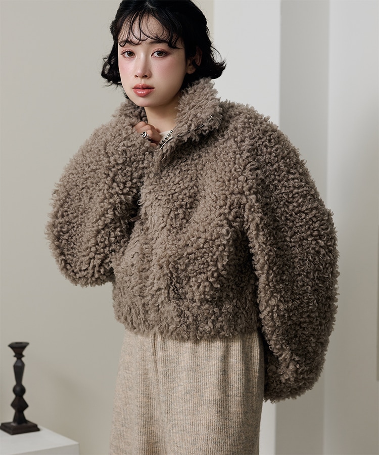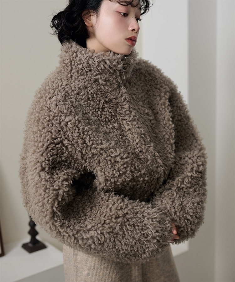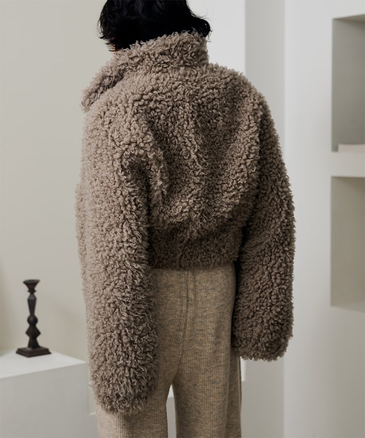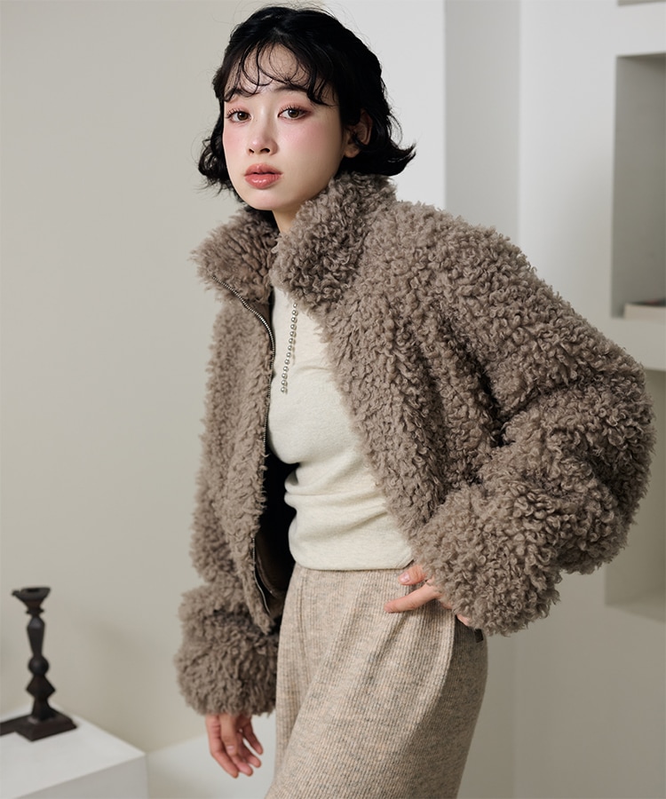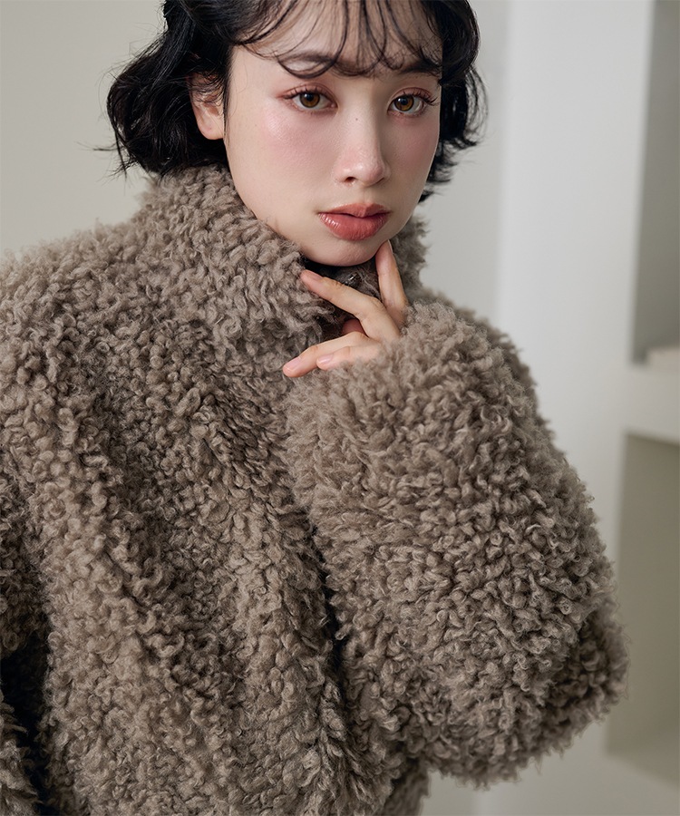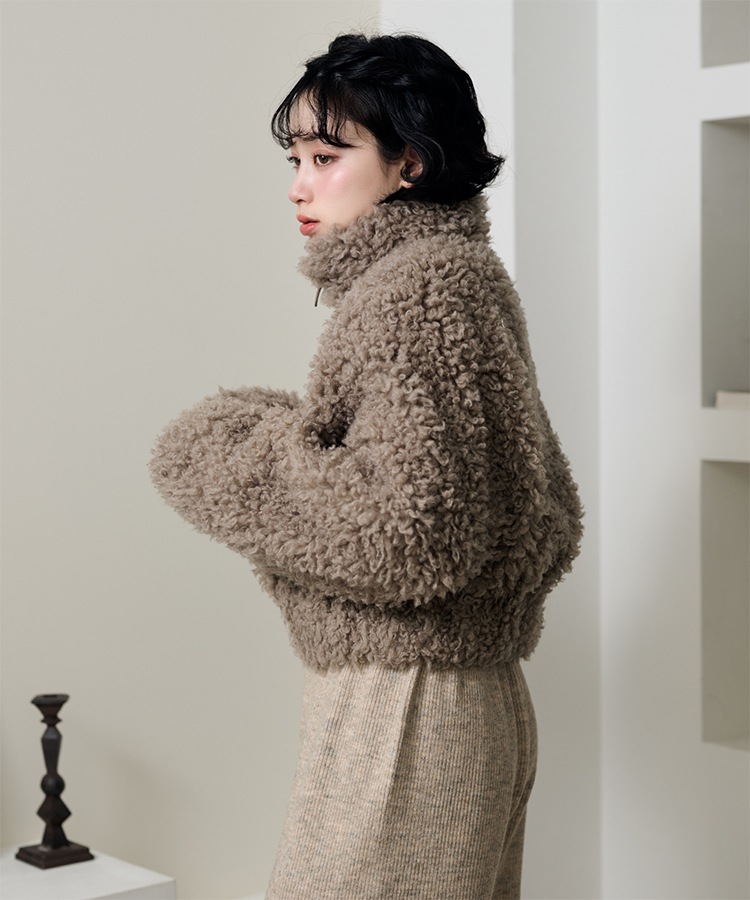 wool boa stand collar middle coat