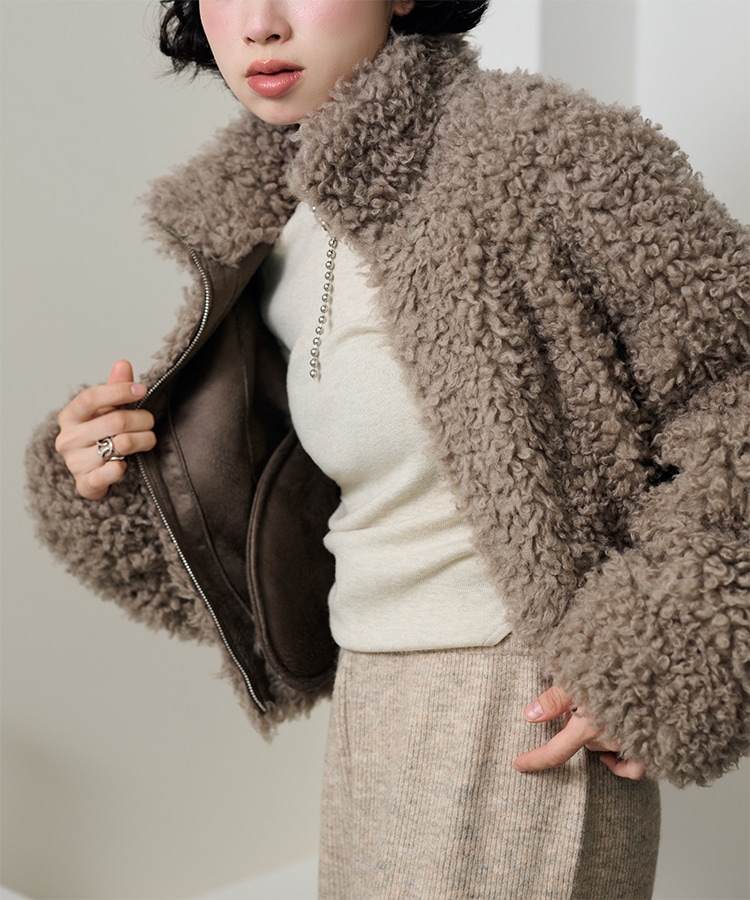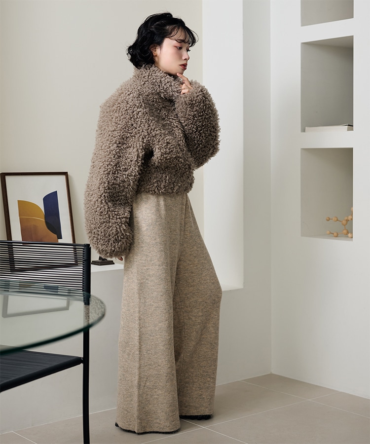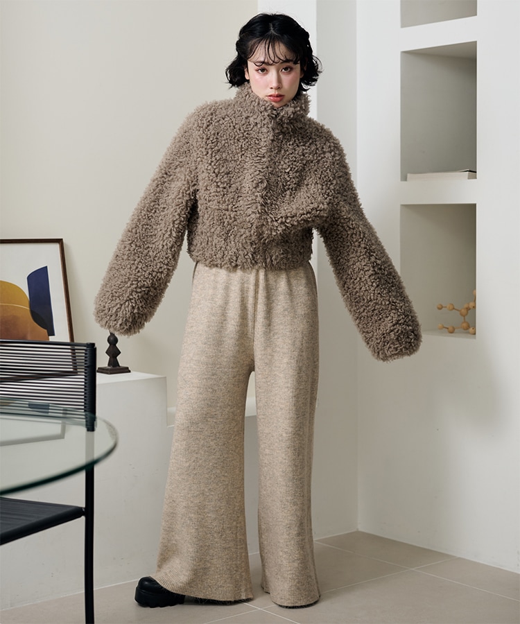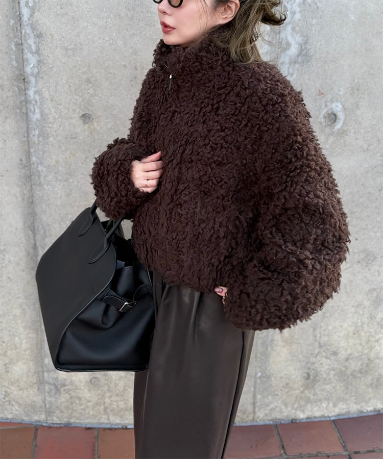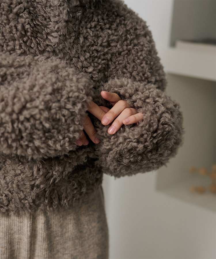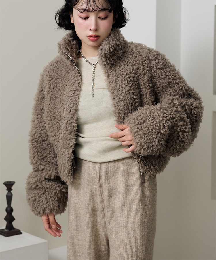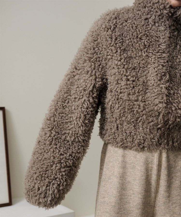 wool boa stand collar middle coat