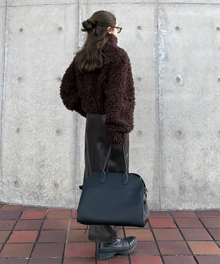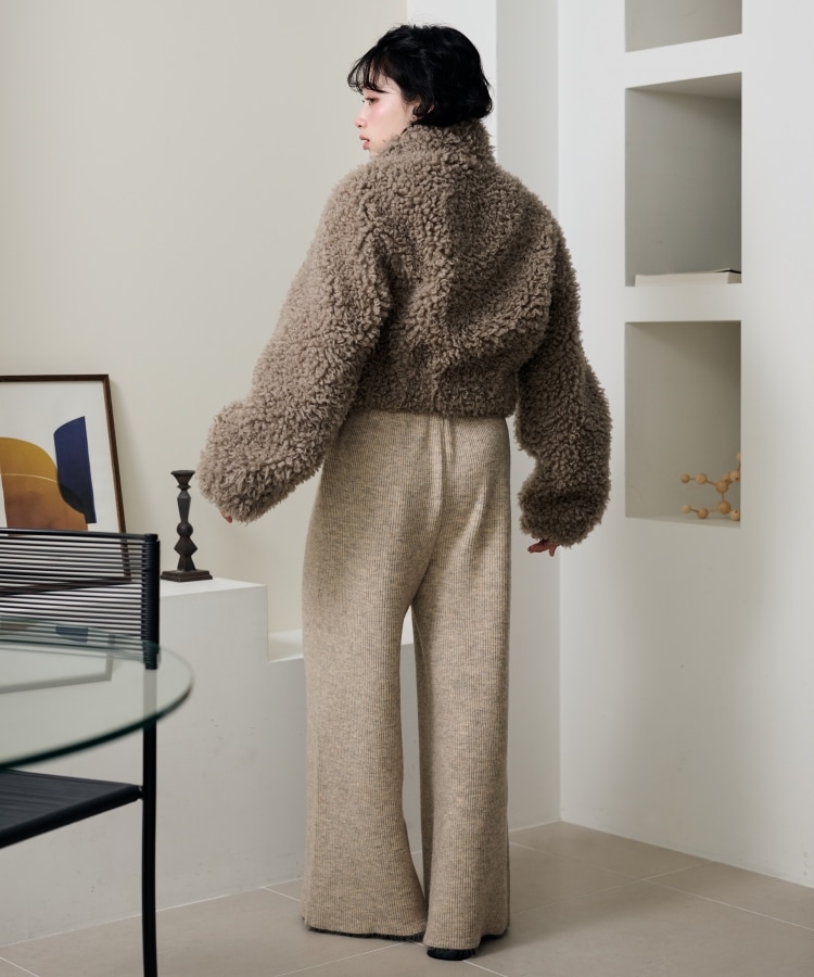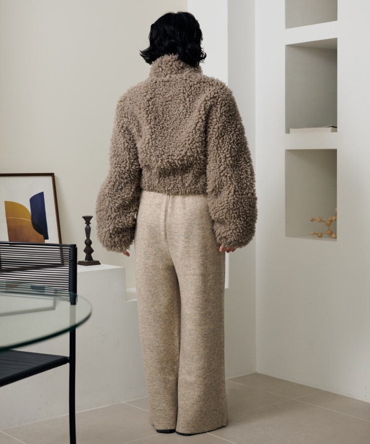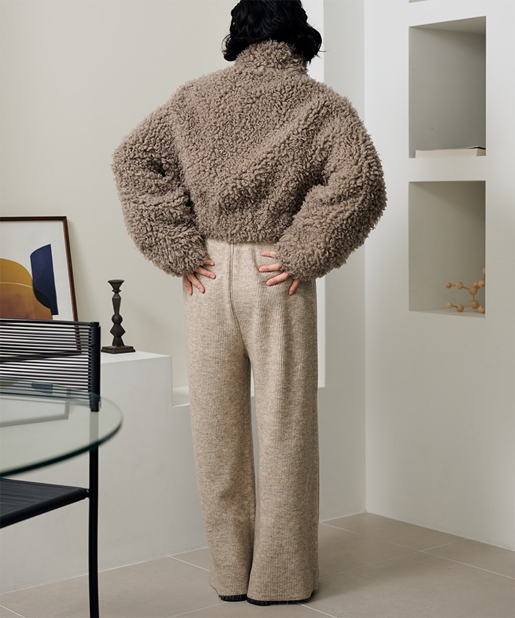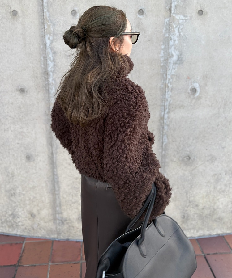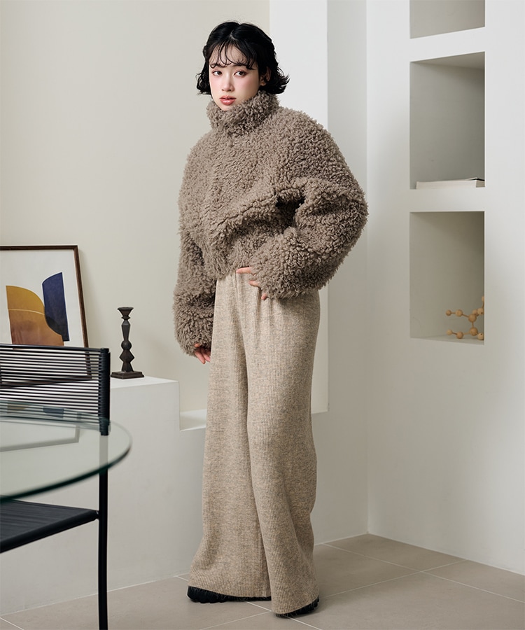 wool boa stand collar middle coat