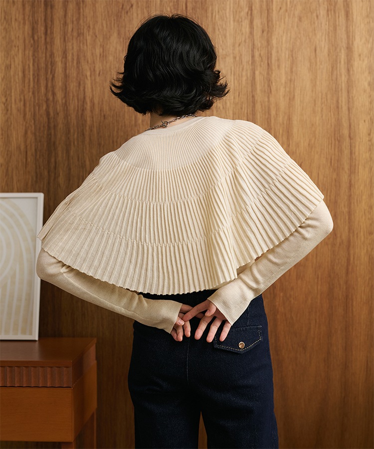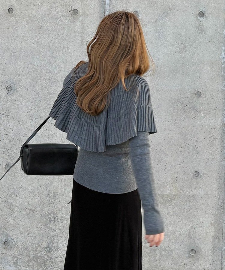 v neck knit pullover shawl set