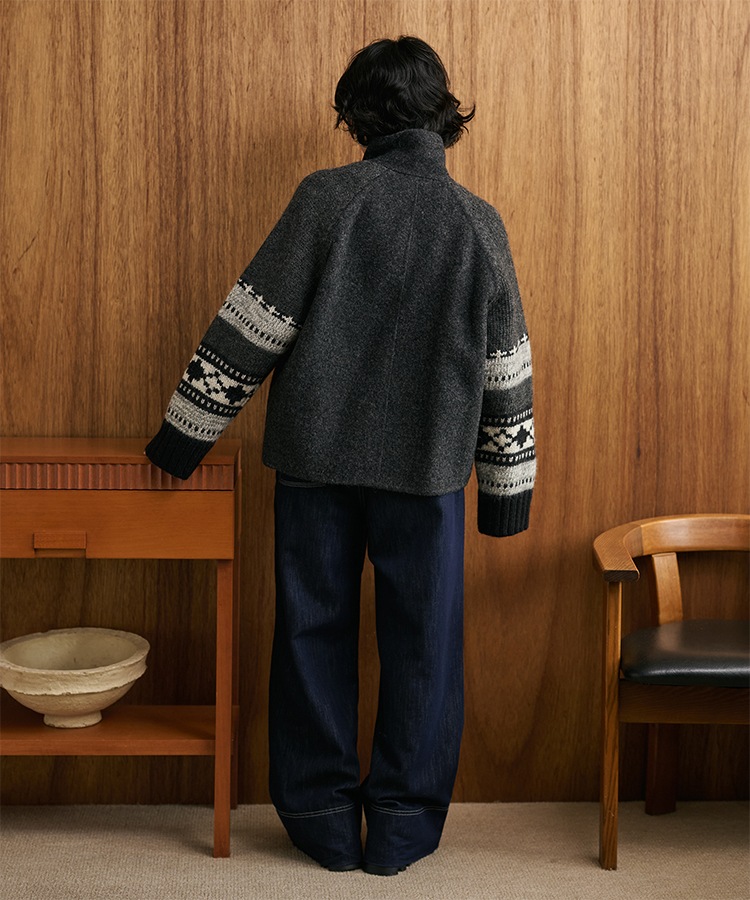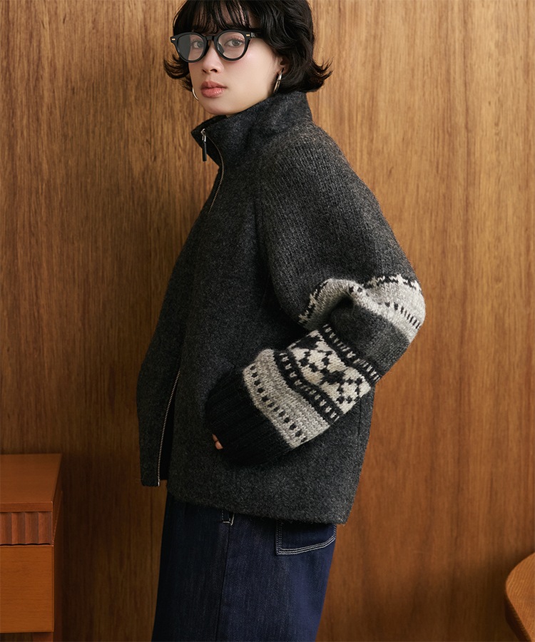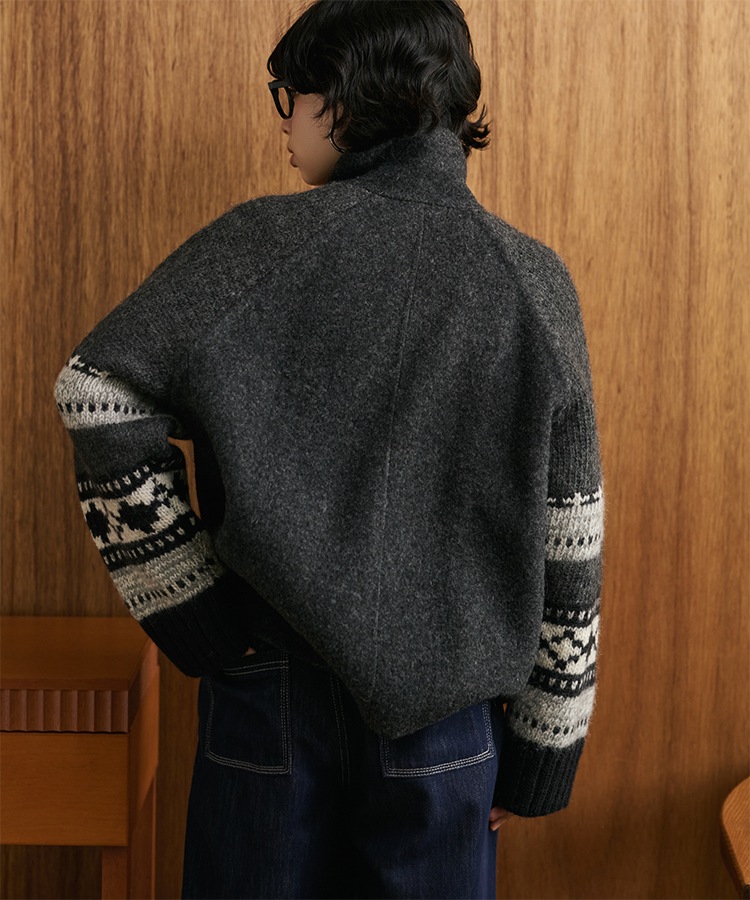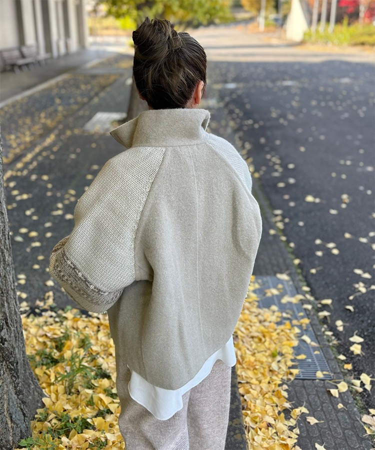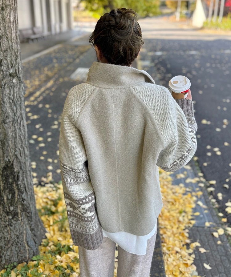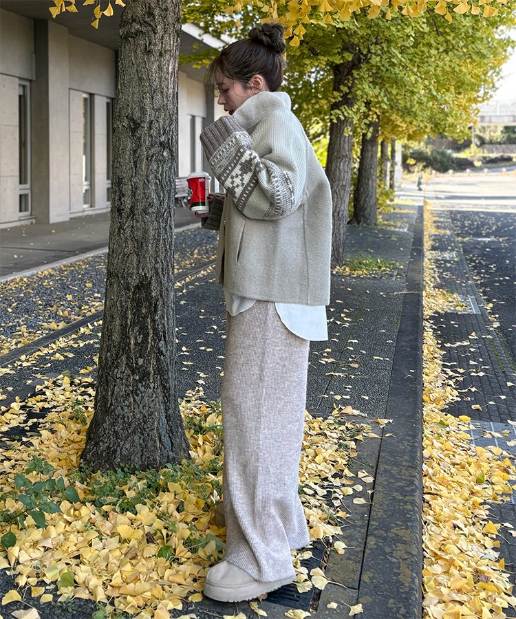wool boa stand collar middle coat
