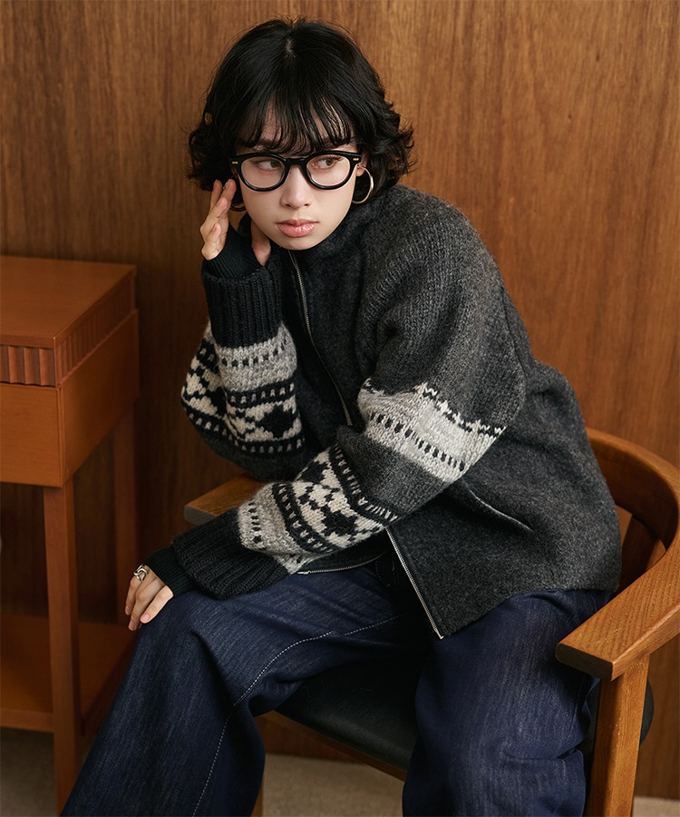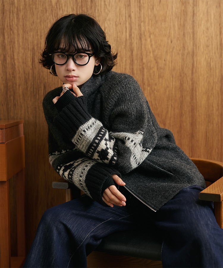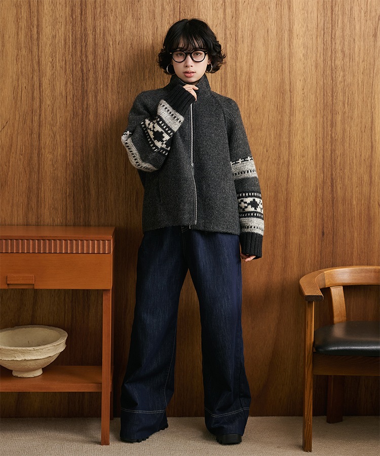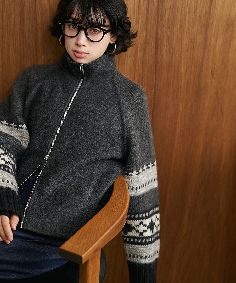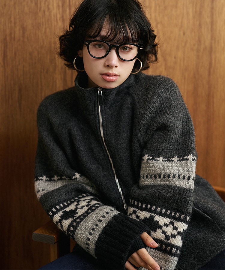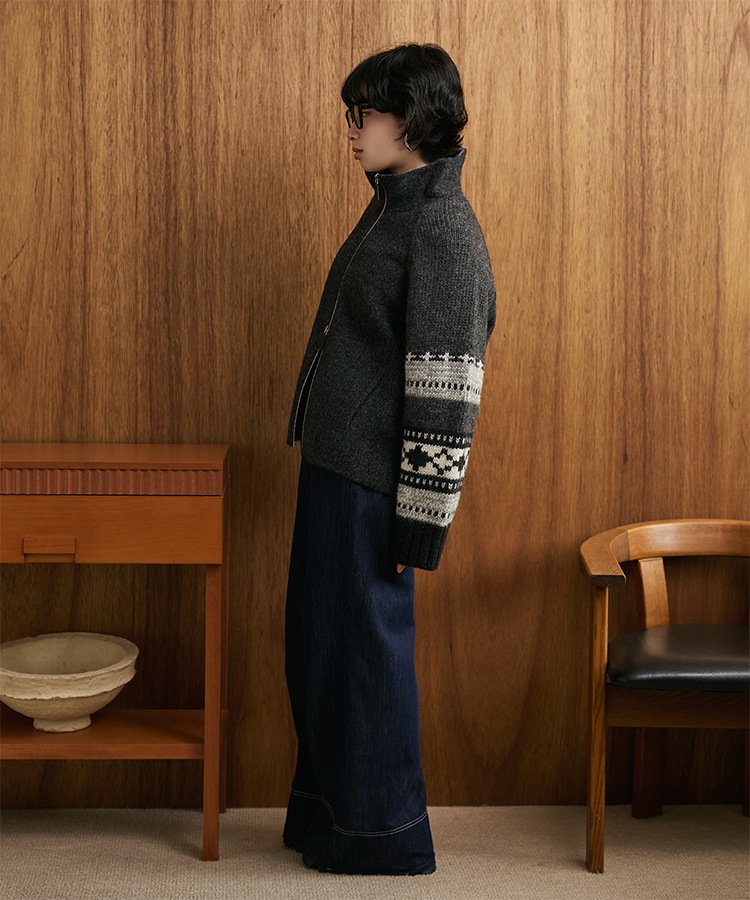 wool boa stand collar middle coat