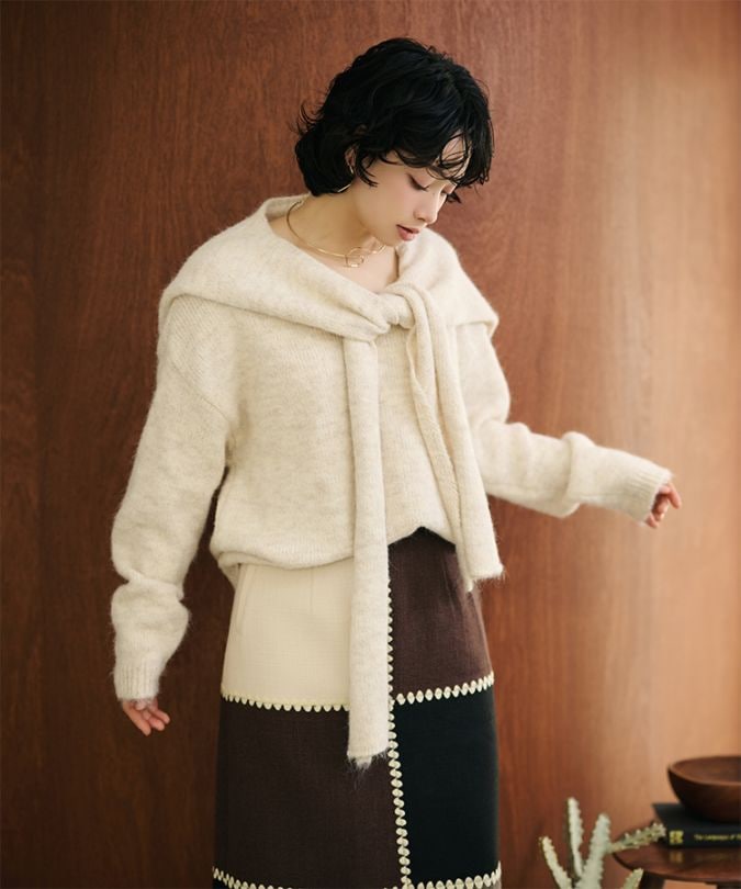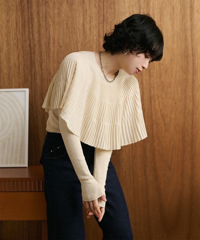 v neck knit pullover shawl set