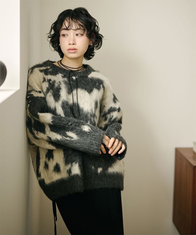 nuance pattern shaggy knit pullover