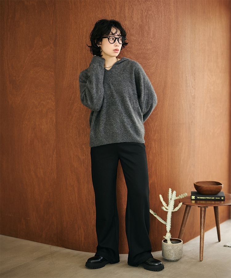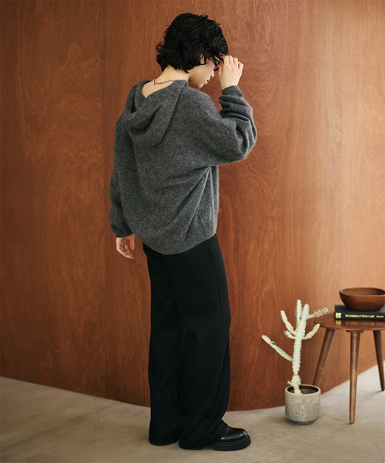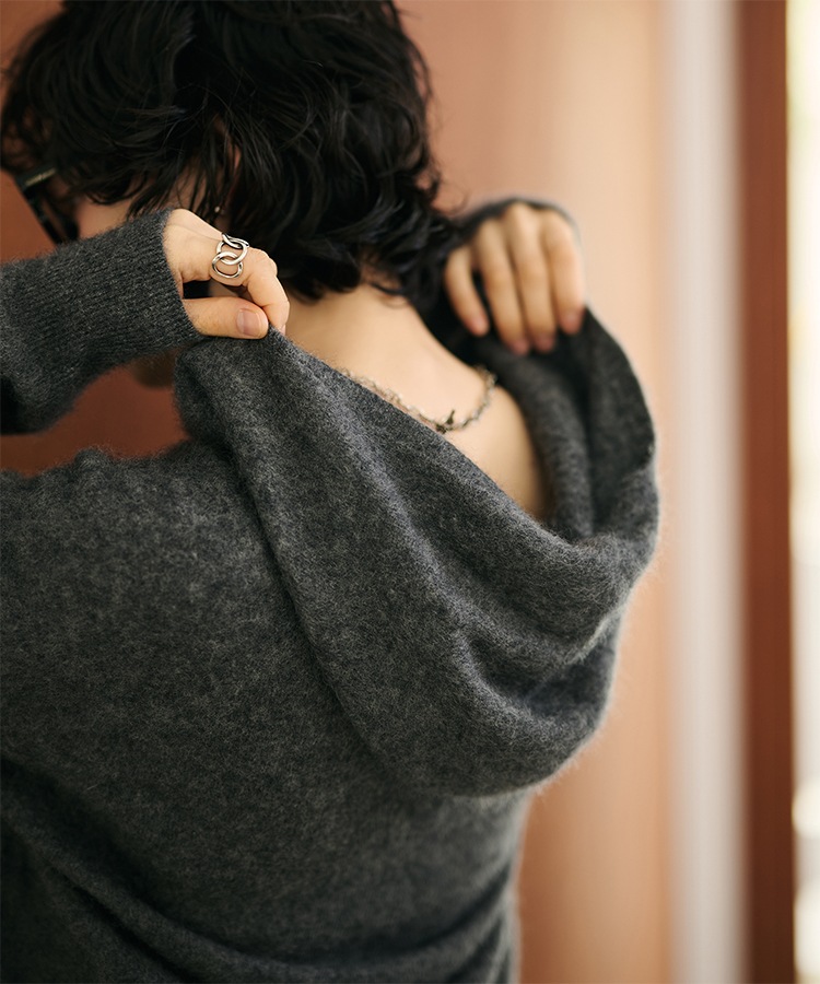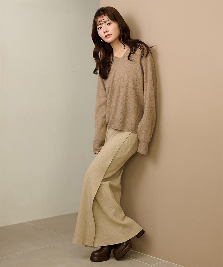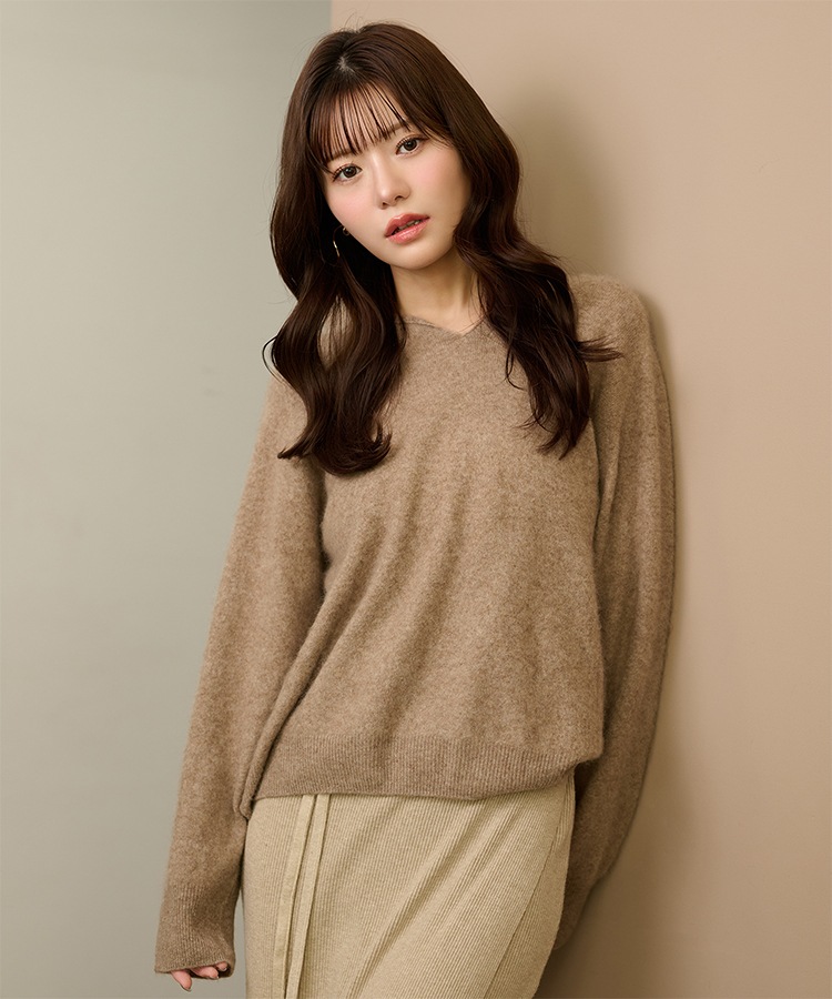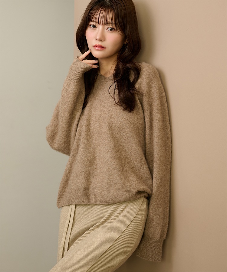 v neck shaggy oversize knit pullover