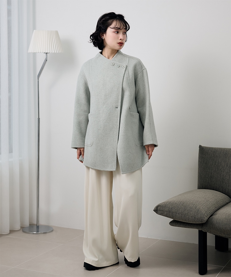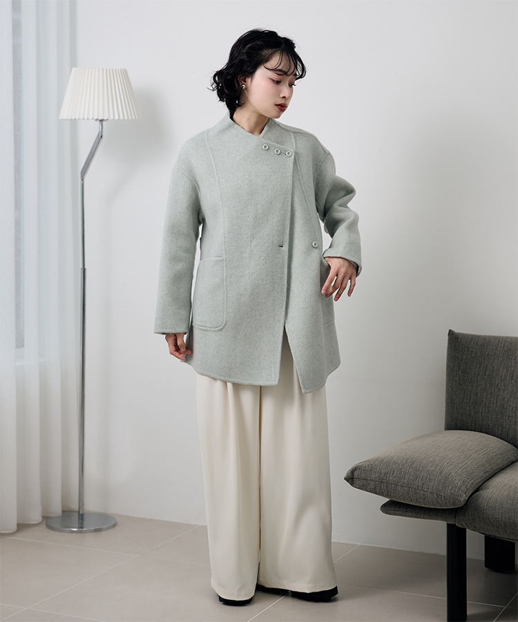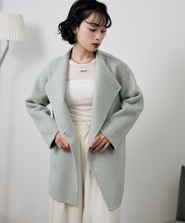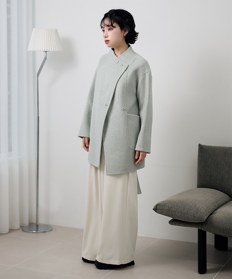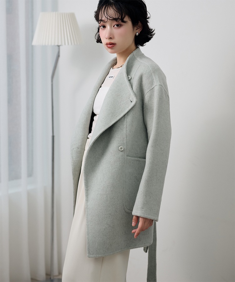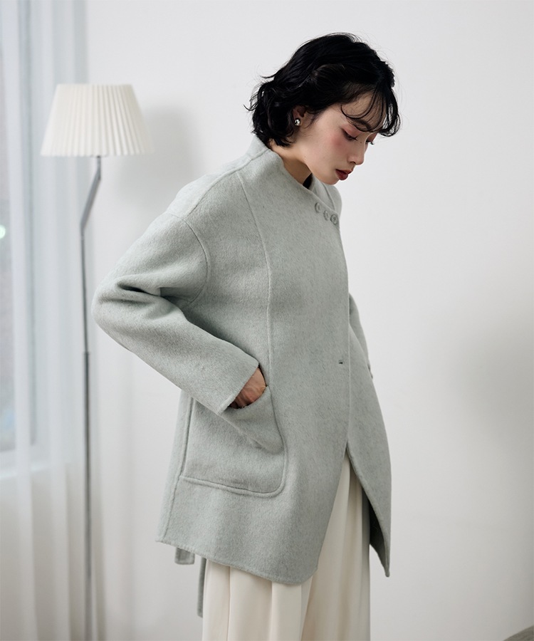 stand collar reversible boa middle coat