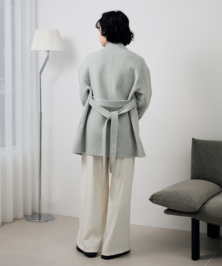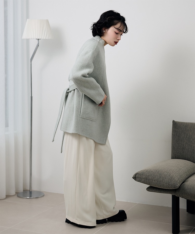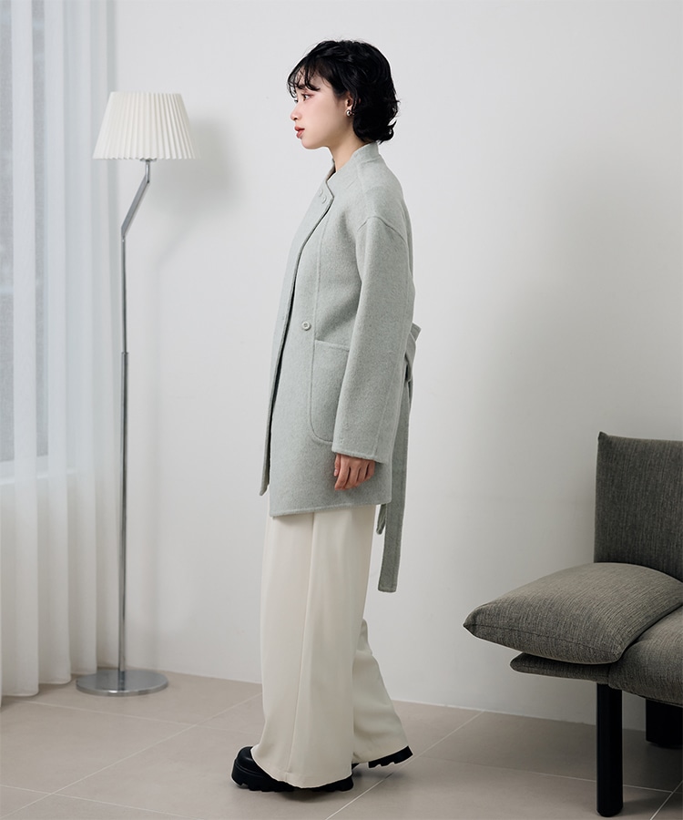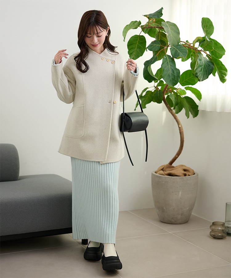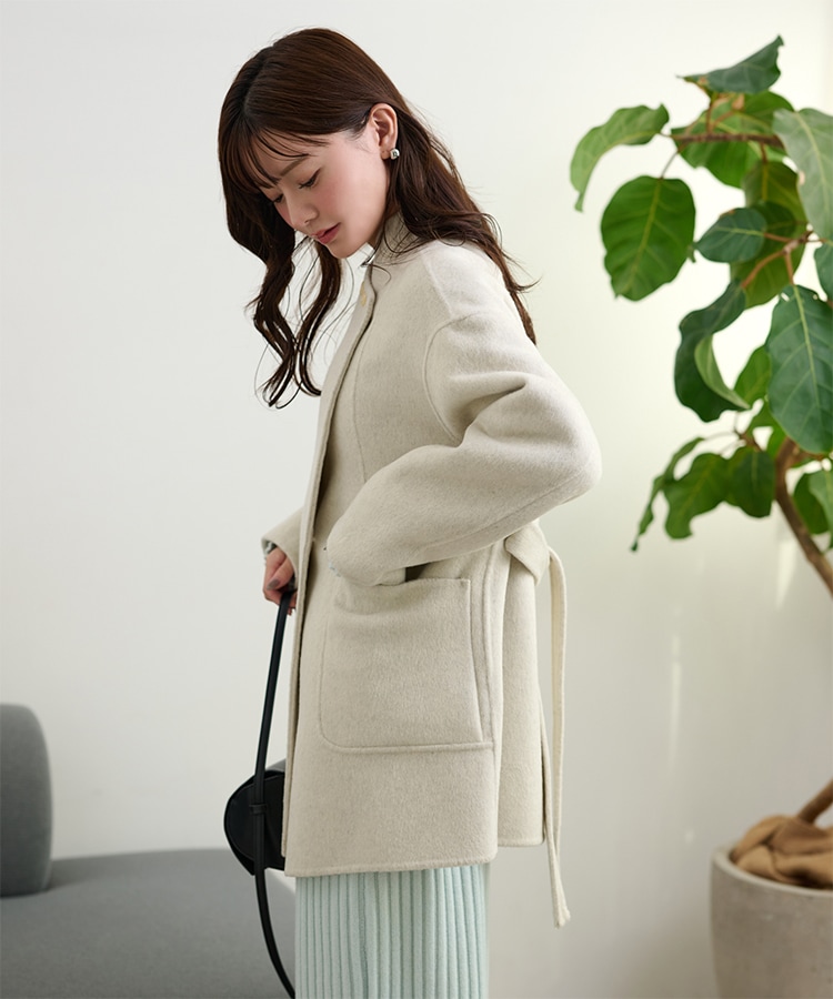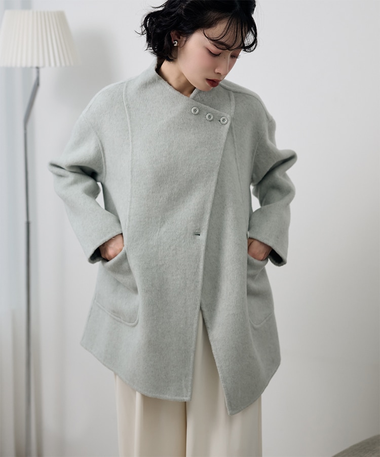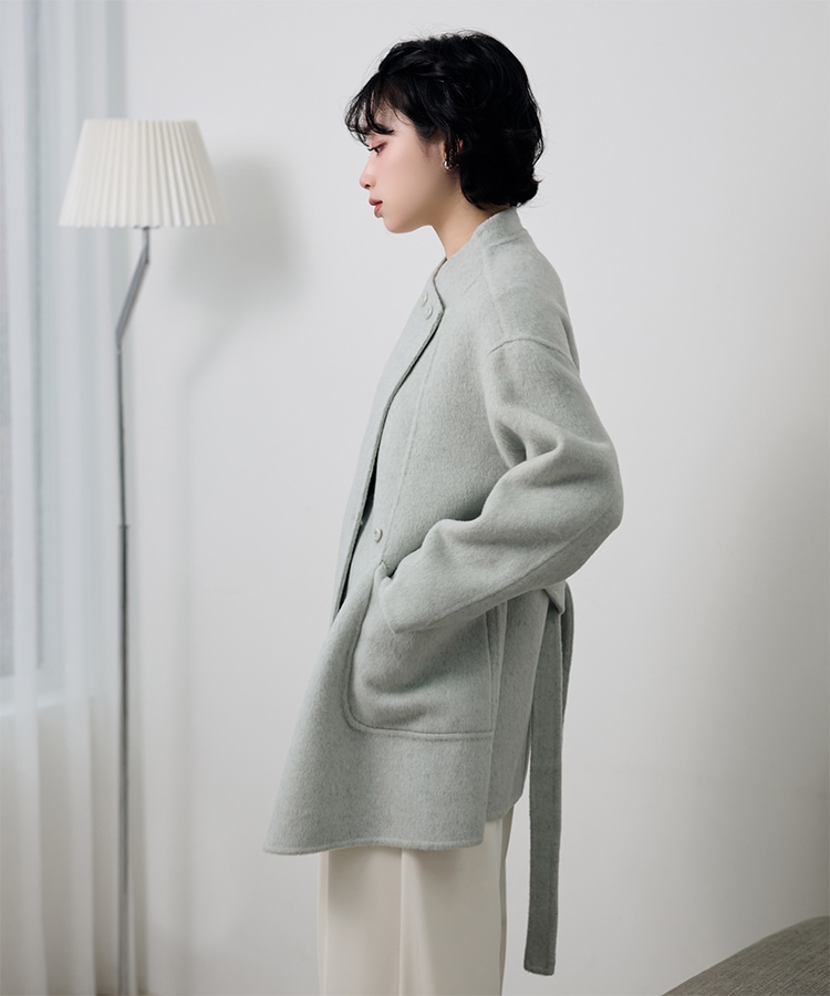 stand collar reversible boa middle coat