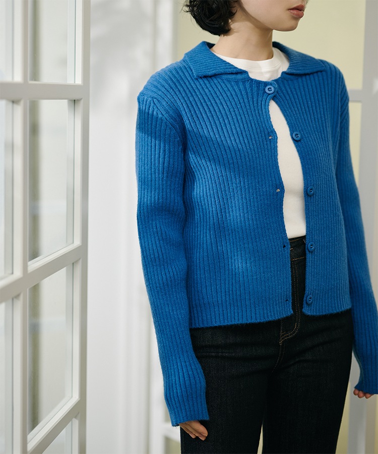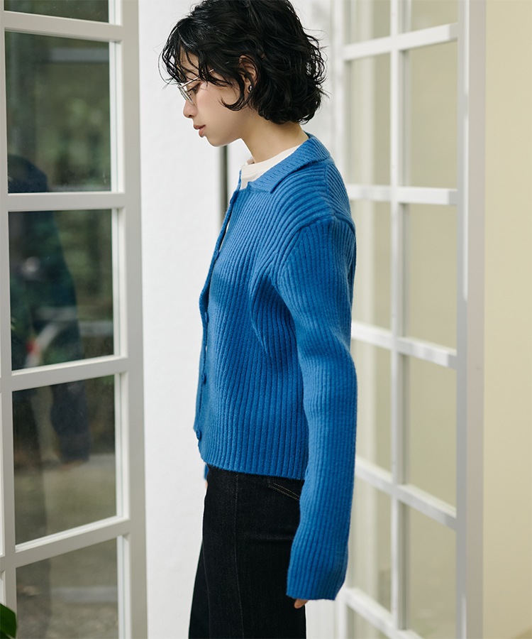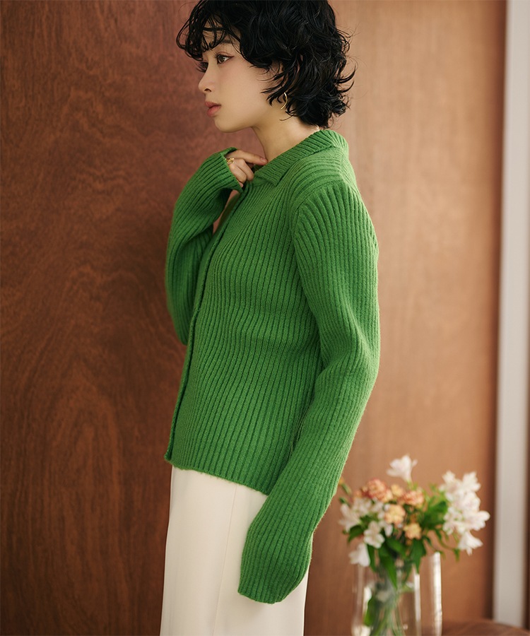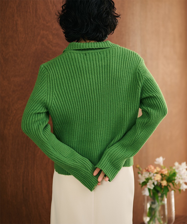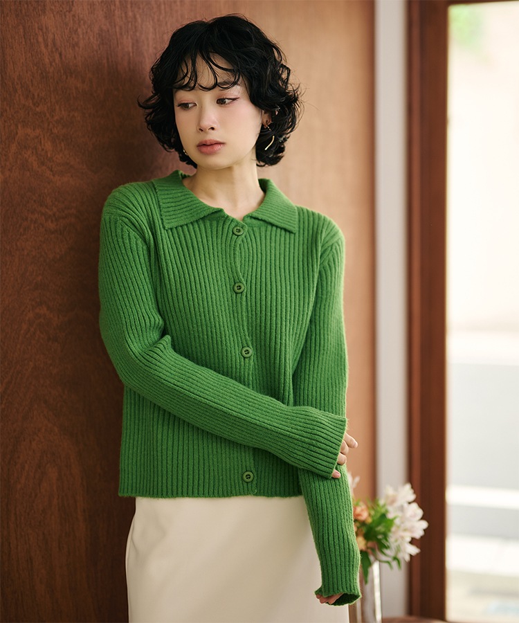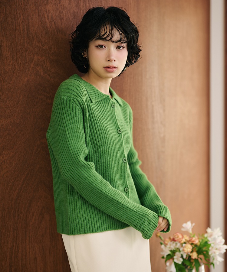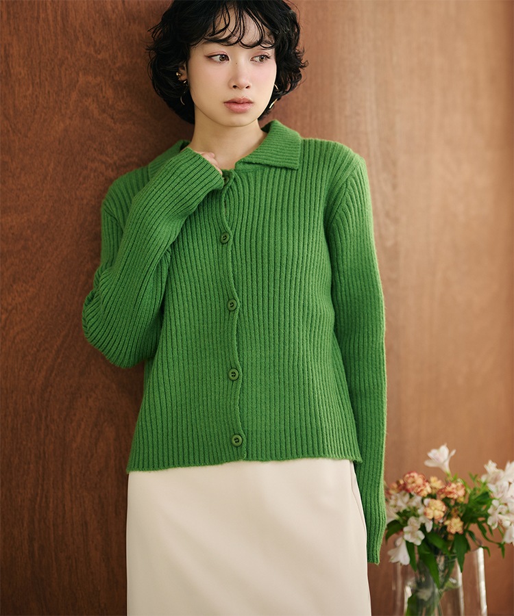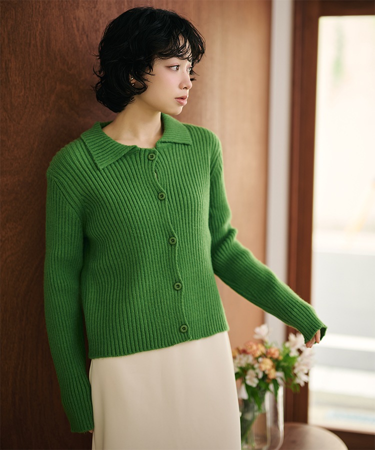 wool cashmere collared knit cardigan