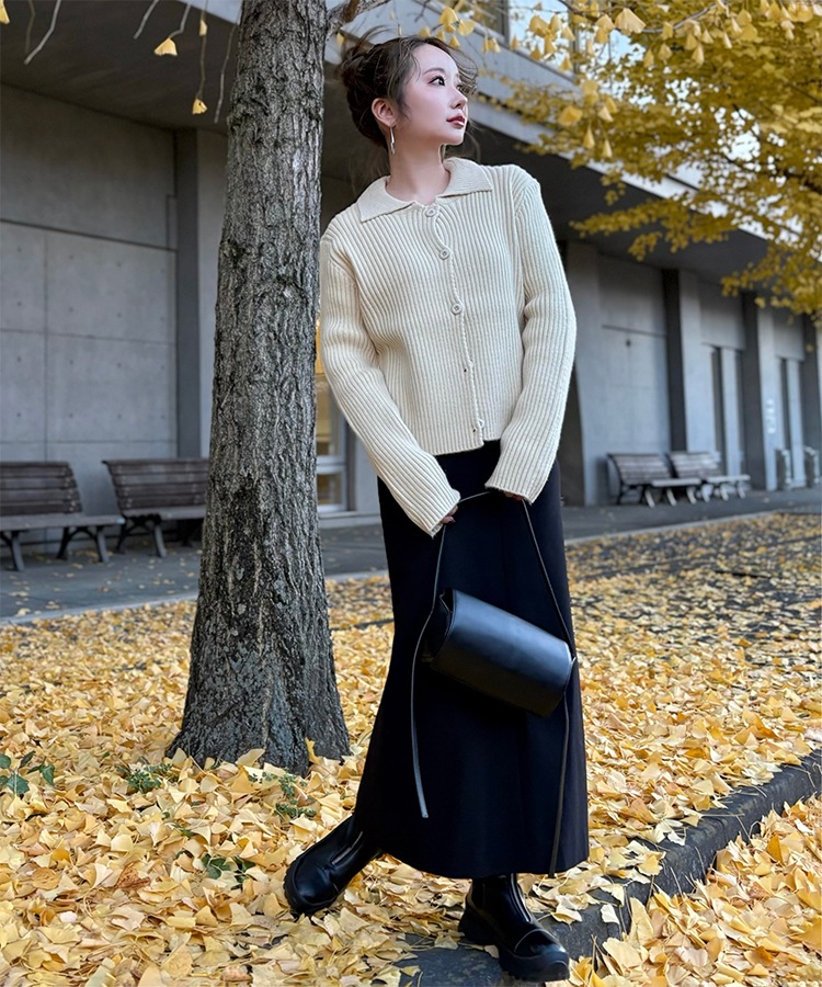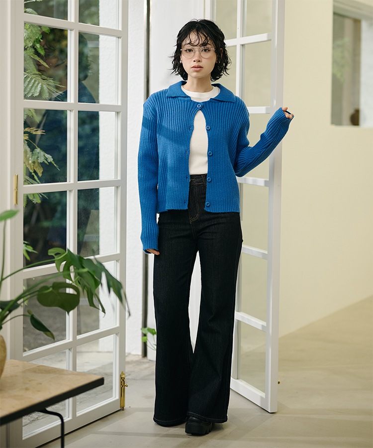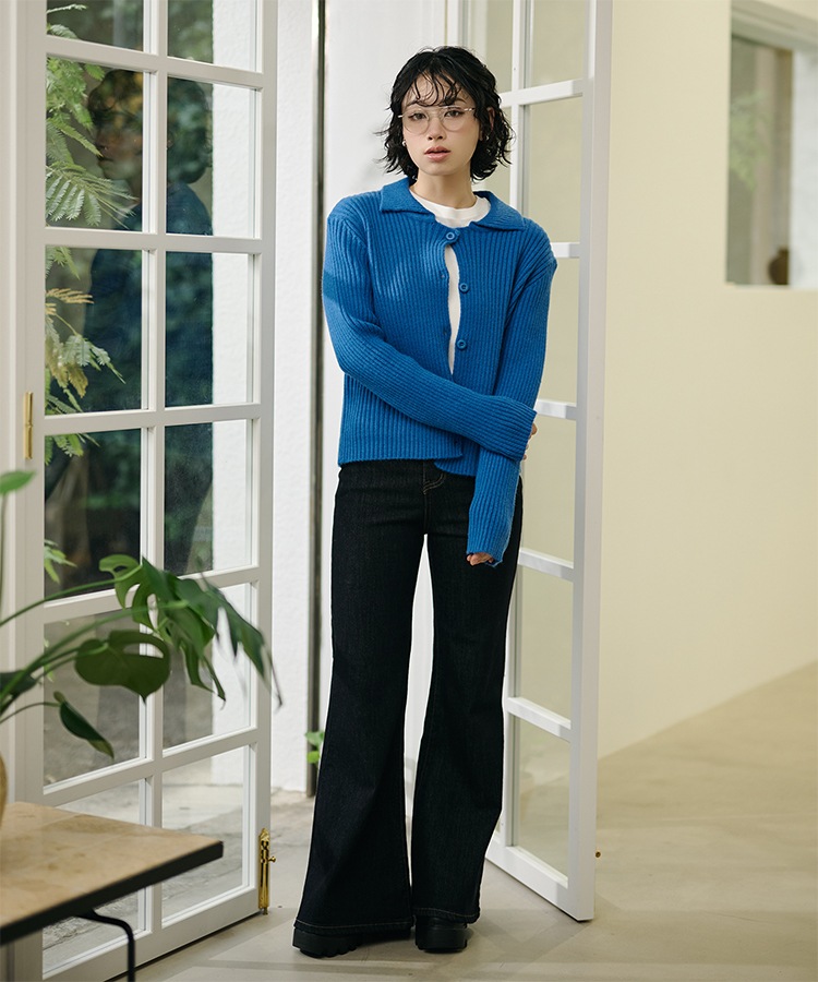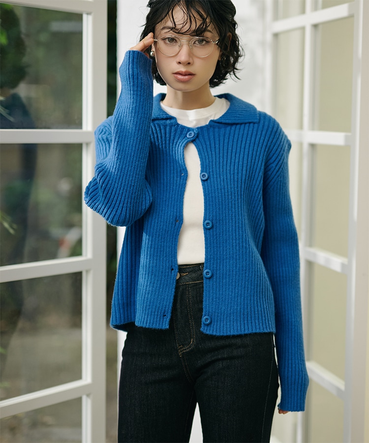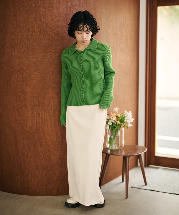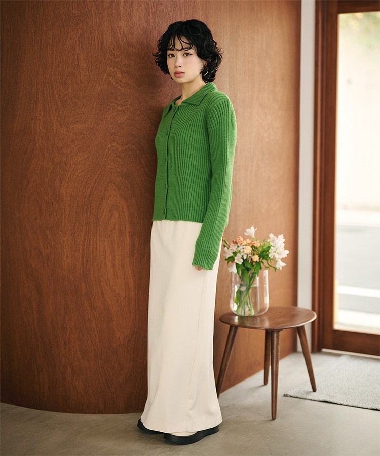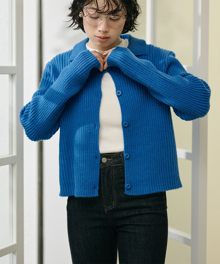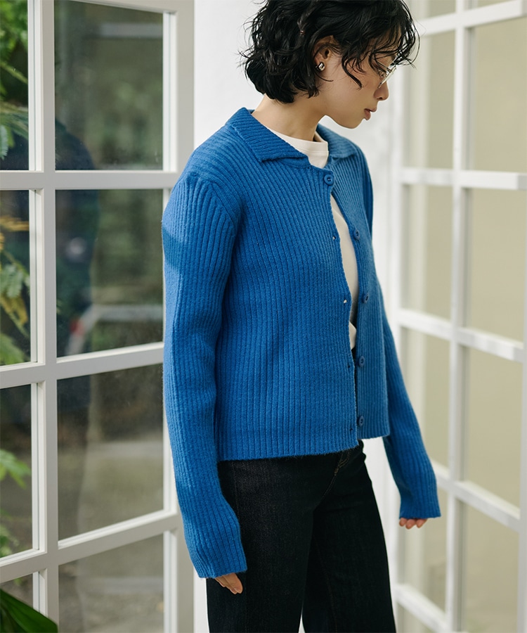 wool cashmere collared knit cardigan