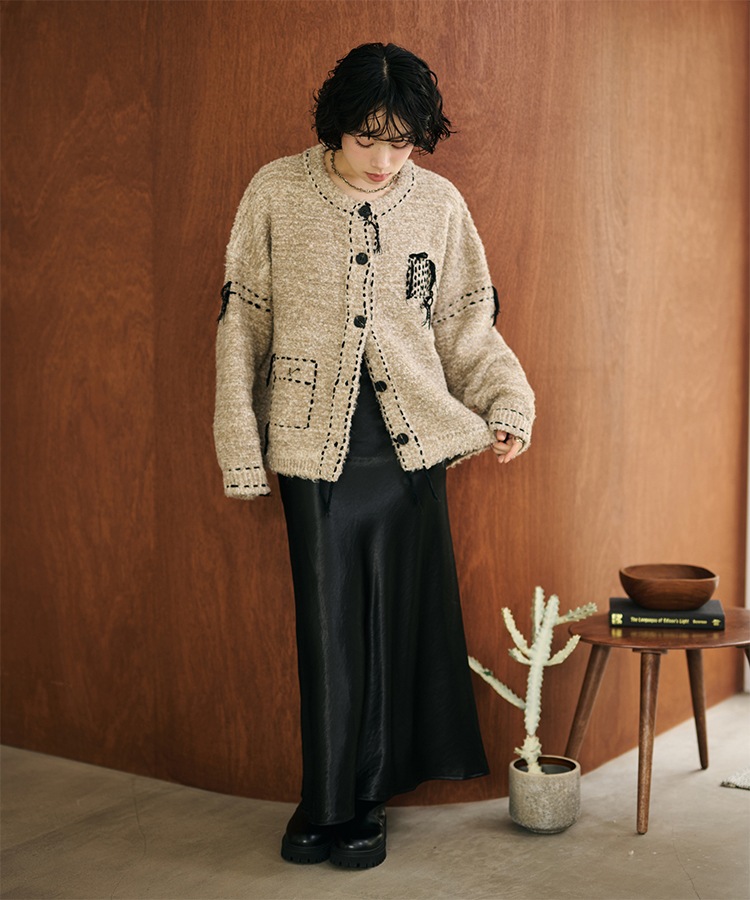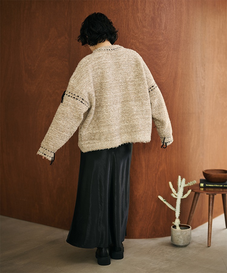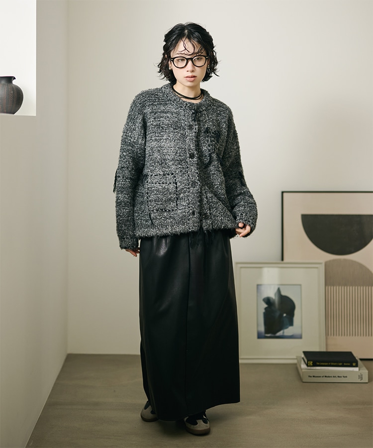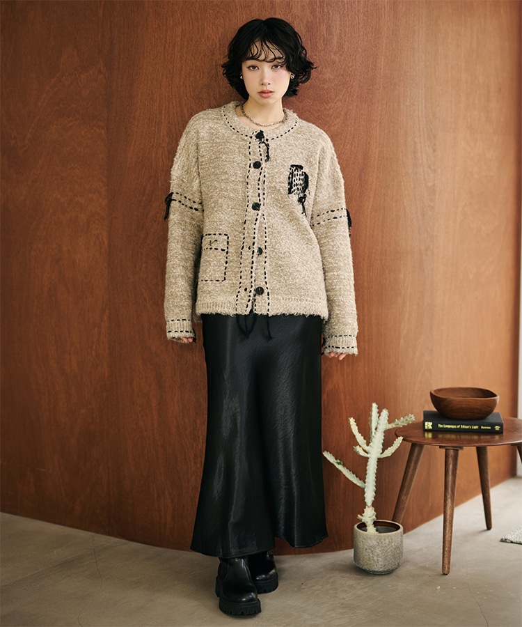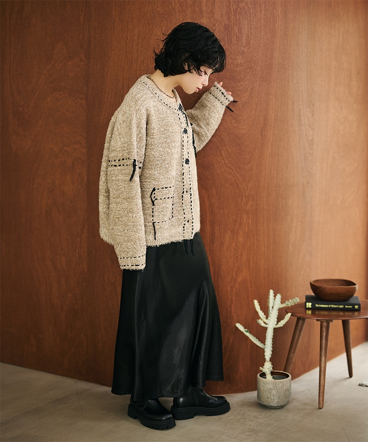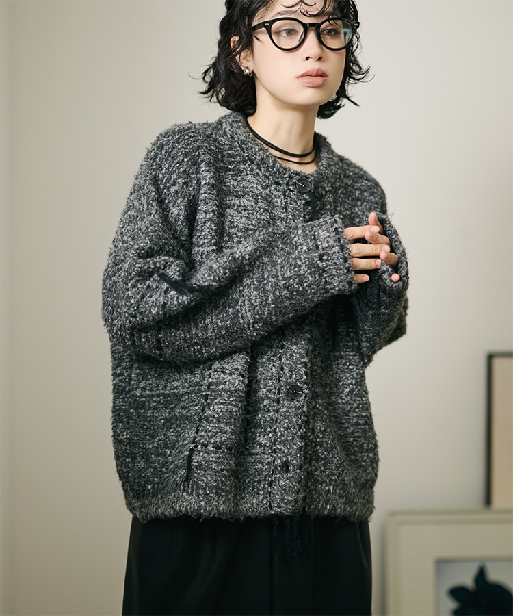 wave buttton collared rib knit cardigan