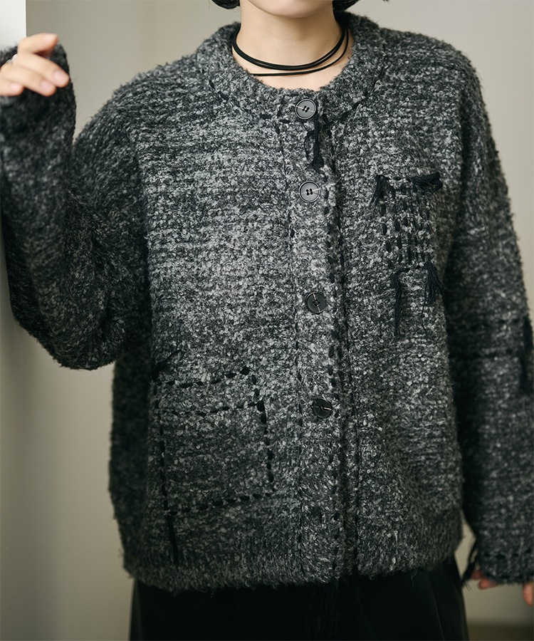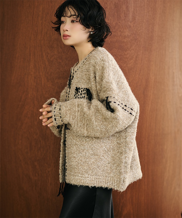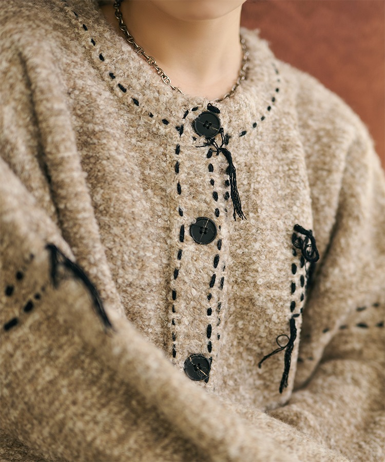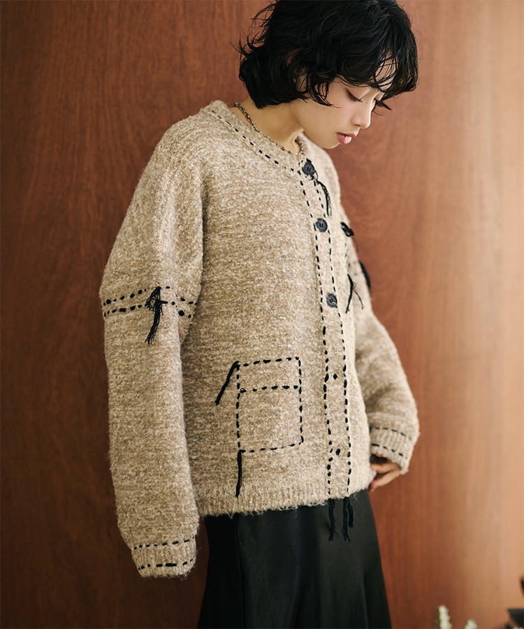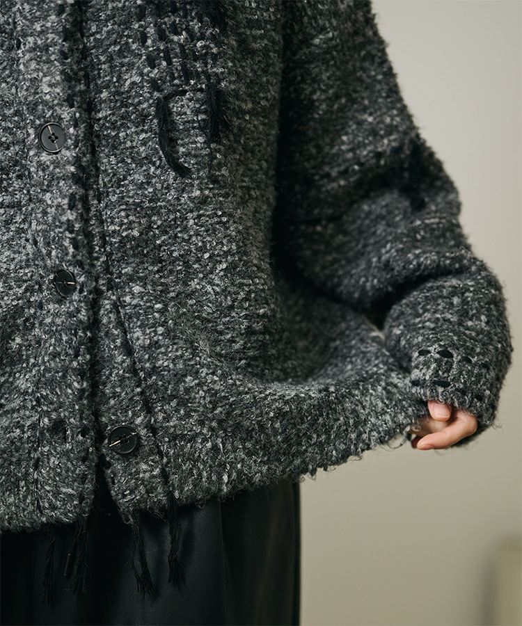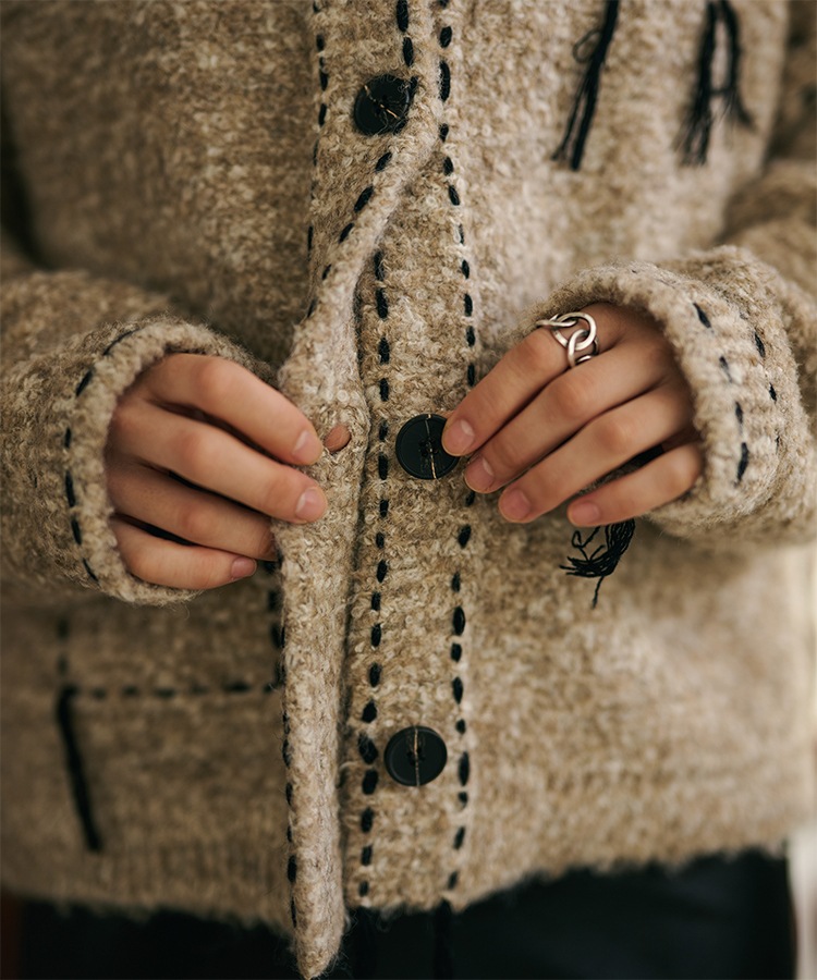 wool cashmere collared knit cardigan