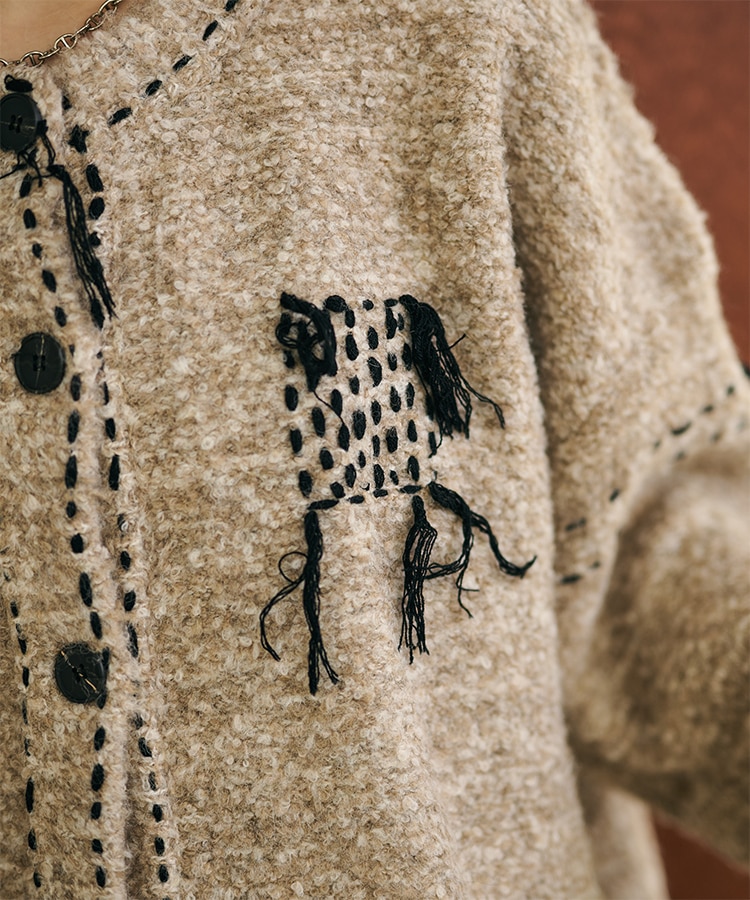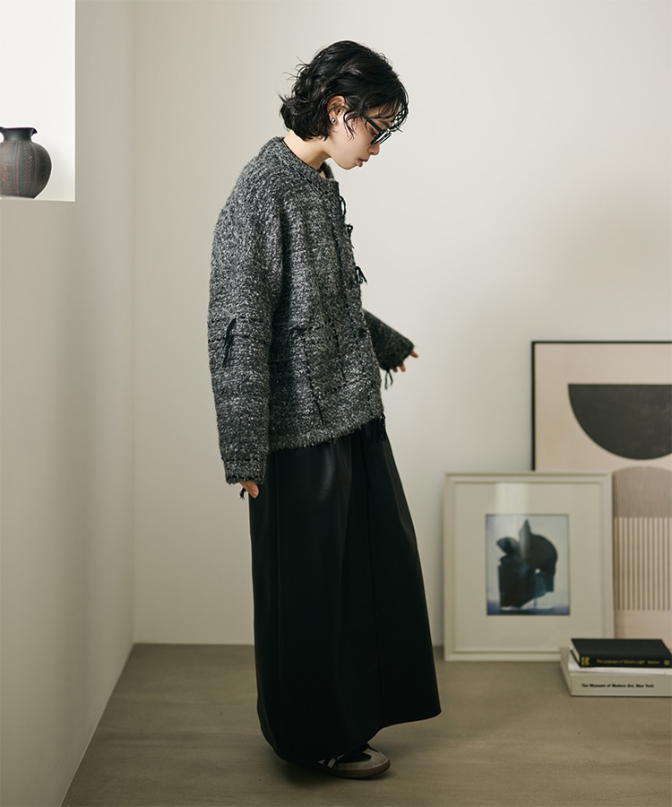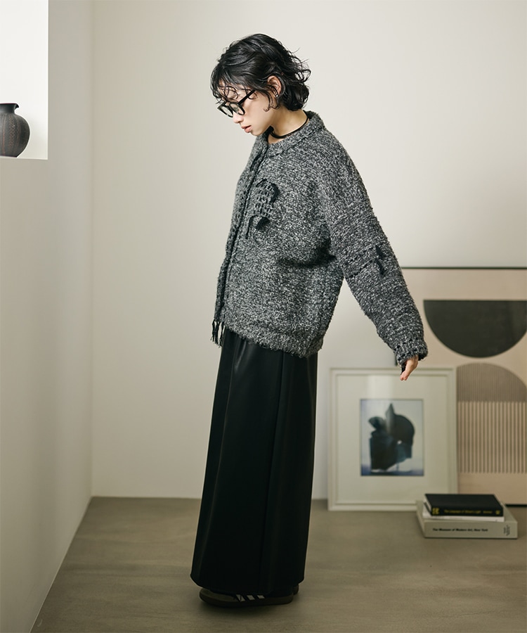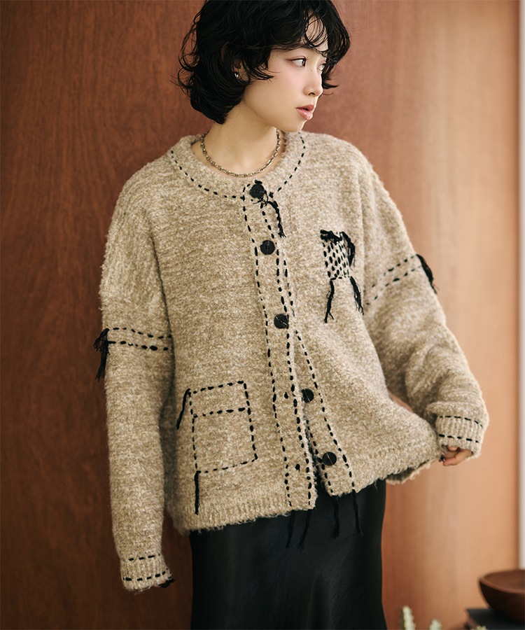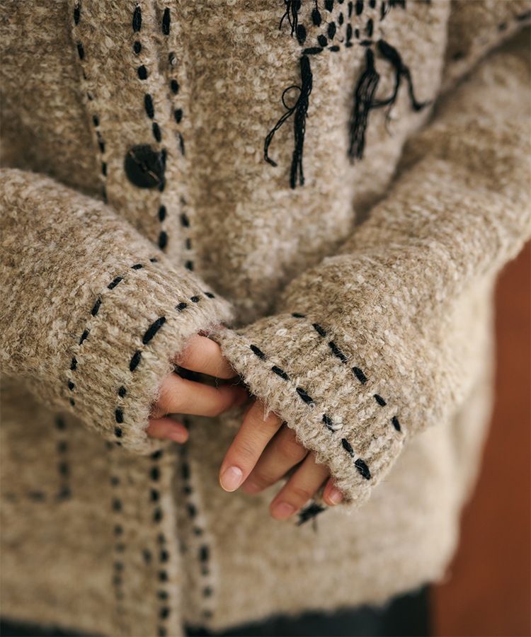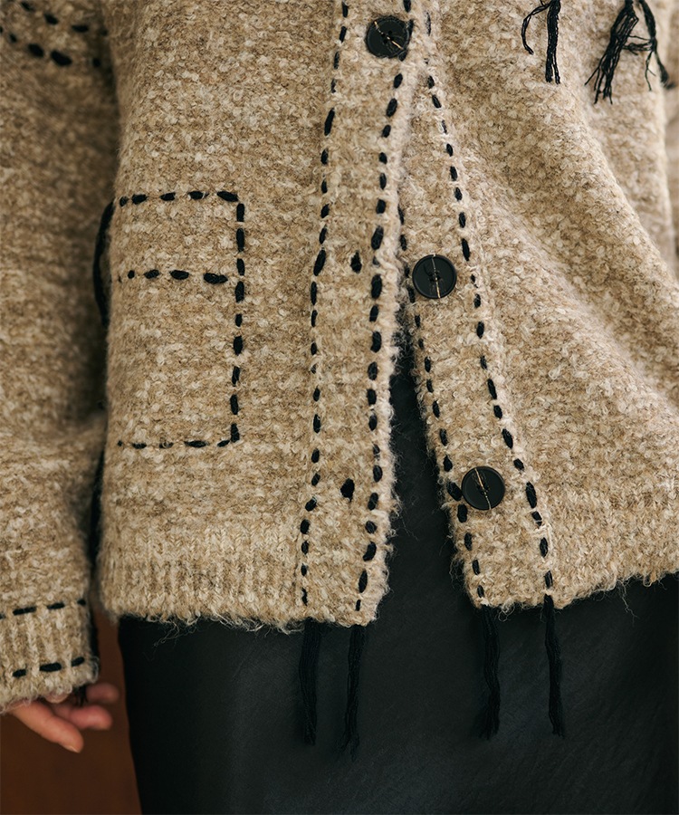 wool cashmere collared knit cardigan