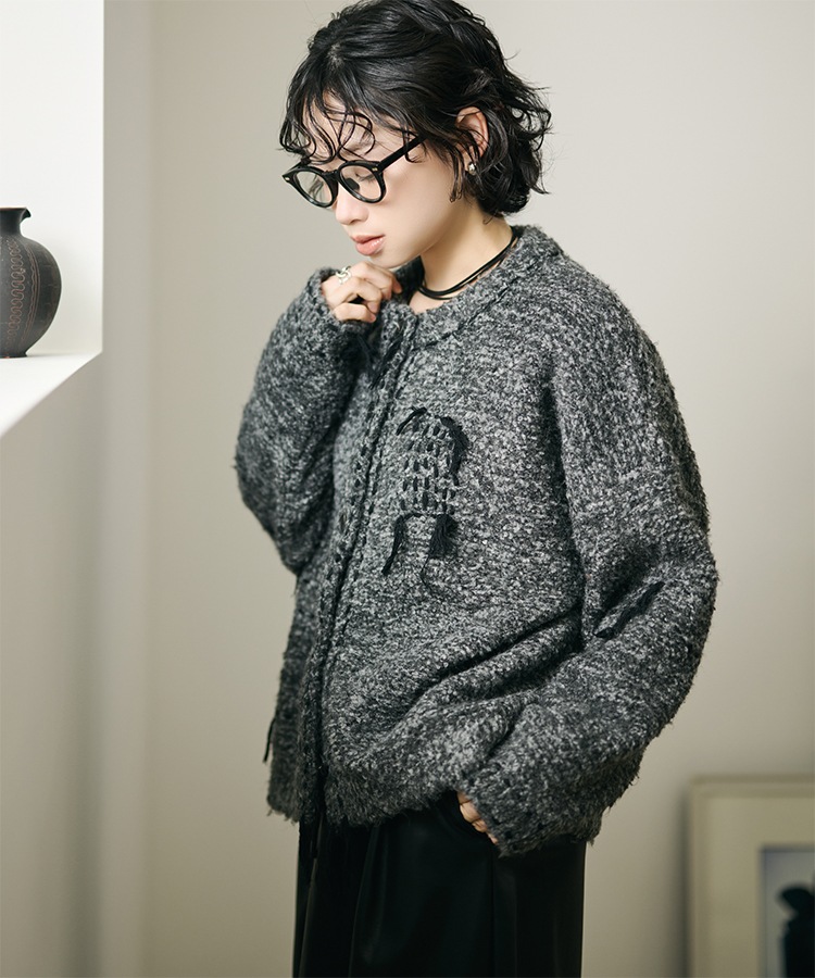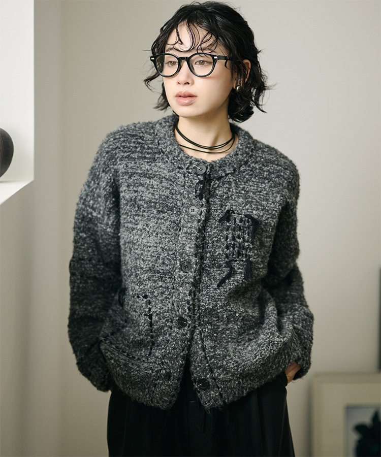flower jacquard lace knit cardigan