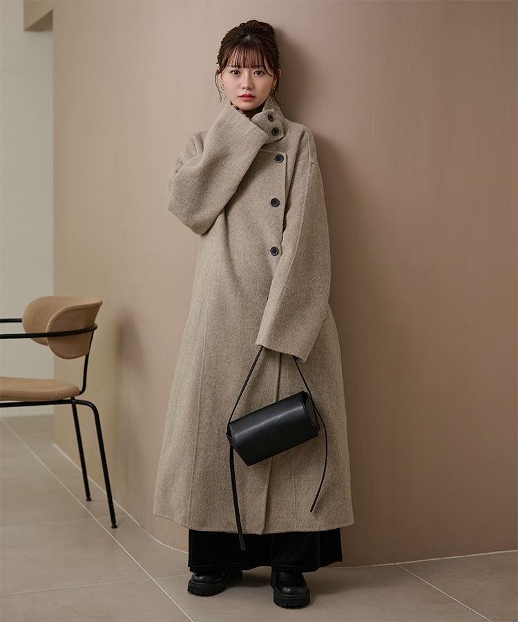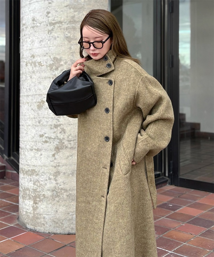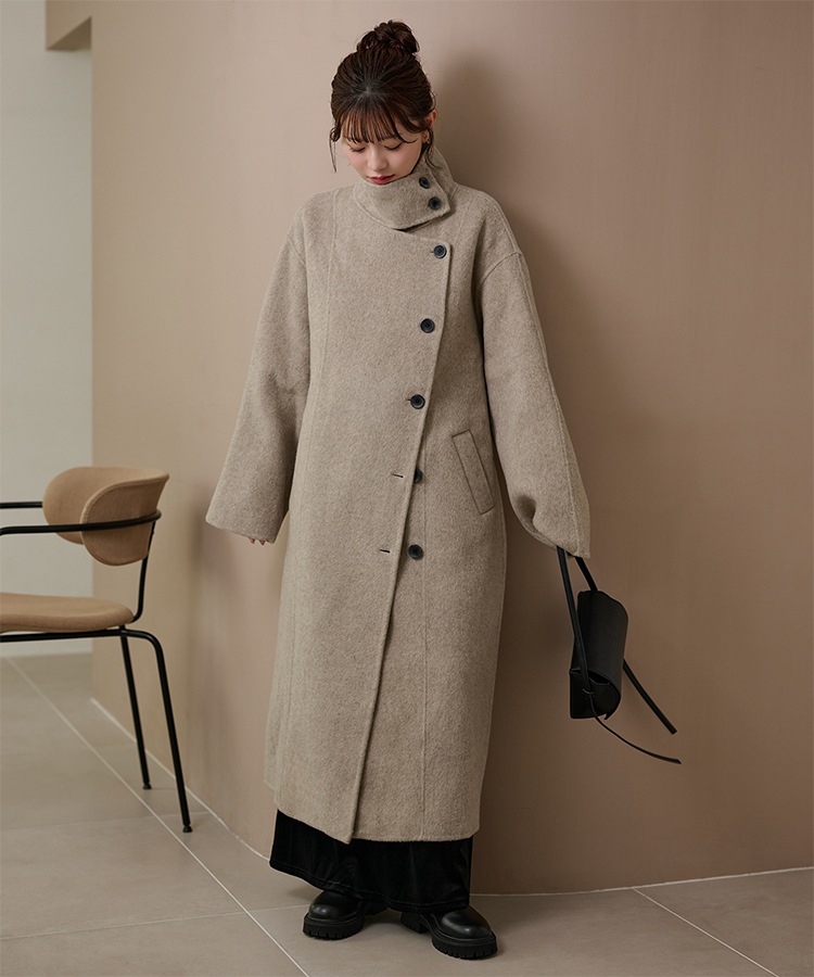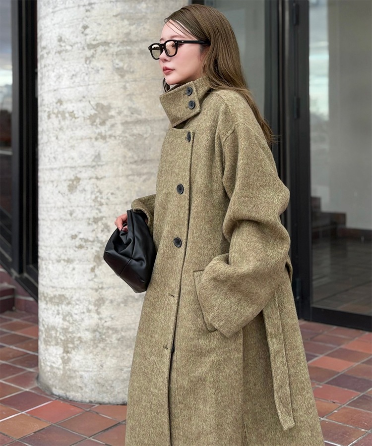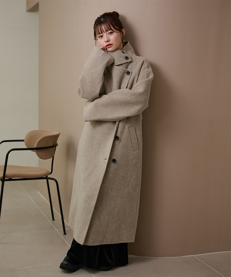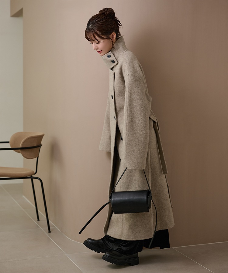wool boa stand collar middle coat