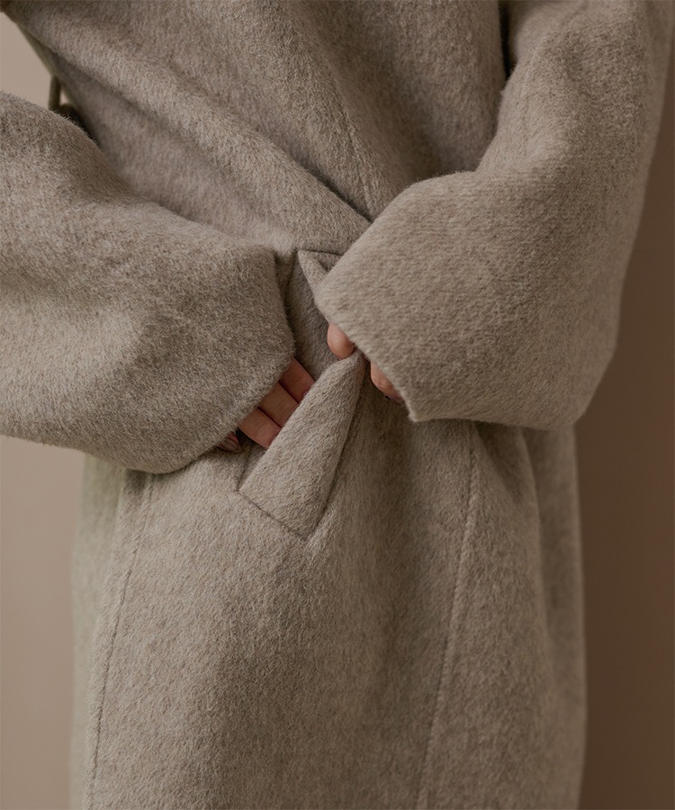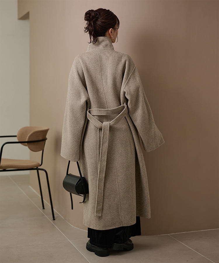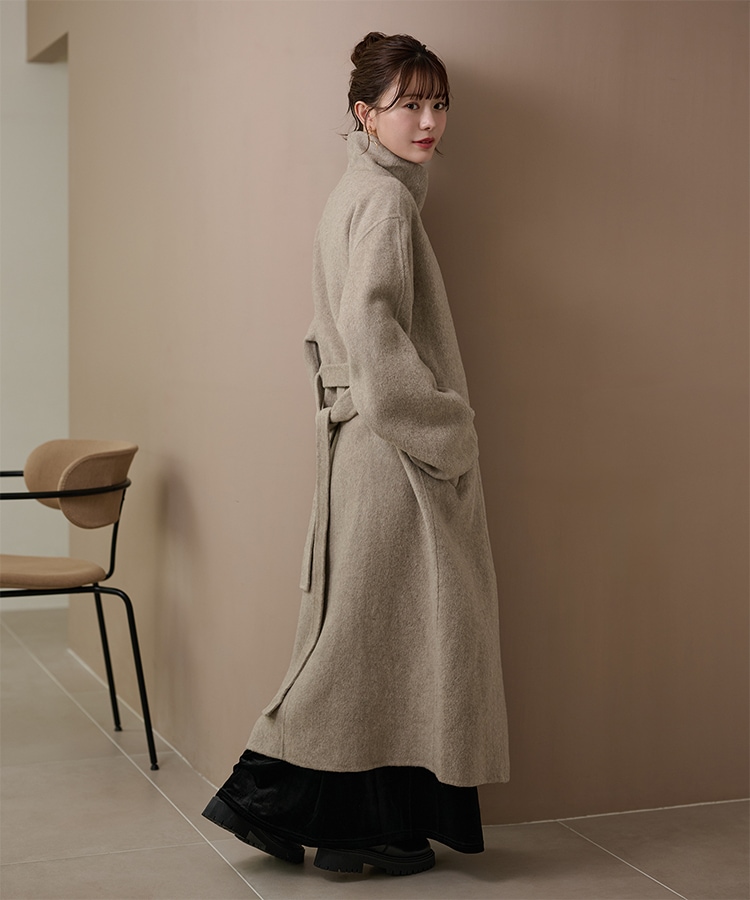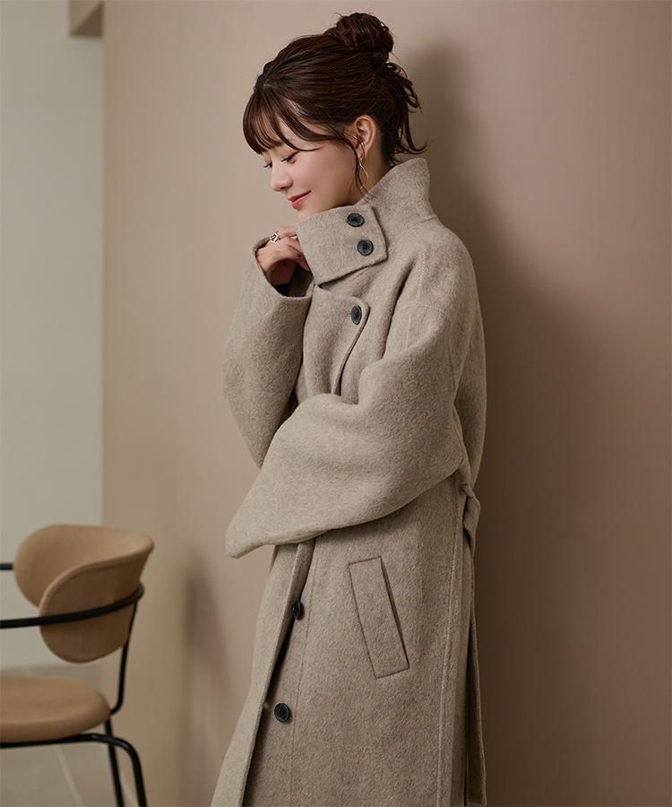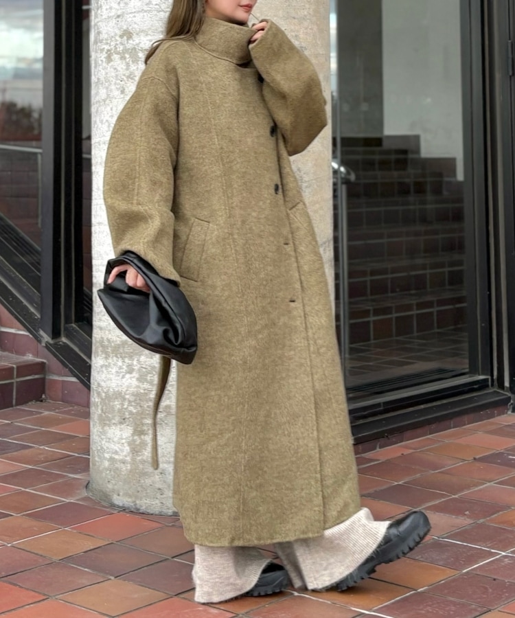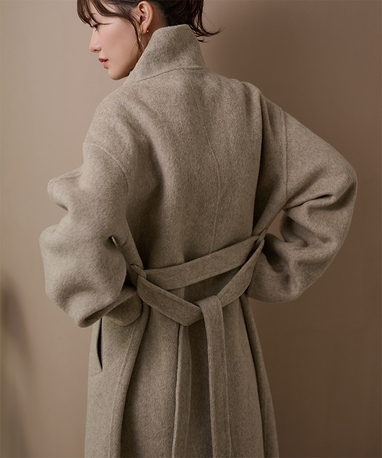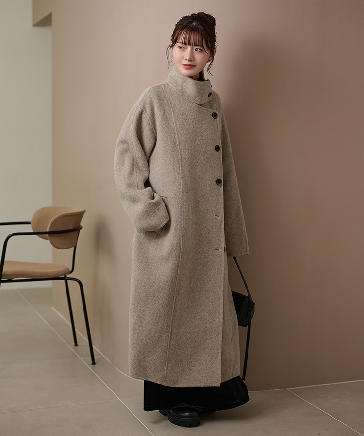 wool boa stand collar middle coat