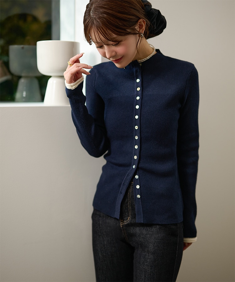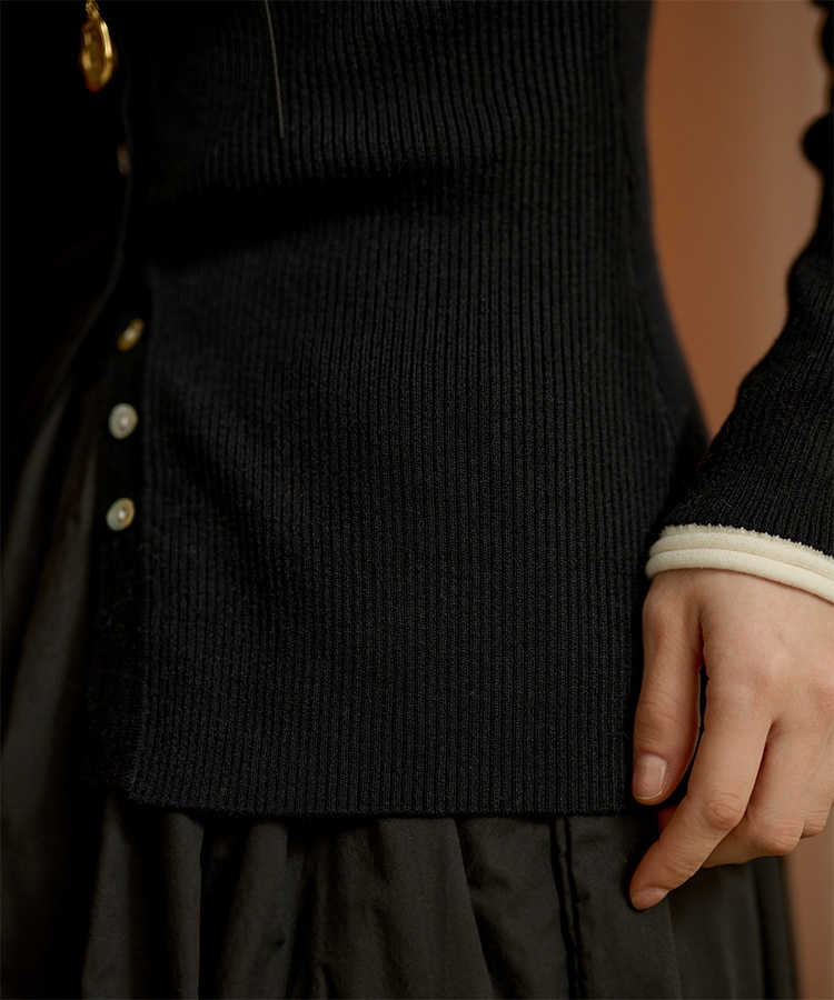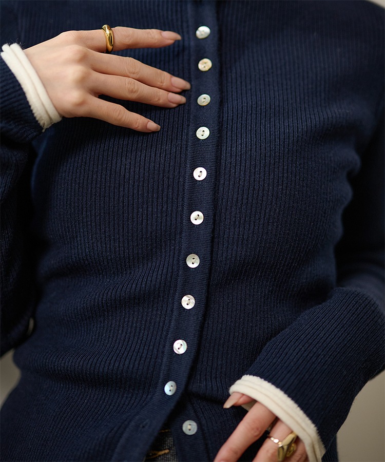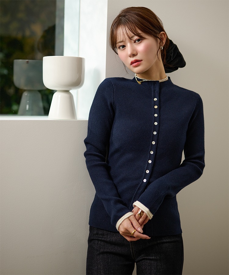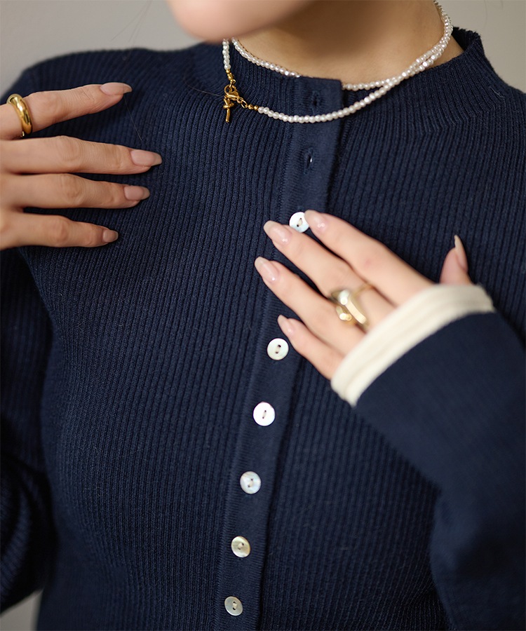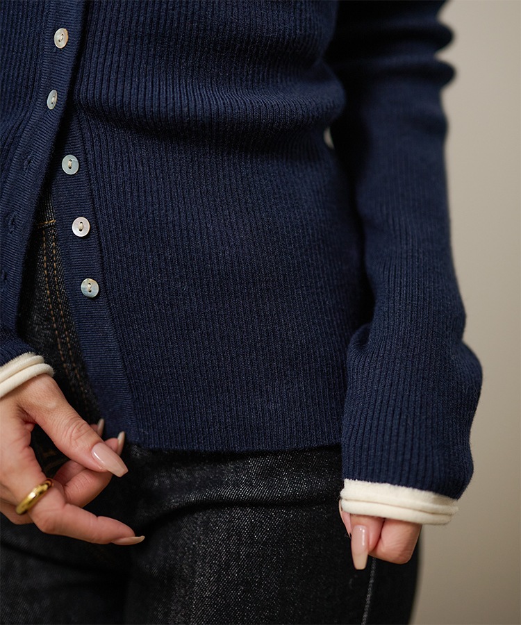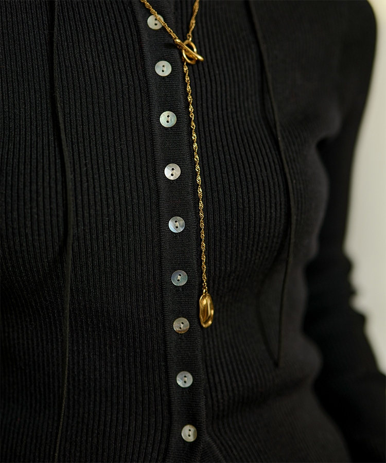 wave buttton collared rib knit cardigan