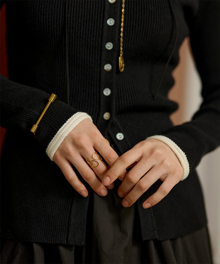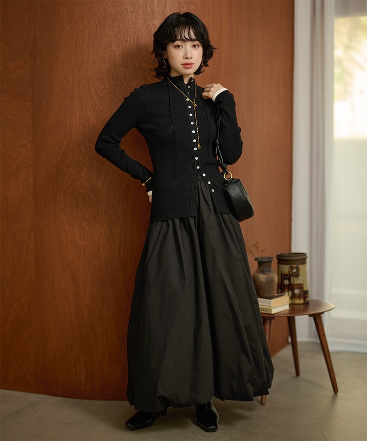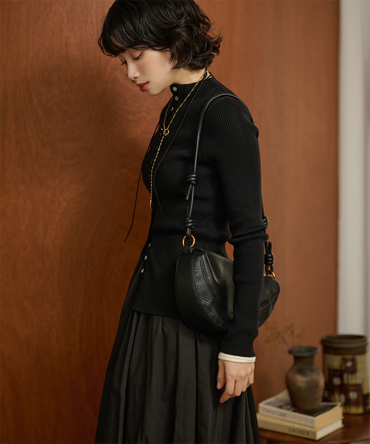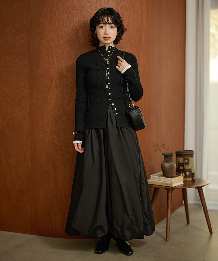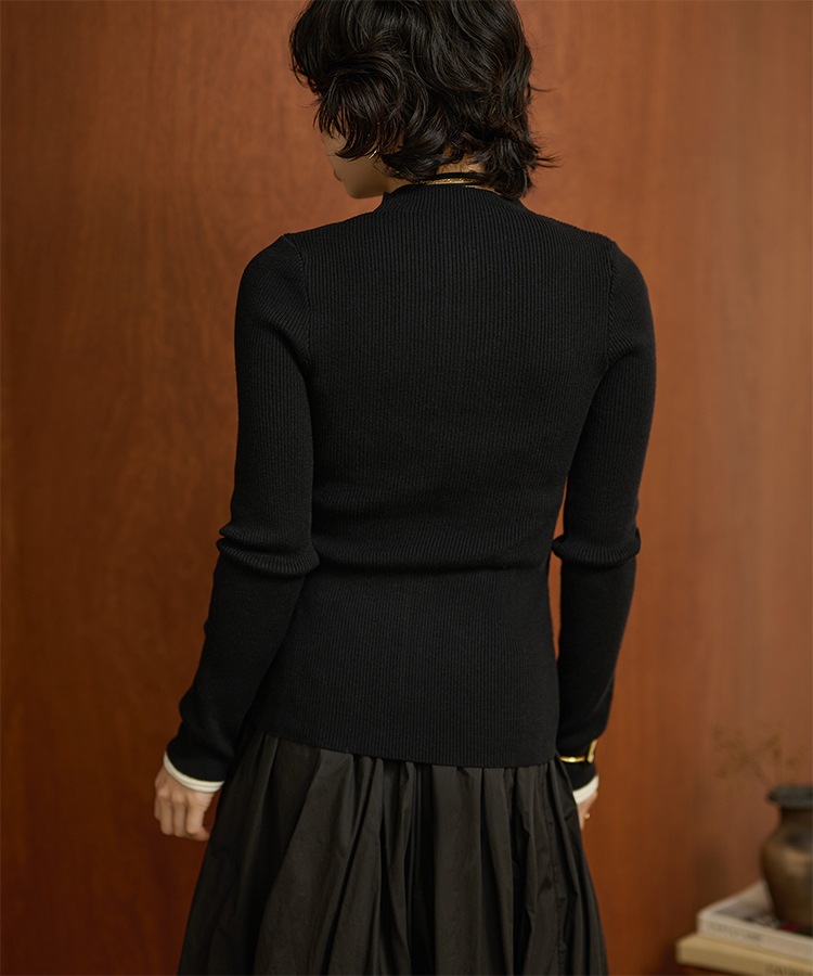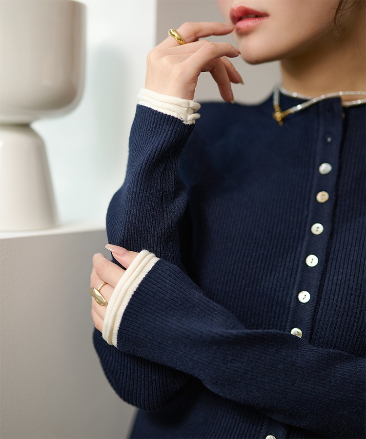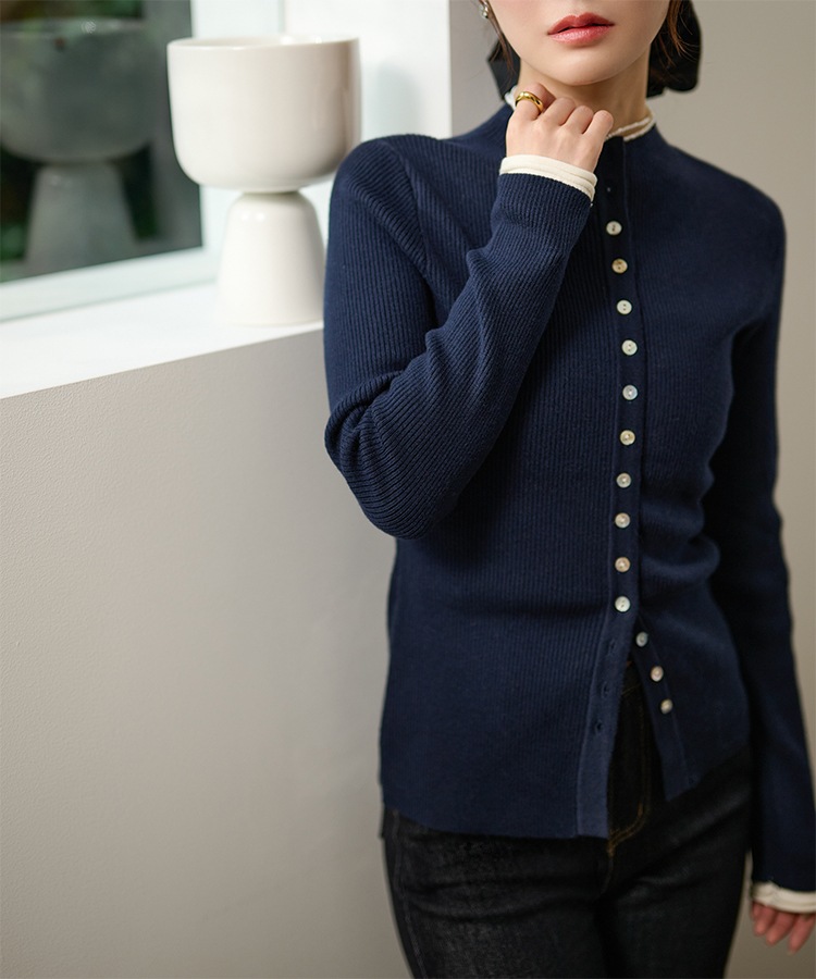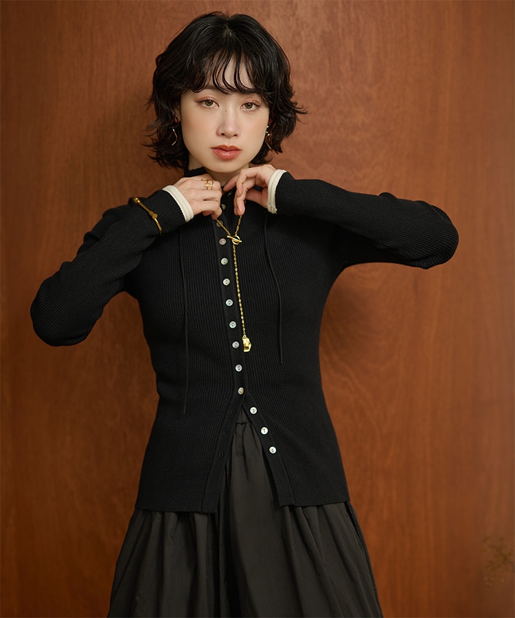 wave buttton collared rib knit cardigan