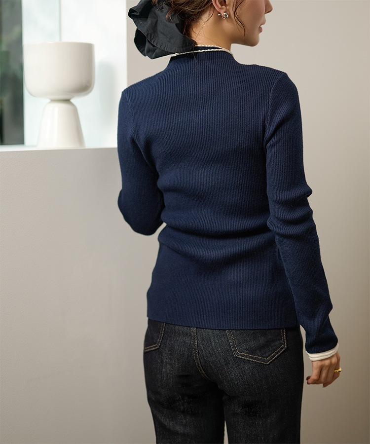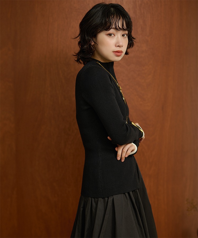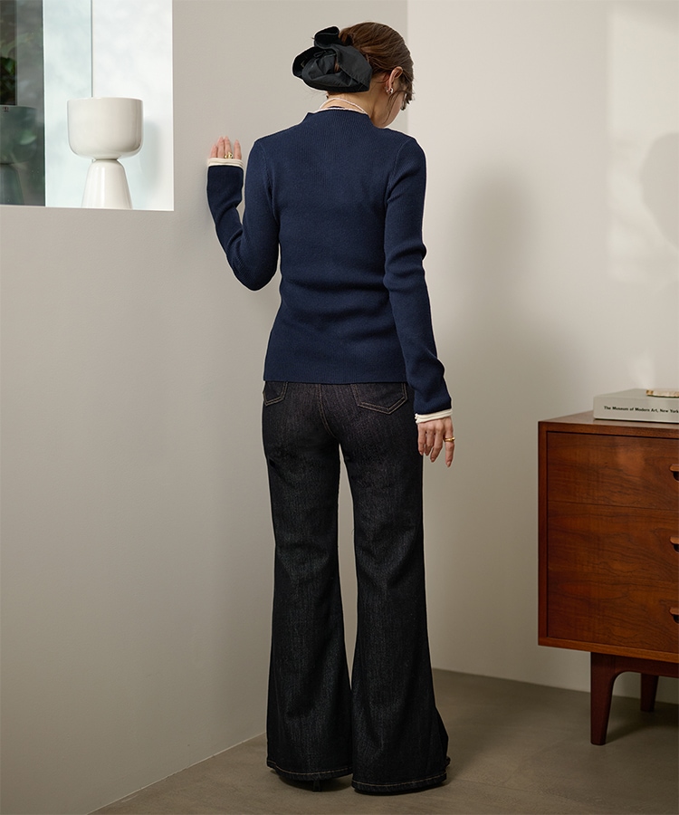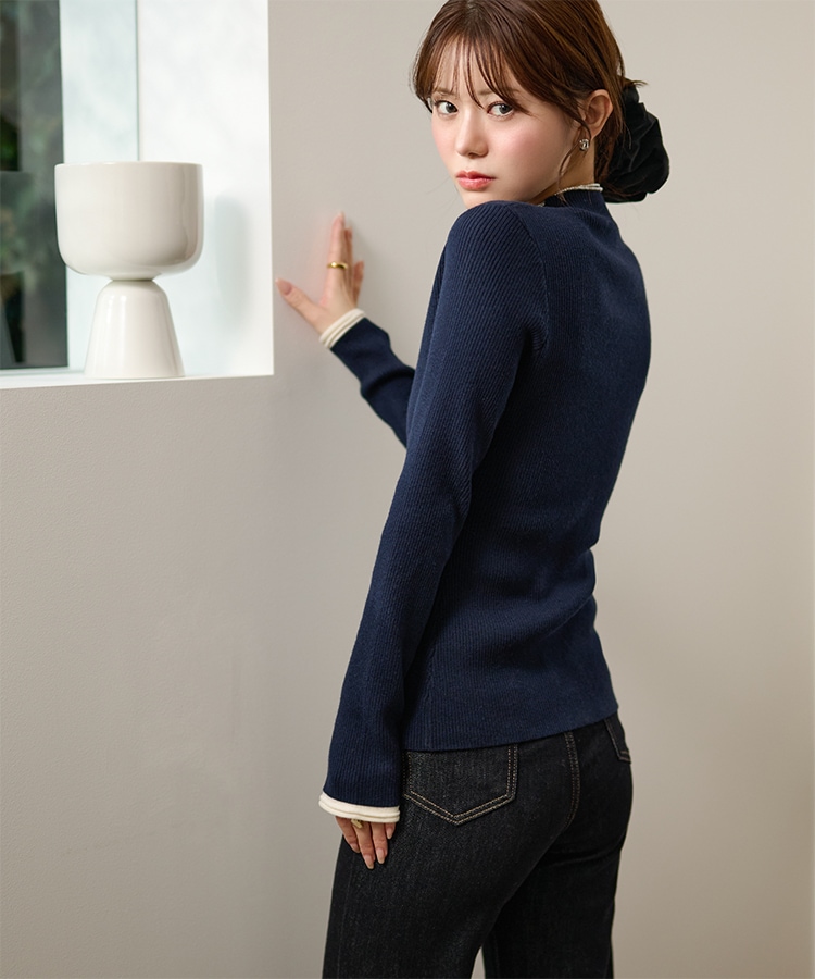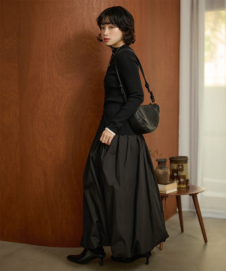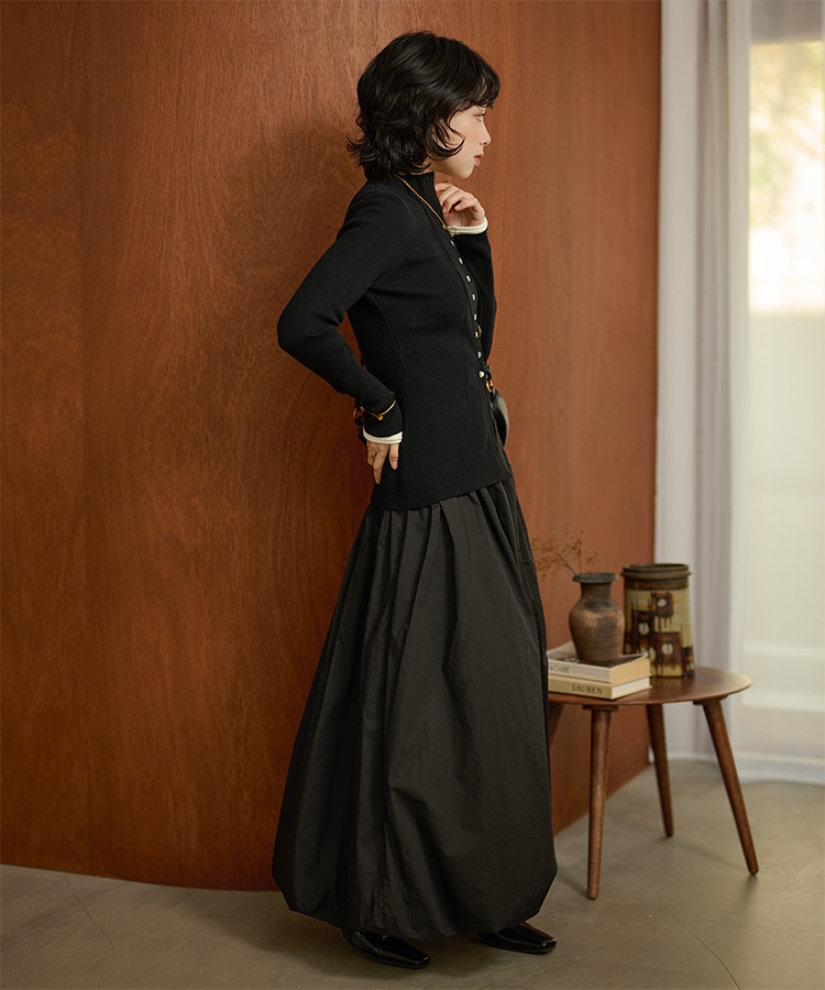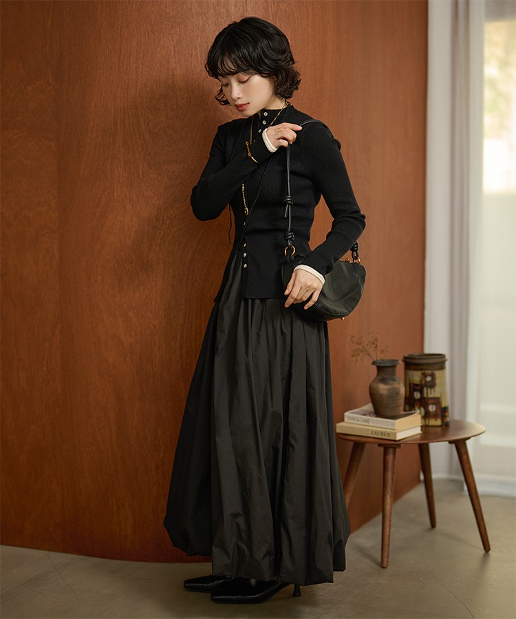 wave buttton collared rib knit cardigan