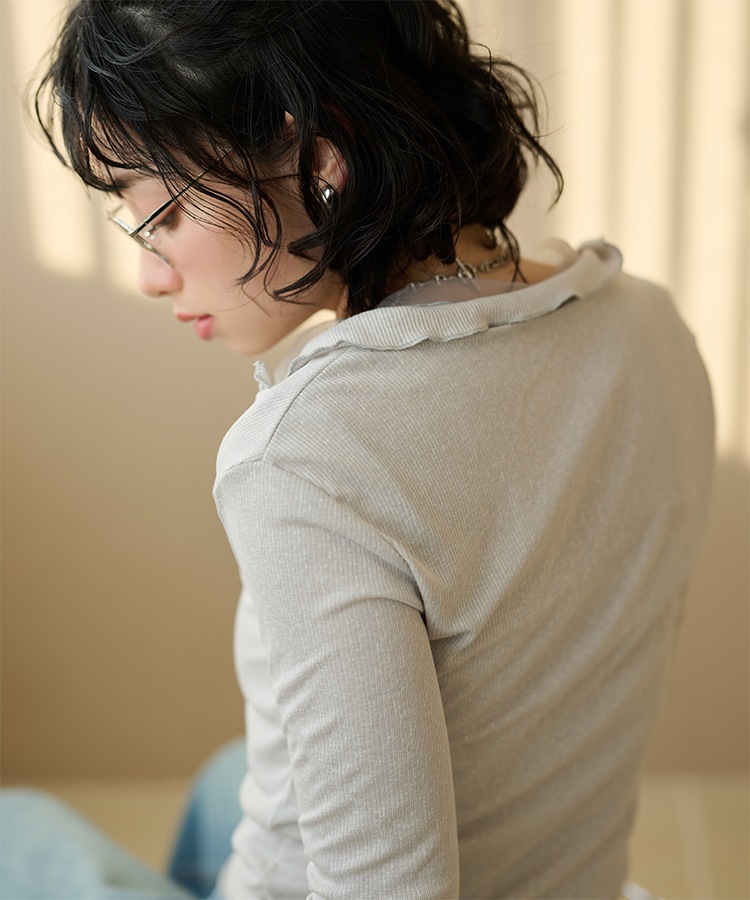 cotton blend square collar tops