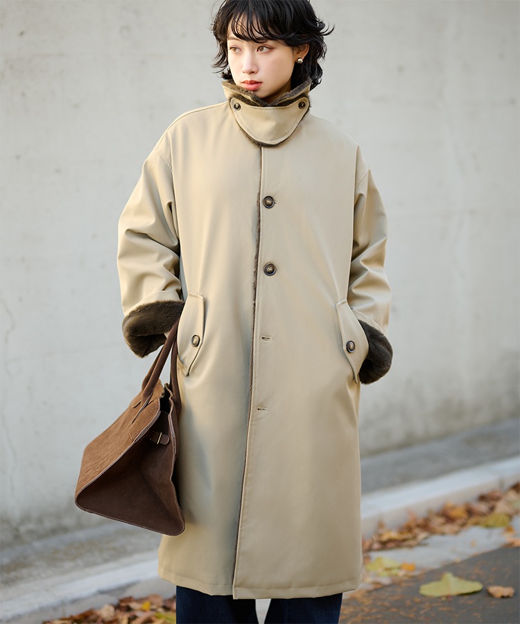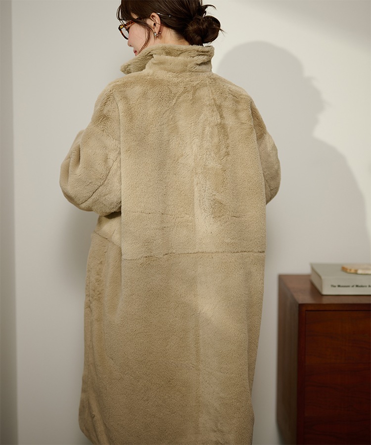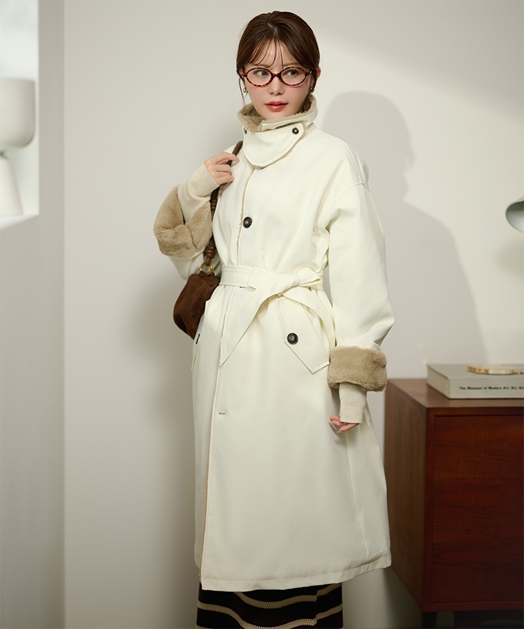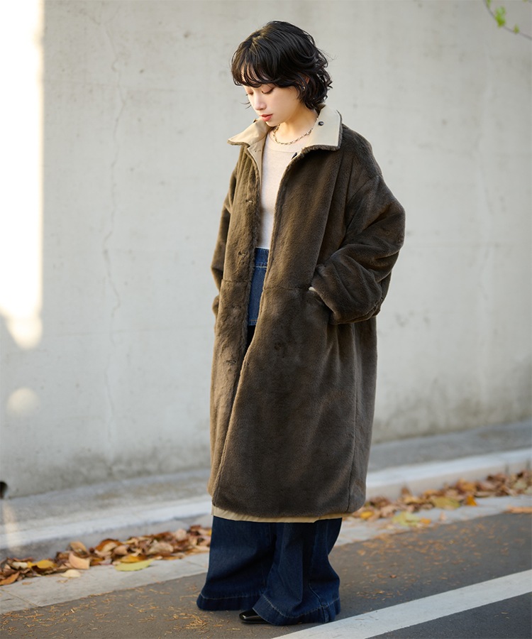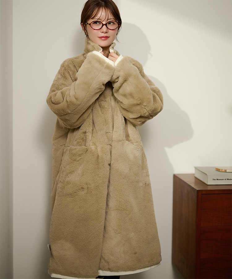 stand collar reversible boa middle coat