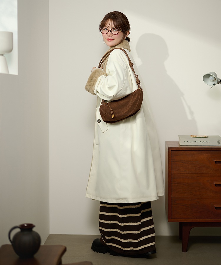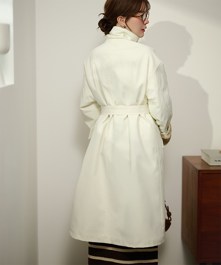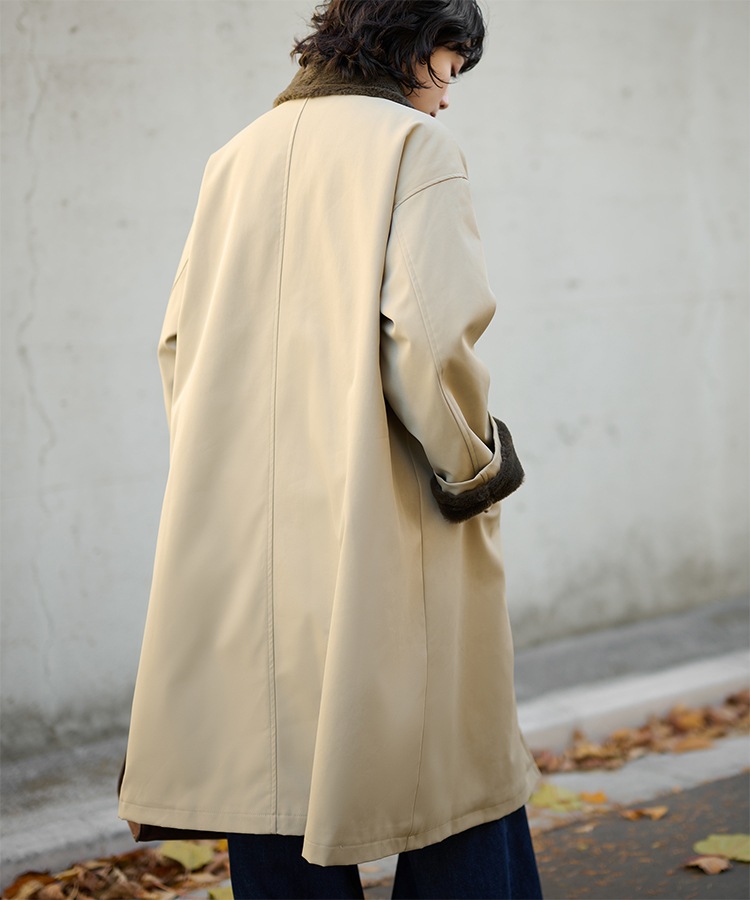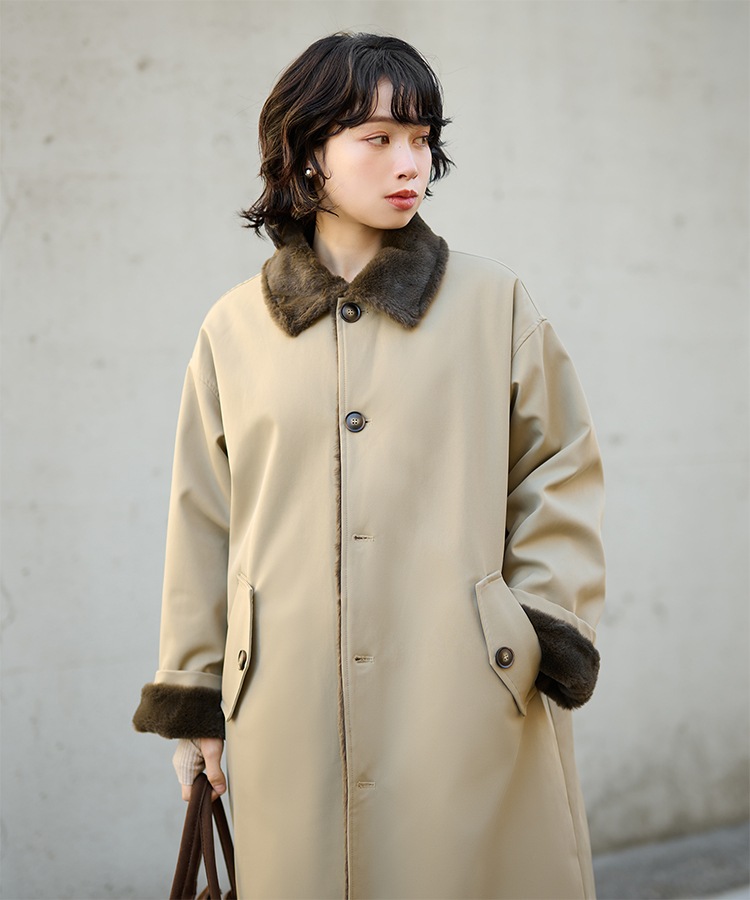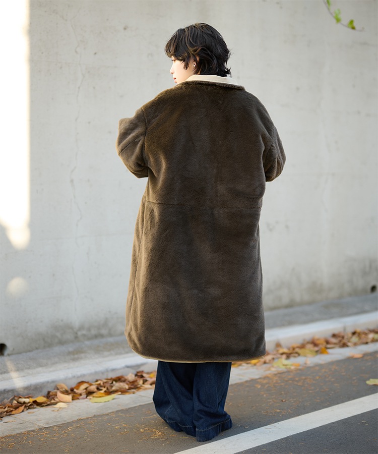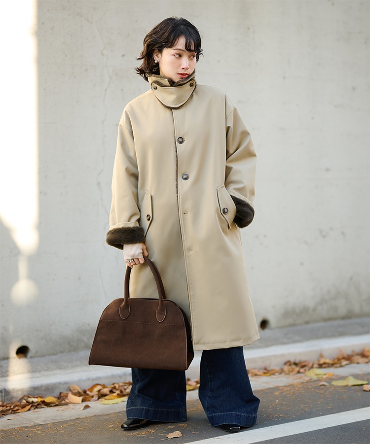stand collar reversible boa middle coat