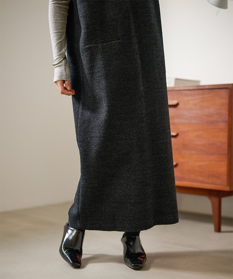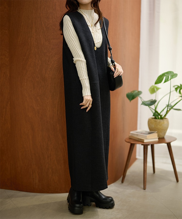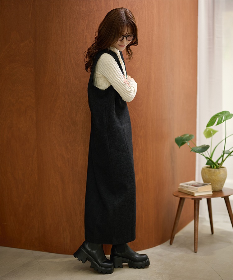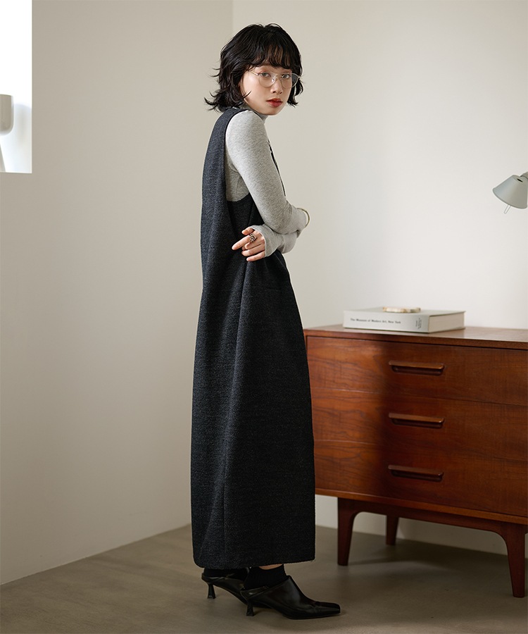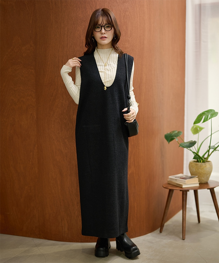 2way open cut waffle long dress