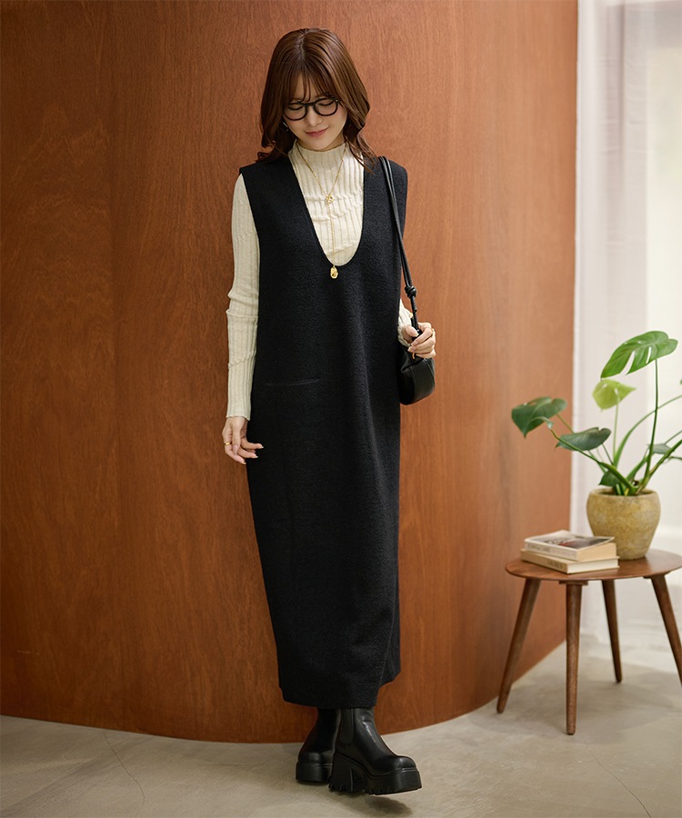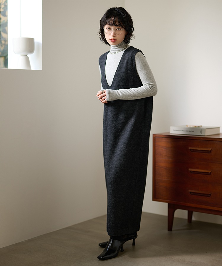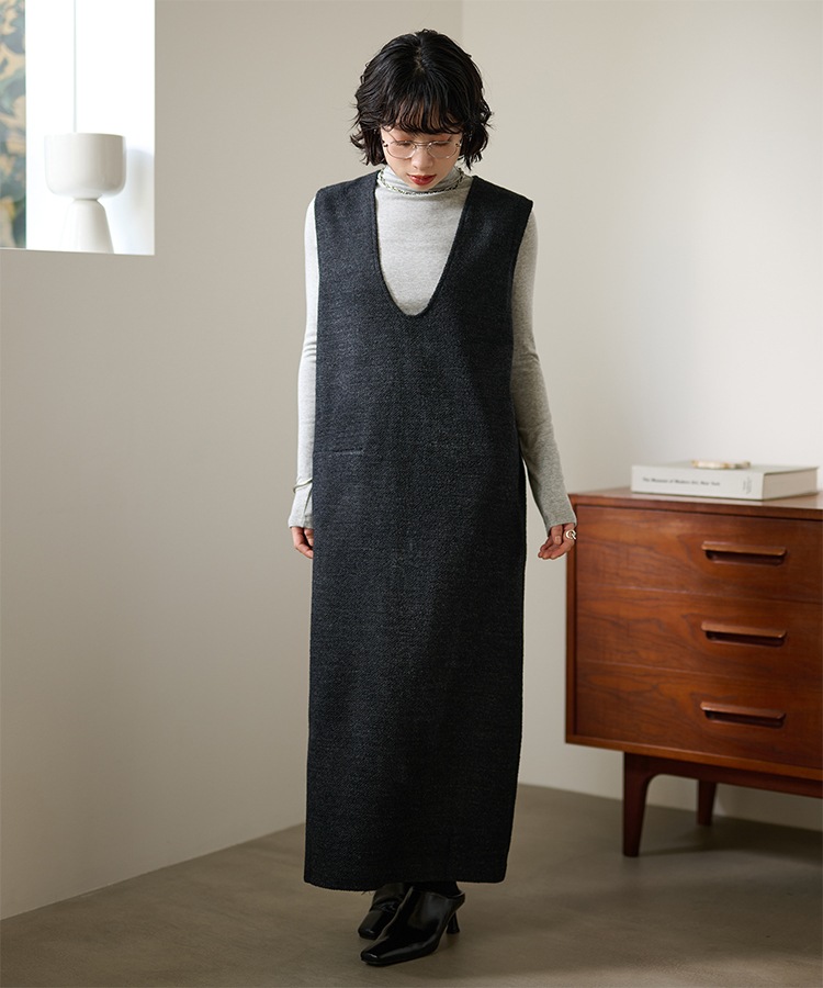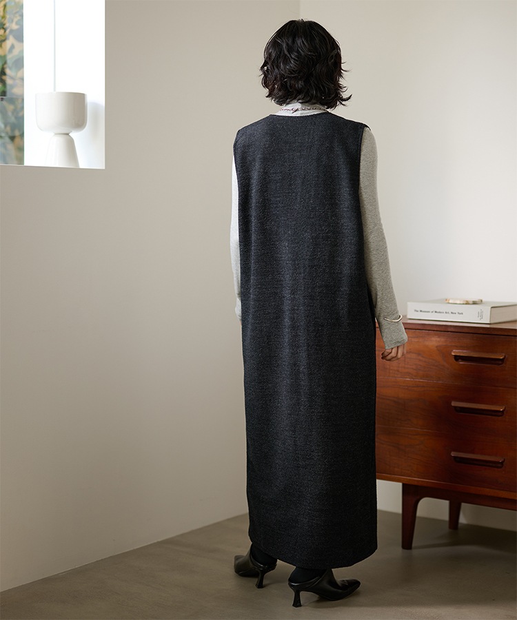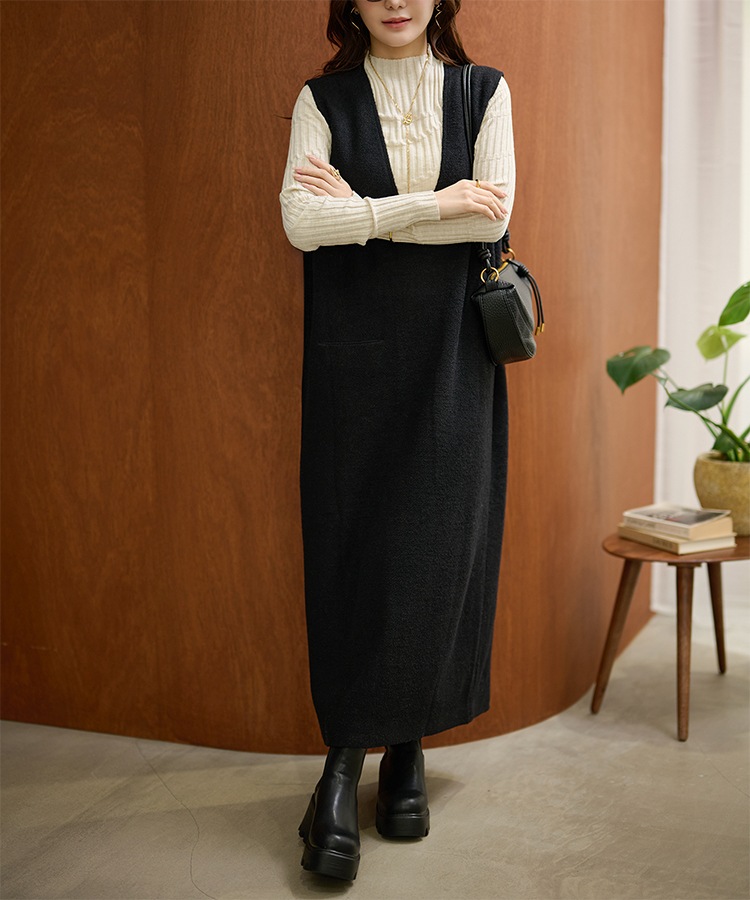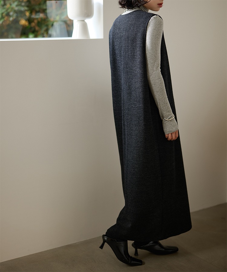 henry neck layered long knit dress