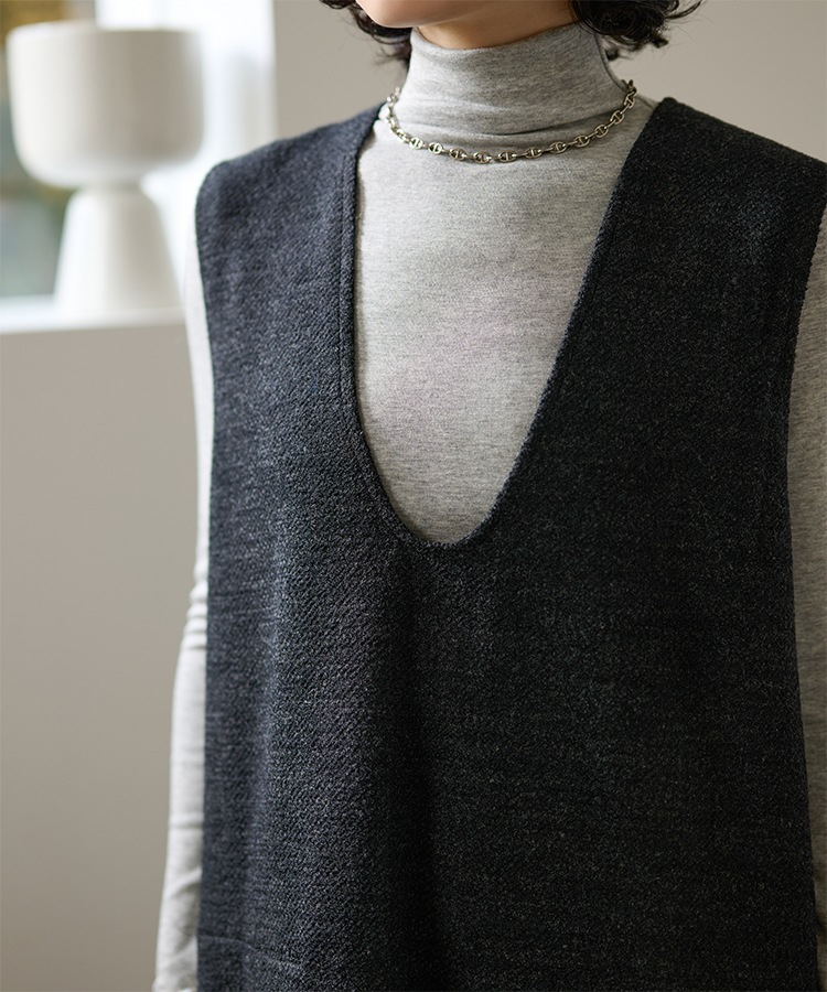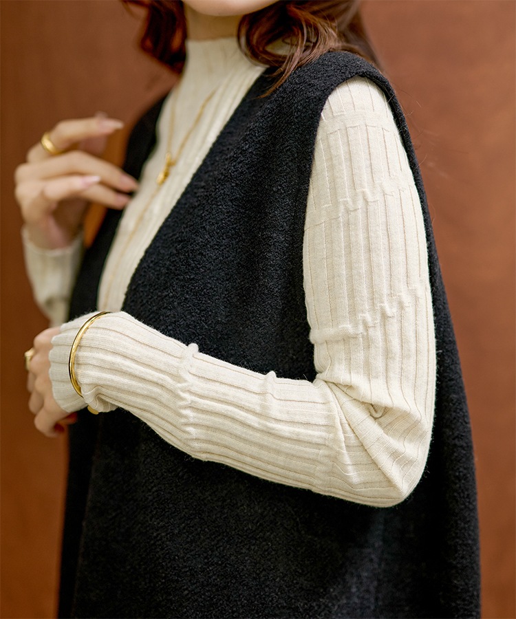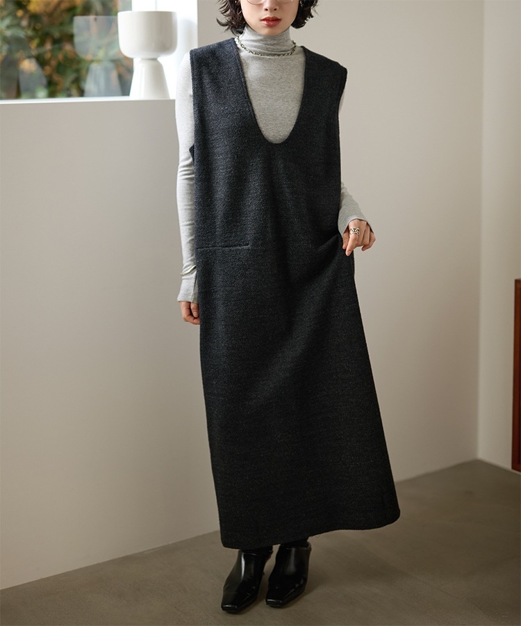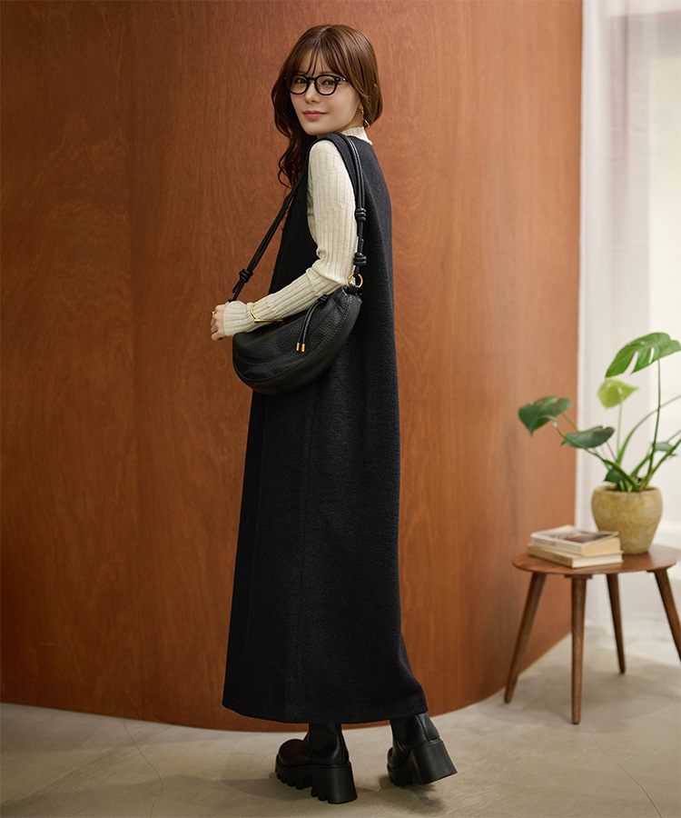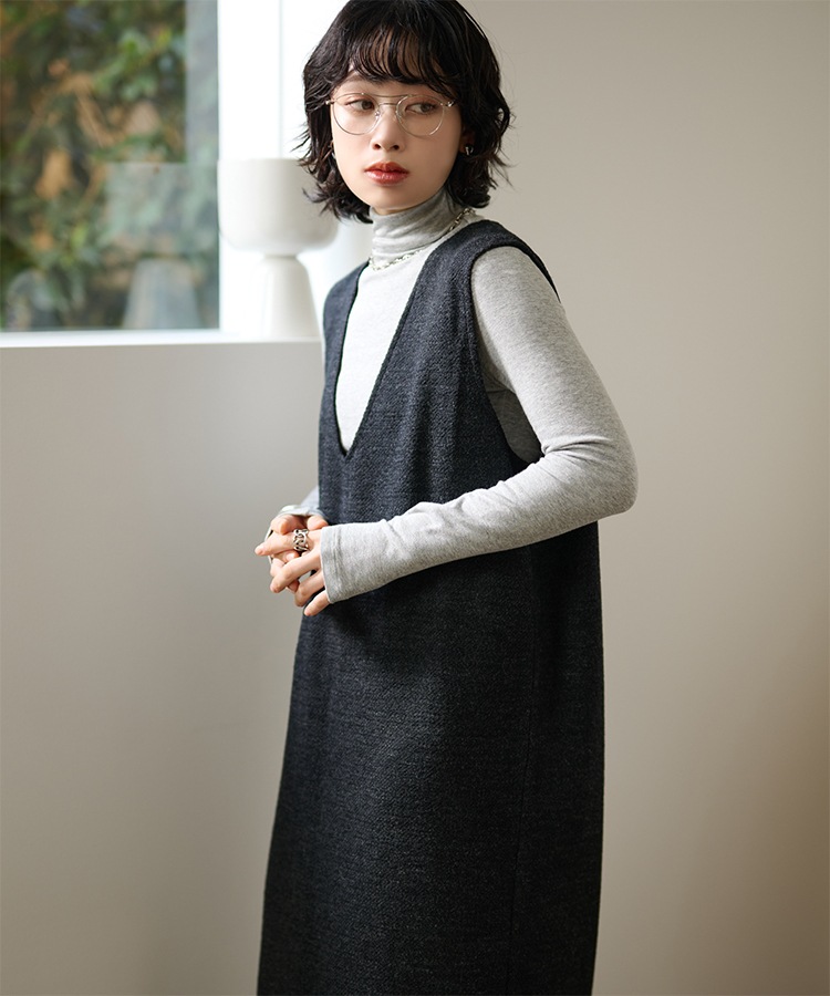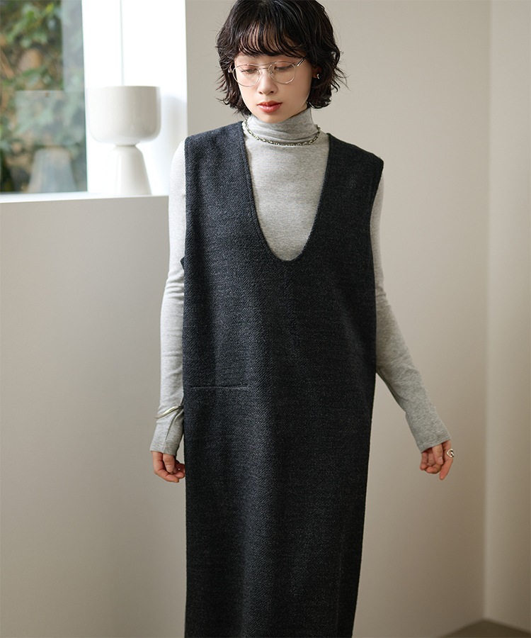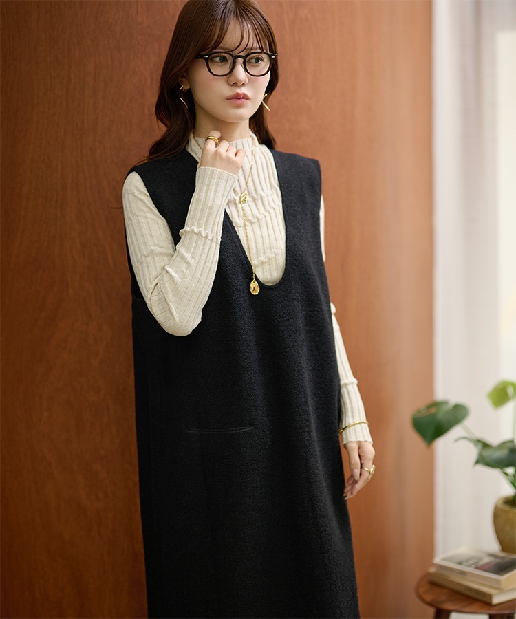 henry neck layered long knit dress