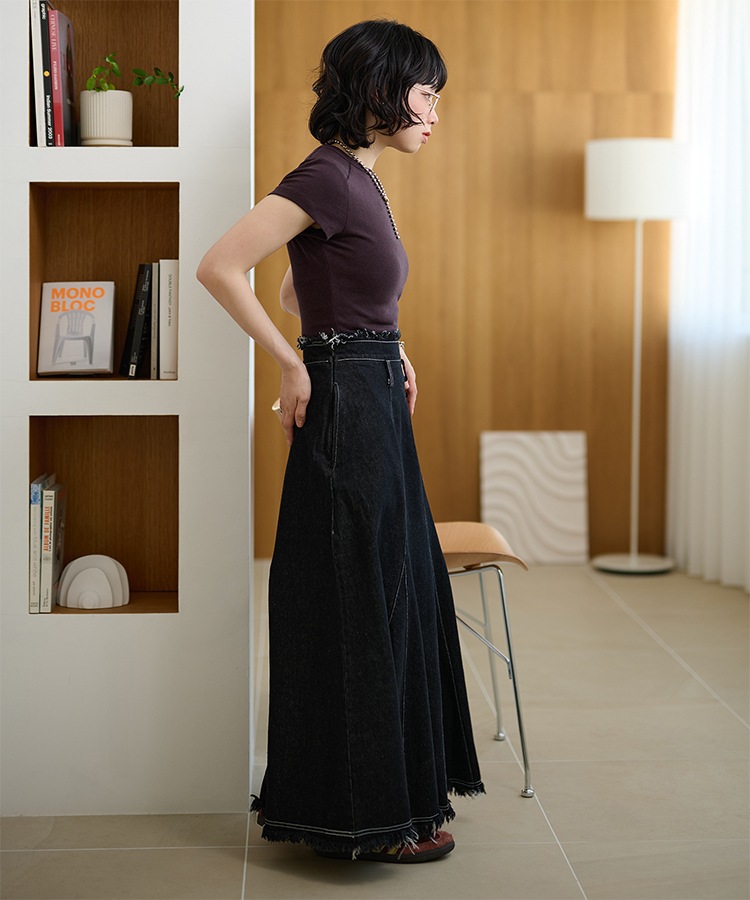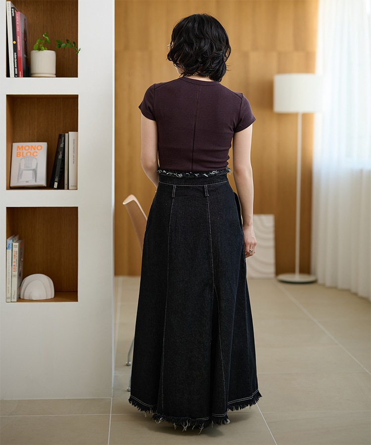 different material patchwork long skirt