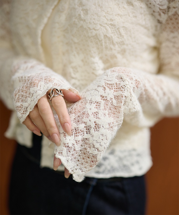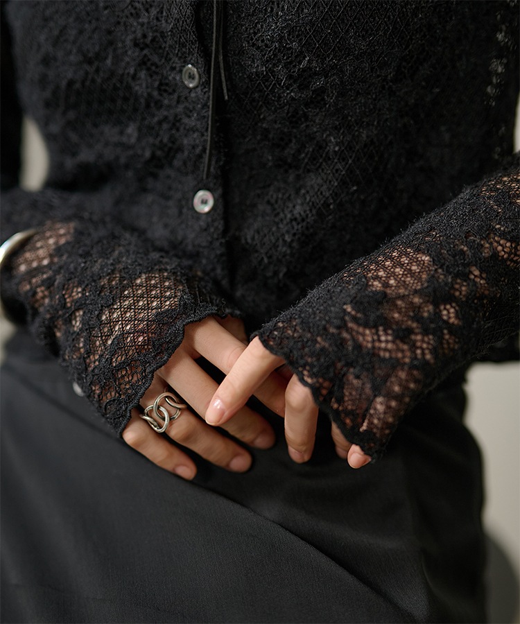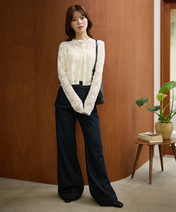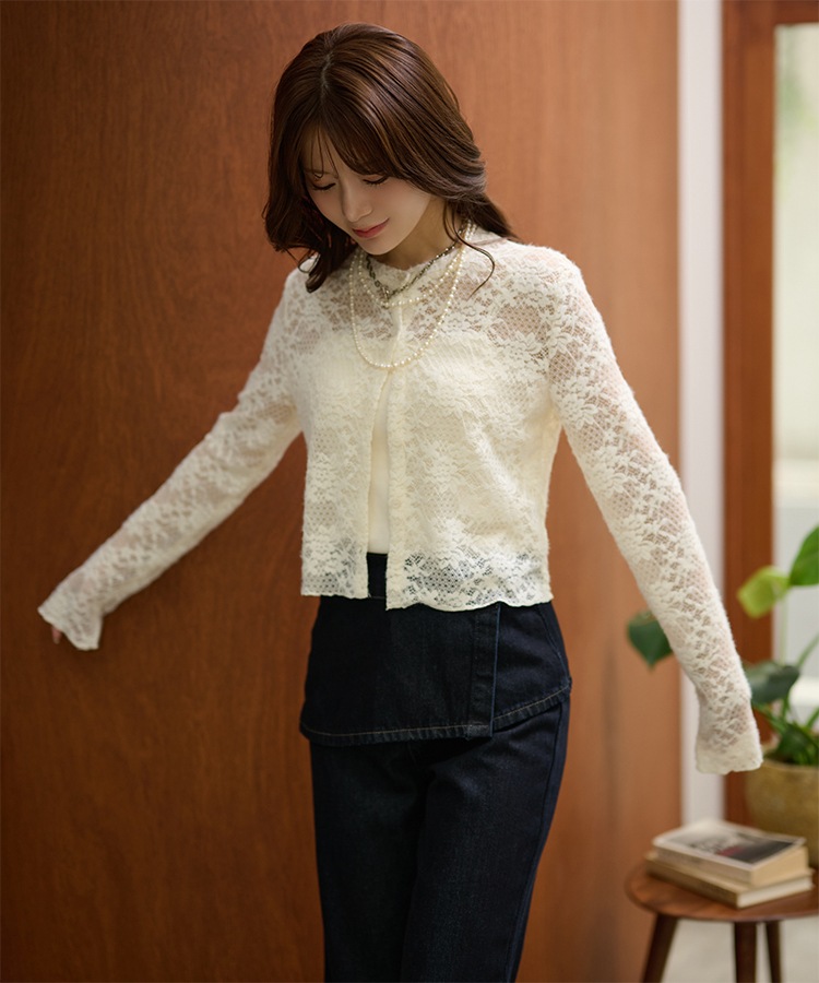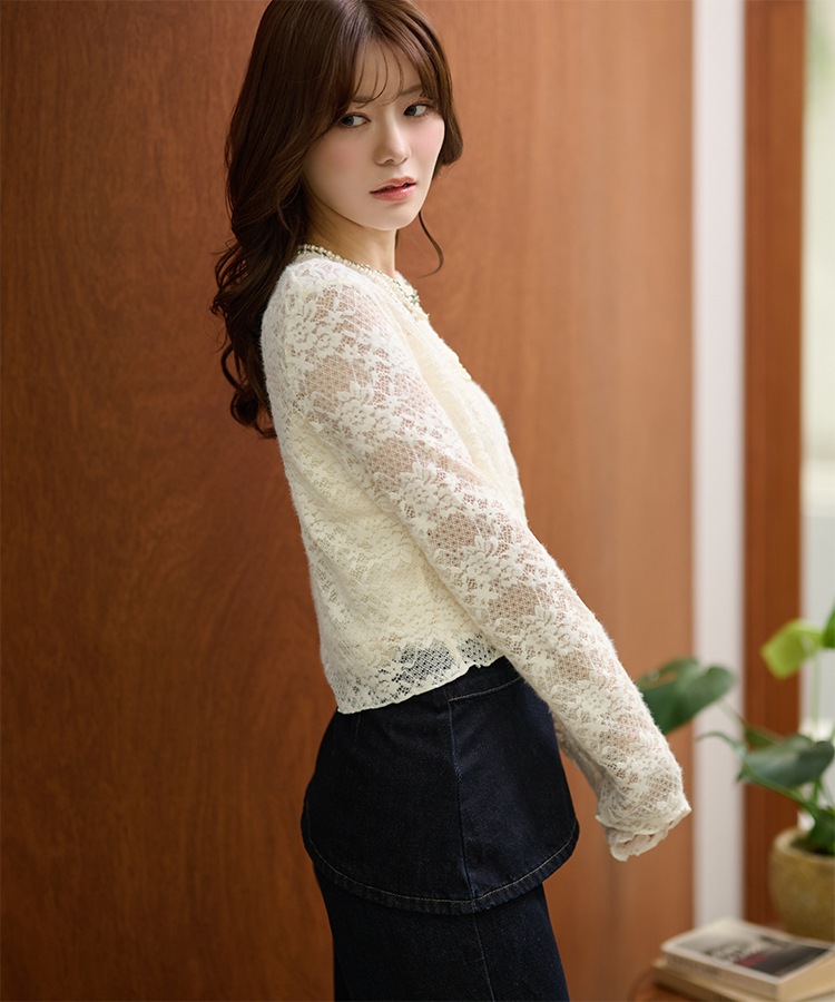 wave buttton collared rib knit cardigan