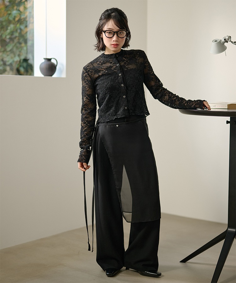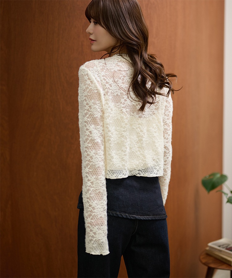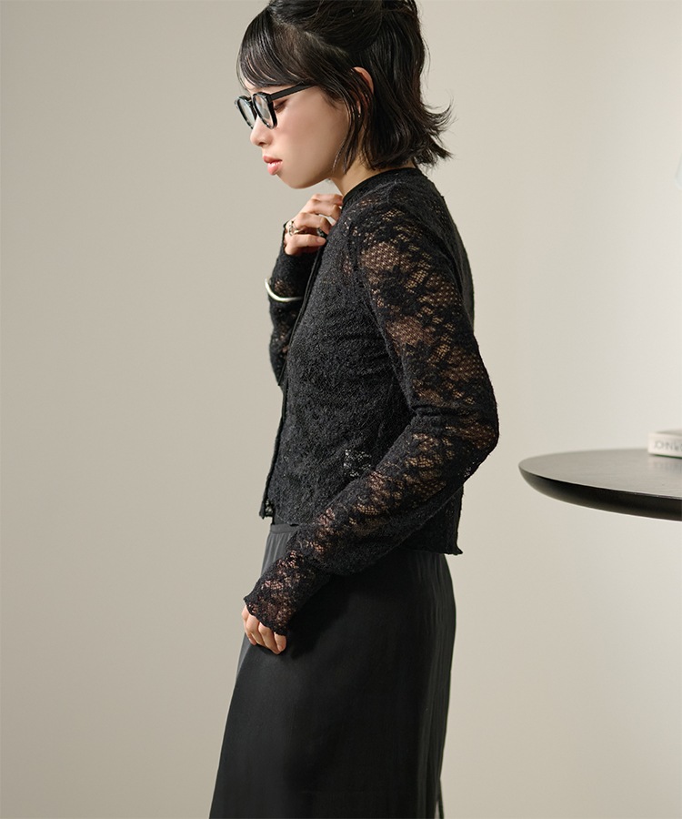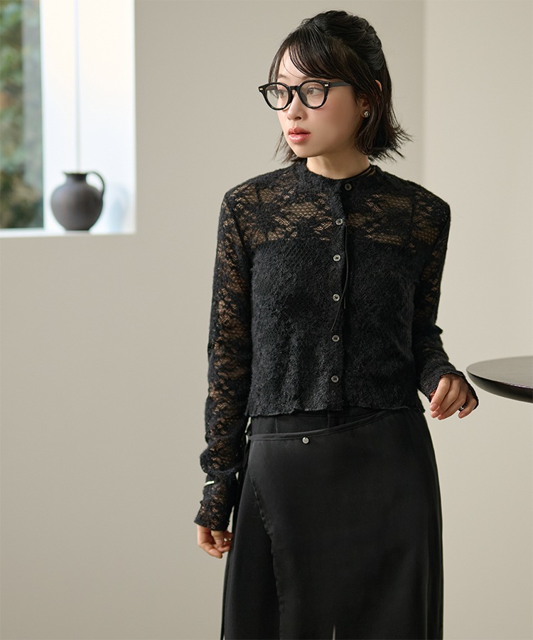 wool blend melange stitch knit cardigan