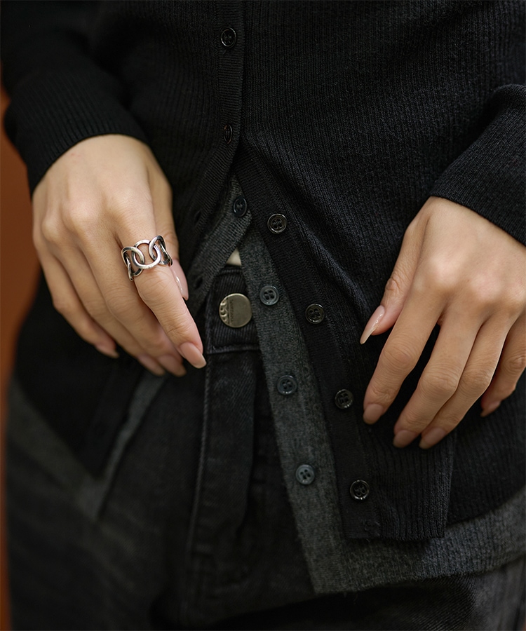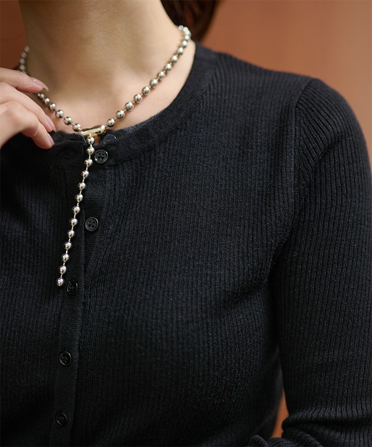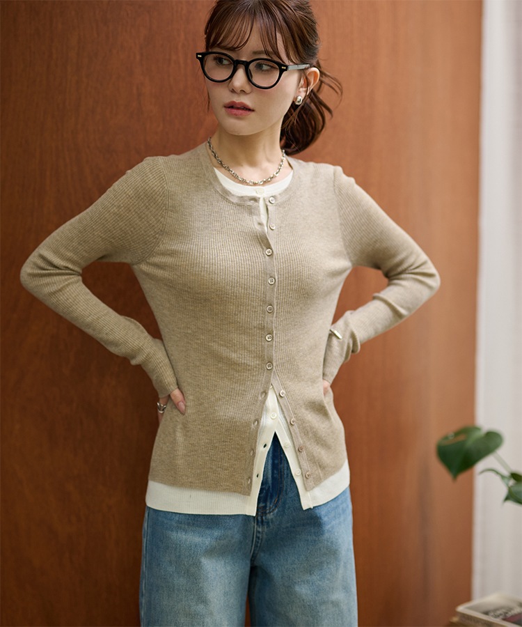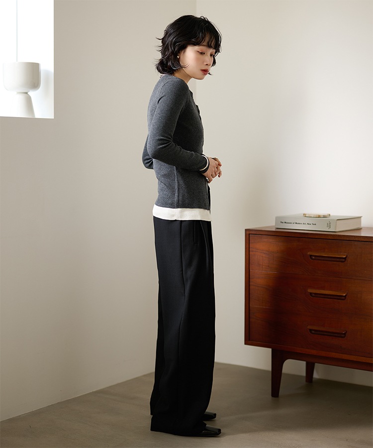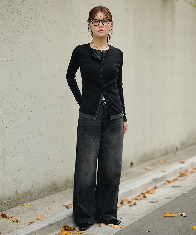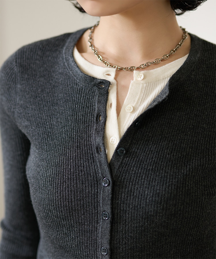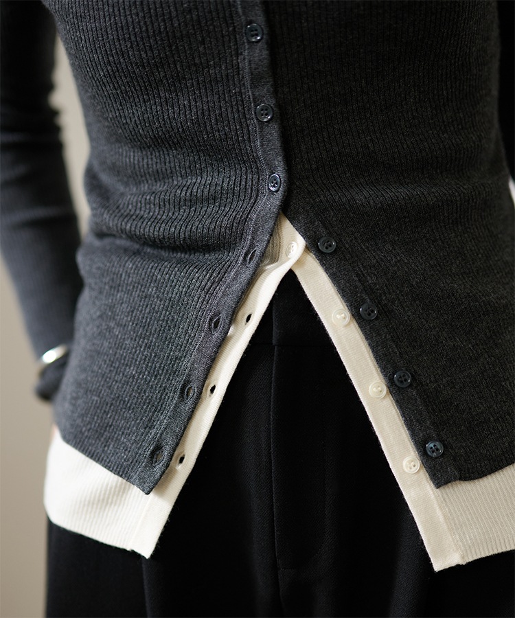 wave buttton collared rib knit cardigan