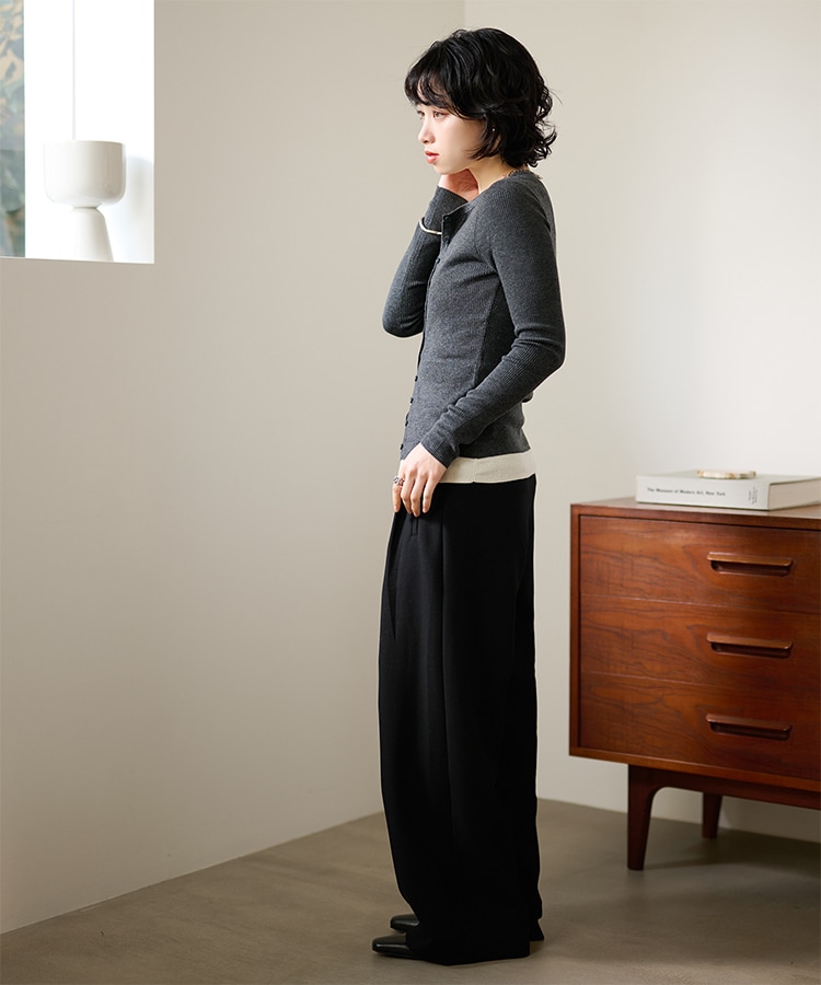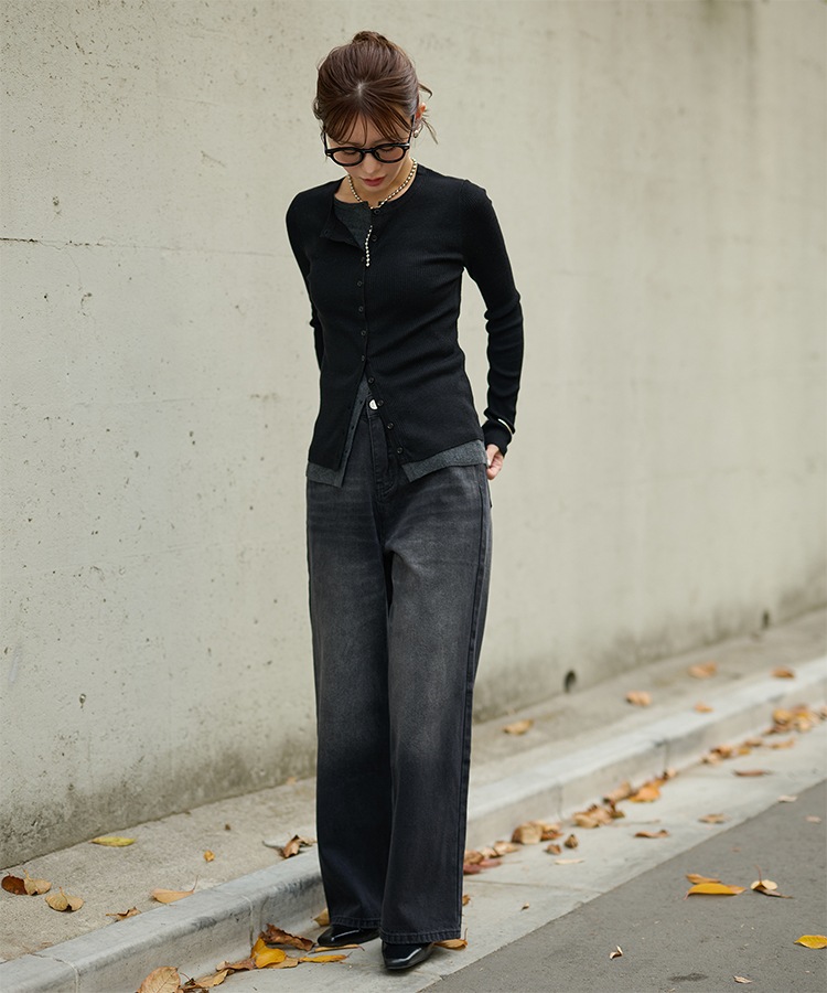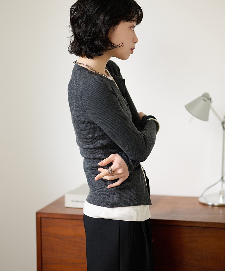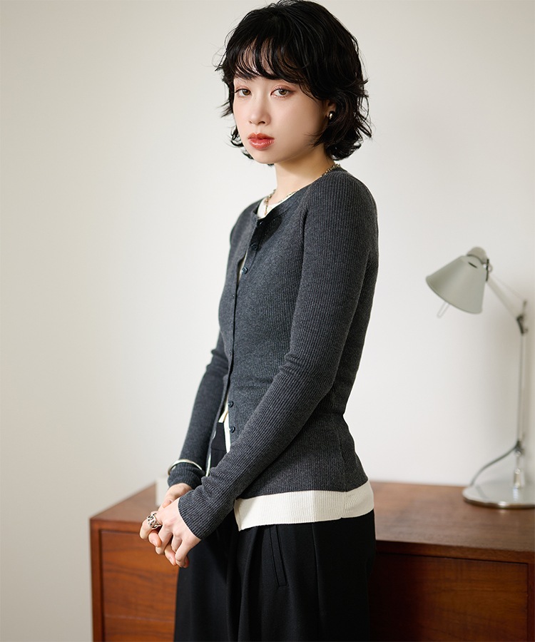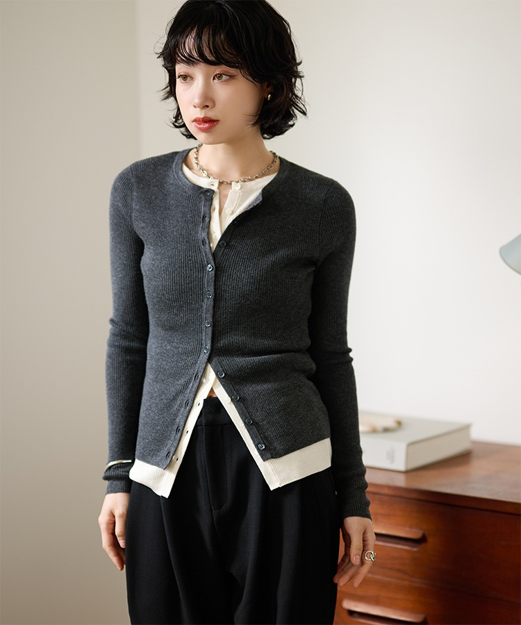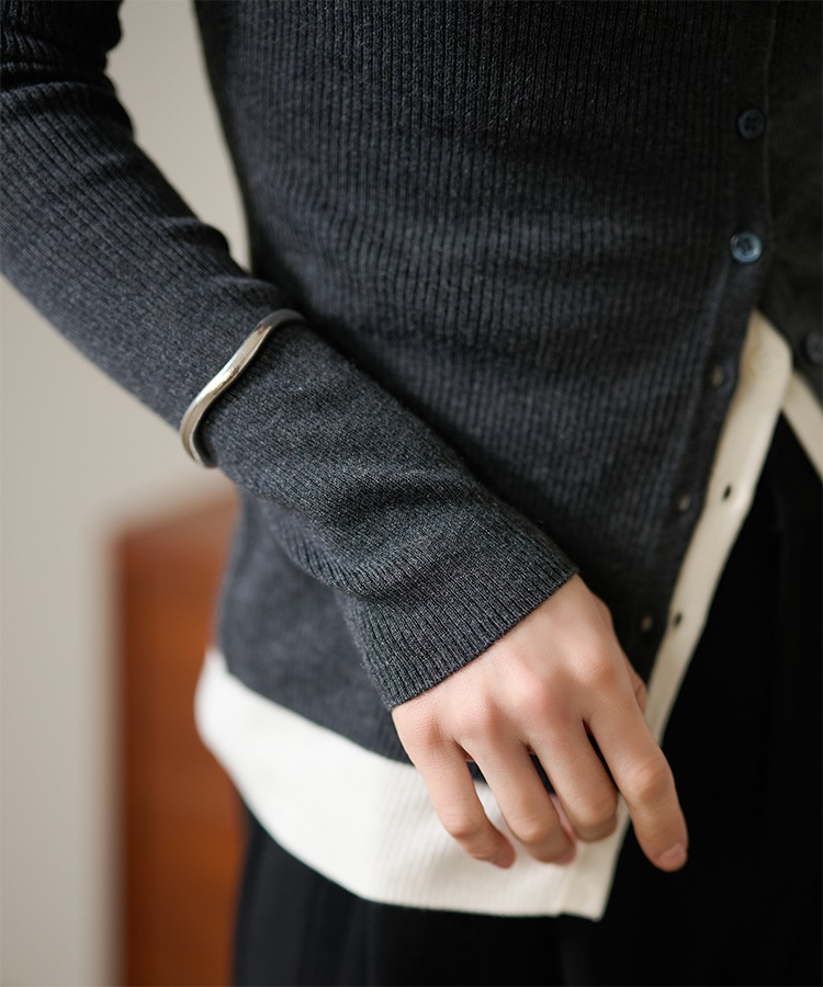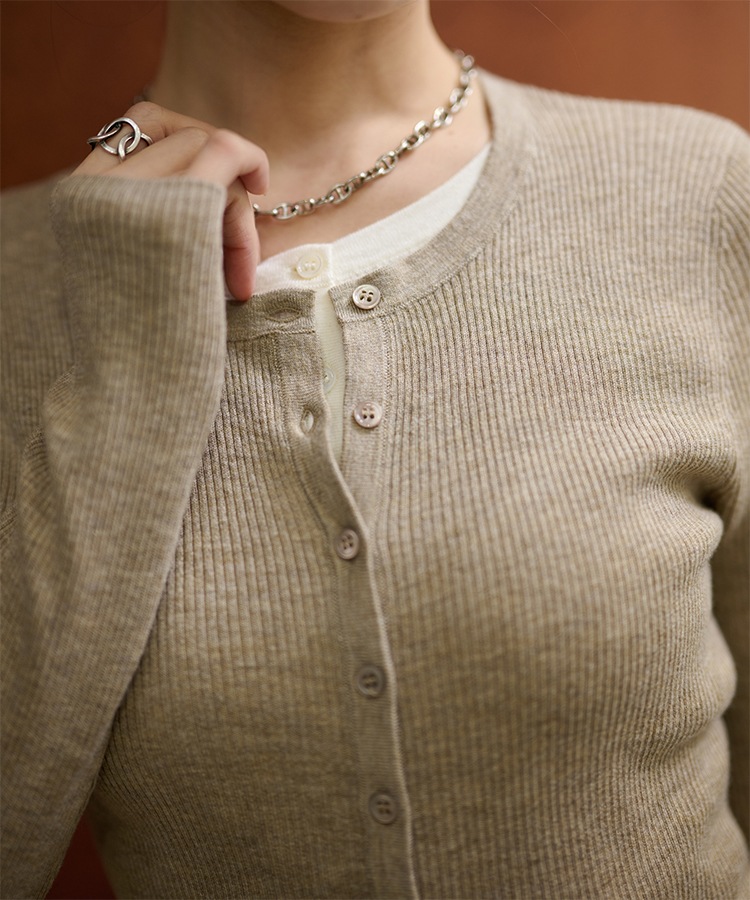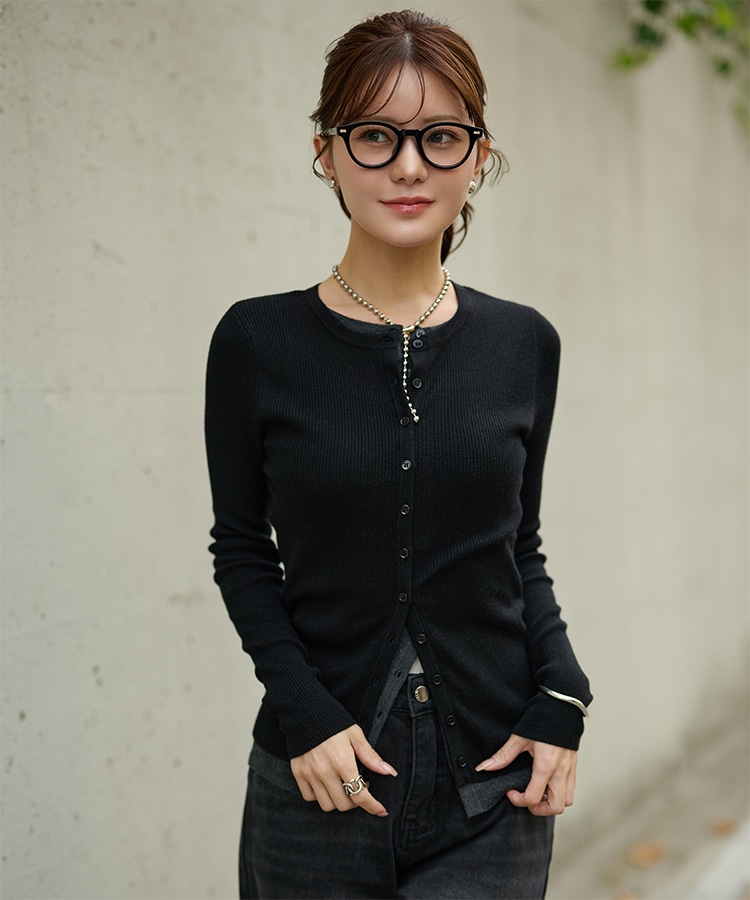 wave buttton collared rib knit cardigan
