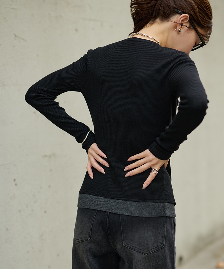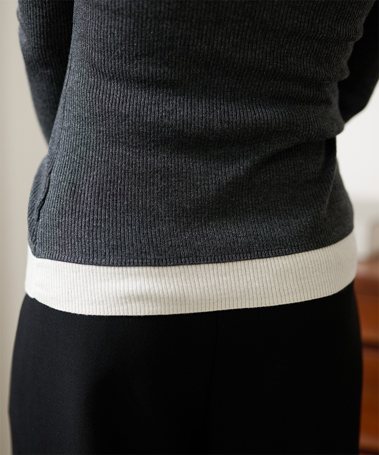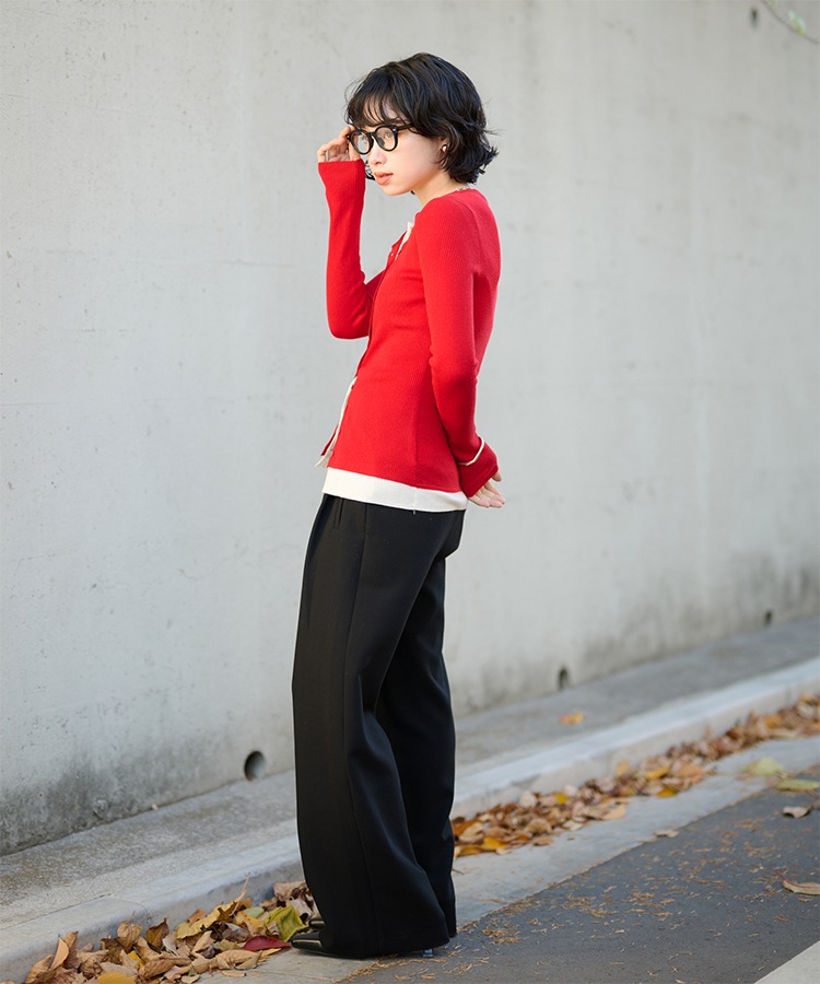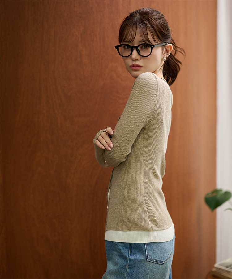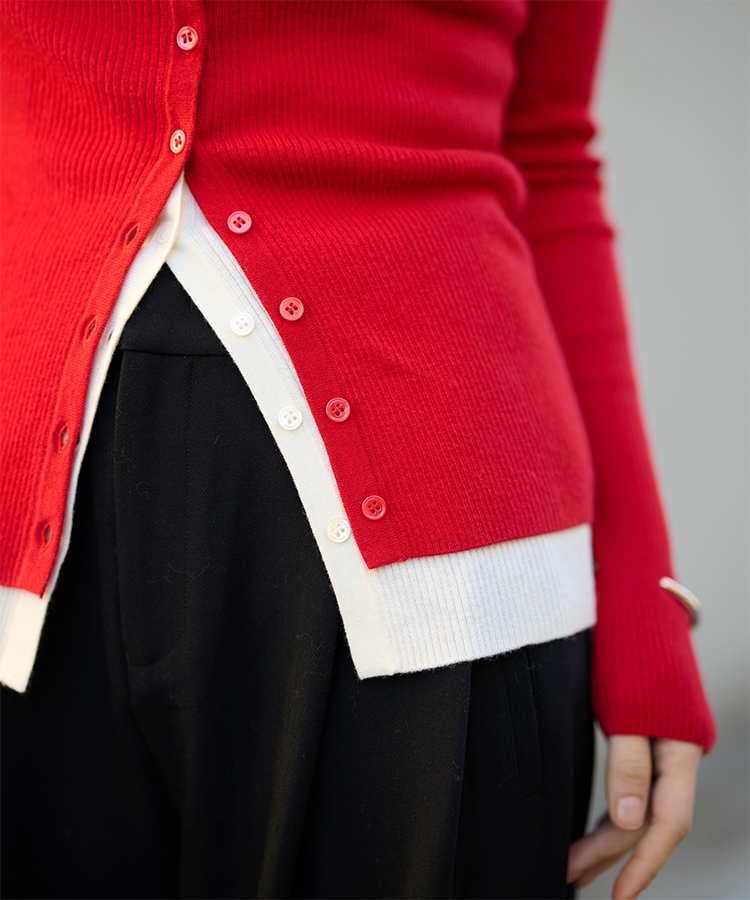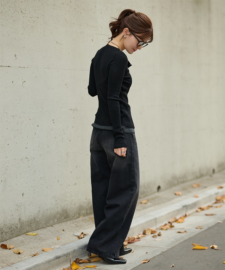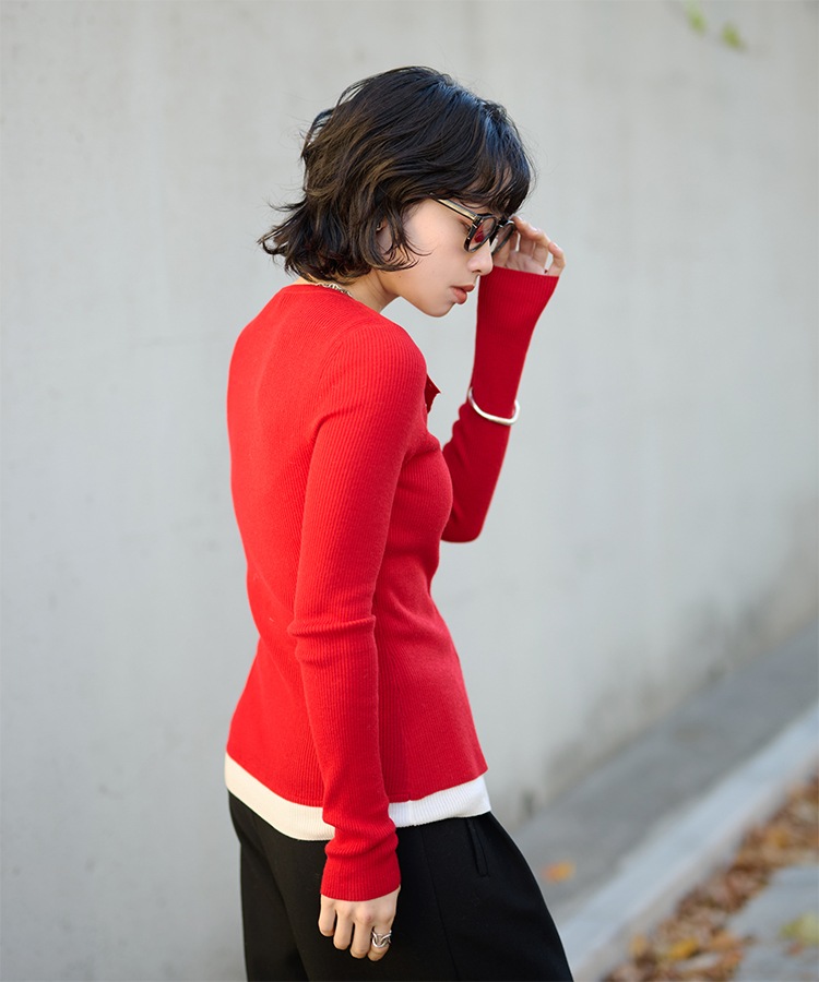 wave buttton collared rib knit cardigan