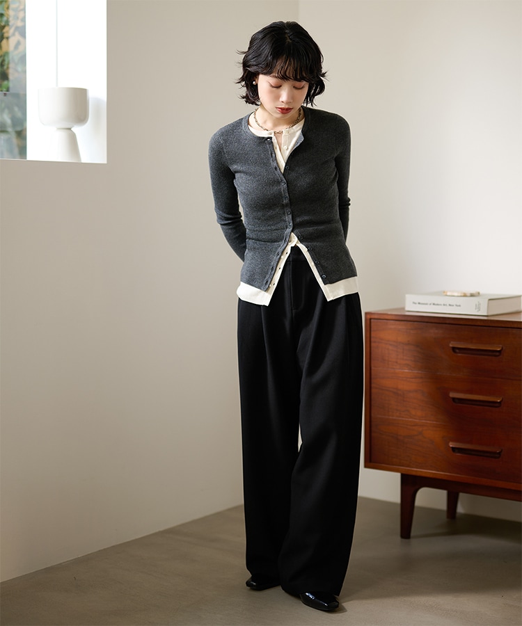 wool blend melange stitch knit cardigan