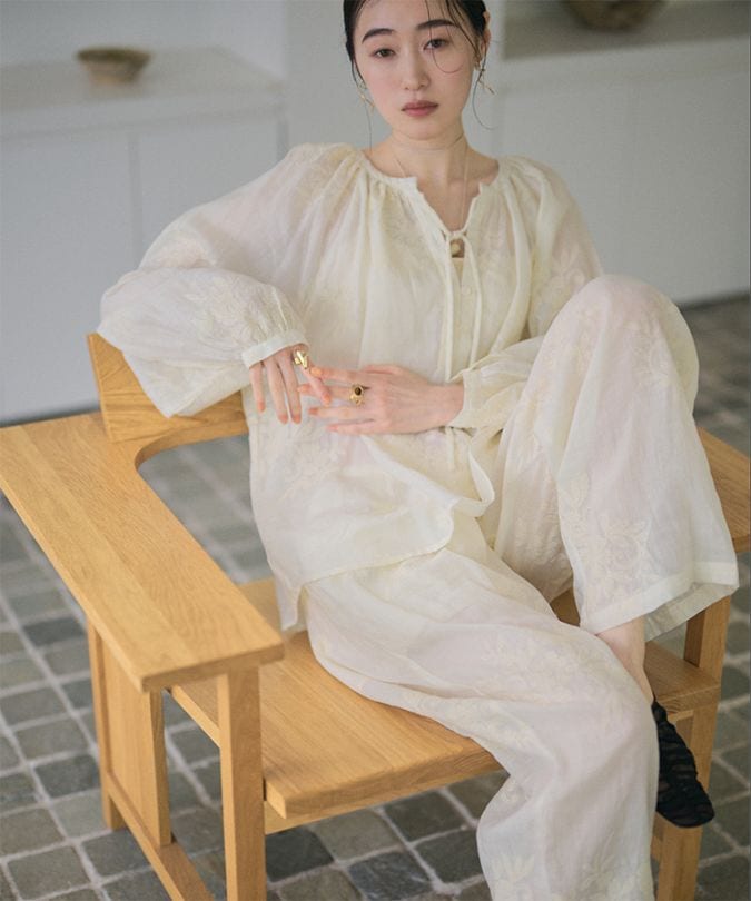 ramie botanical embroidery blouse