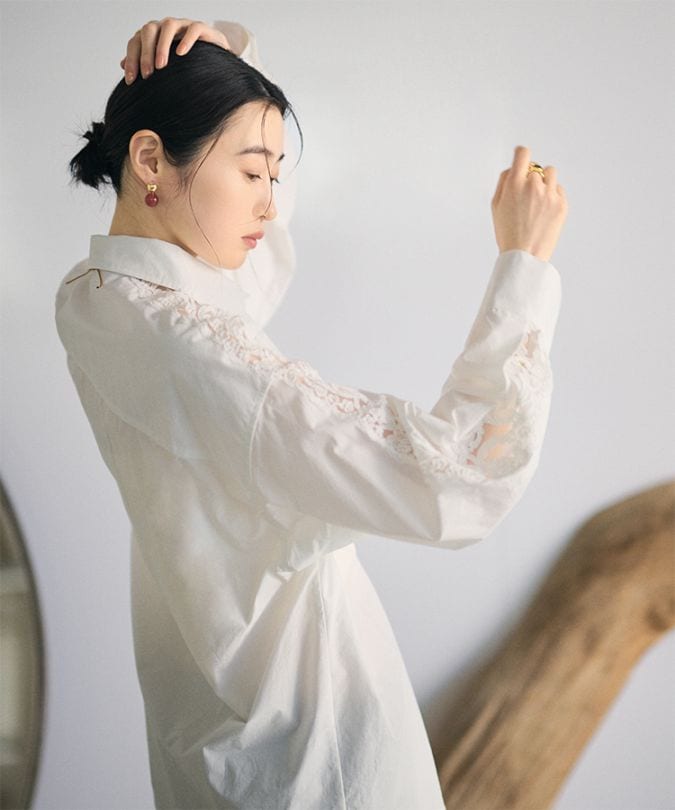 cotton sleeve lace oversize shirt